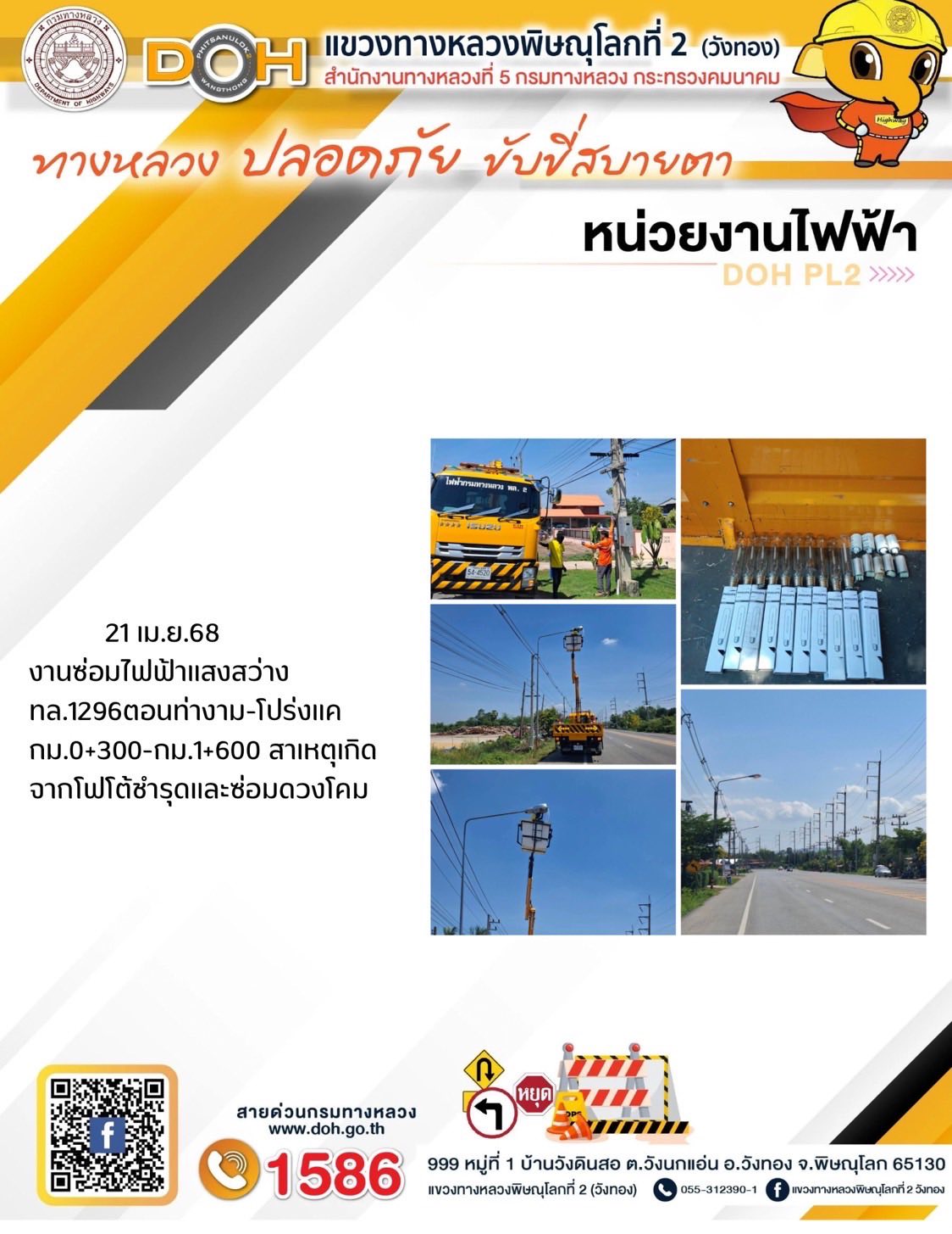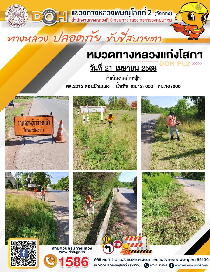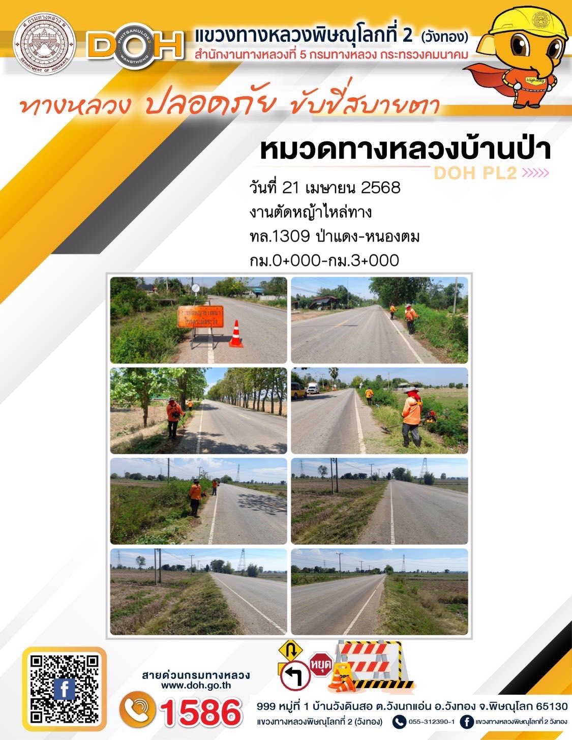 การปฏิบัติงานของ หมวดทางหลวง และ หน่วยงานในสังกัด เพื่ออำนวยความสะดวก และปลอดภัยให้กับประชาชนผู้ใช้เส้นทาง ประจำวันจันทร์ ที่ 21 เมษายน 2568