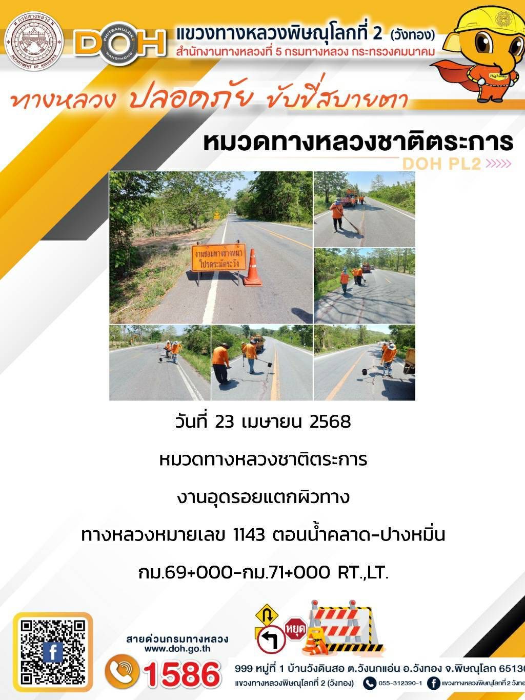 การปฏิบัติงานของ หมวดทางหลวง และ หน่วยงานในสังกัด เพื่ออำนวยความสะดวก และปลอดภัยให้กับประชาชนผู้ใช้เส้นทาง ประจำวันพุธ ที่ 23 เมษายน 2568