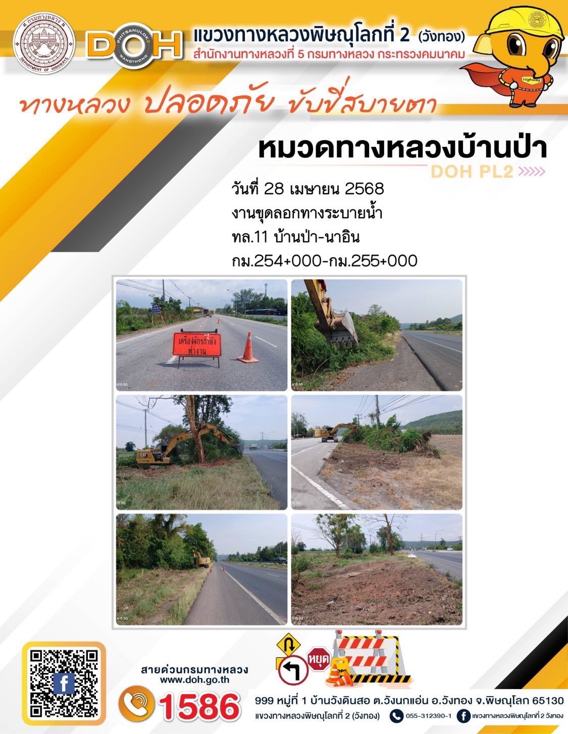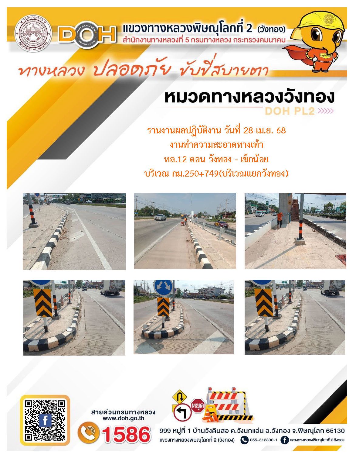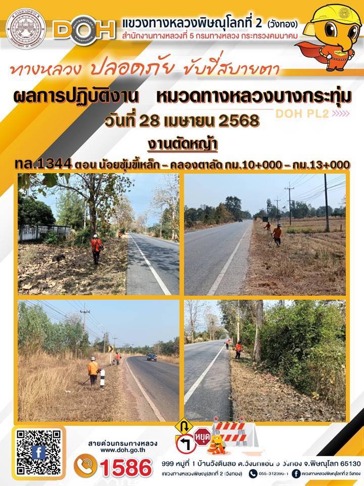 การปฏิบัติงานของ หมวดทางหลวง และ หน่วยงานในสังกัด เพื่ออำนวยความสะดวก และปลอดภัยให้กับประชาชนผู้ใช้เส้นทาง ประจำวันจันทร์ ที่ 28 เมษายน 2568