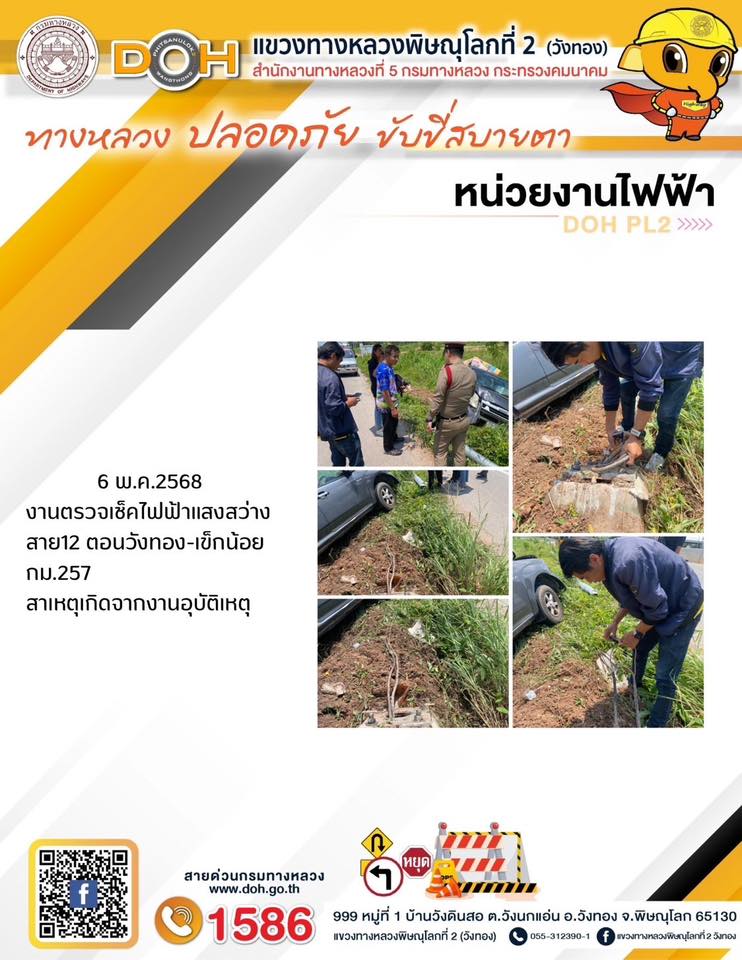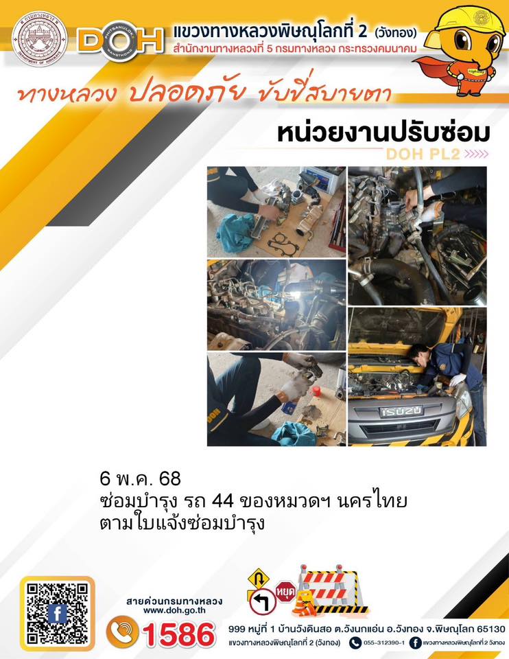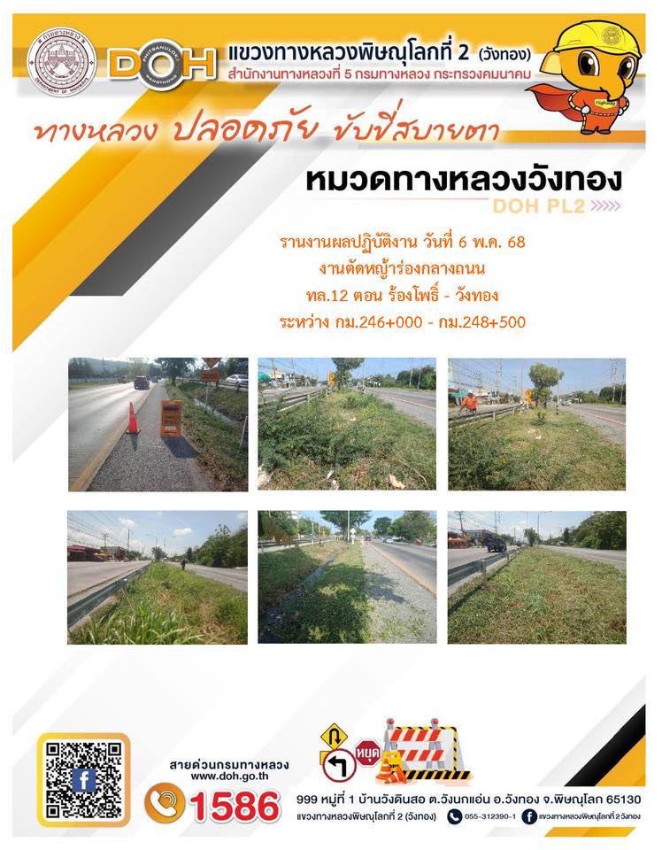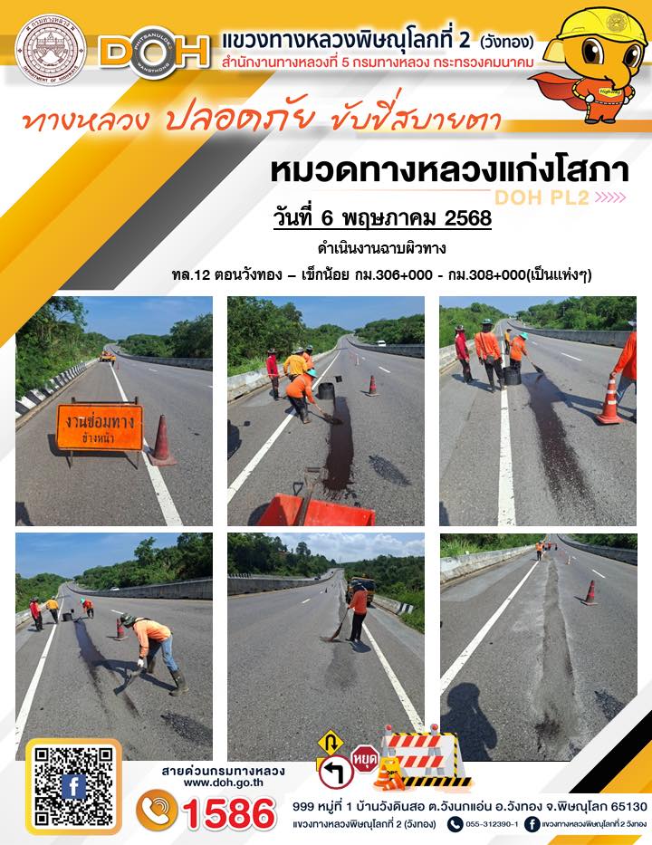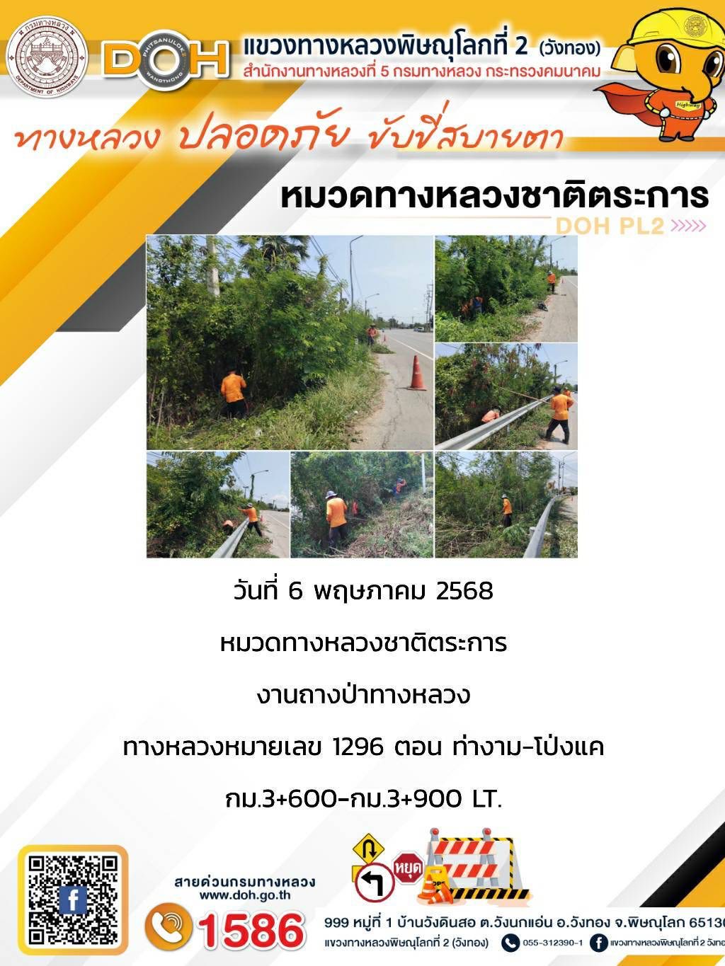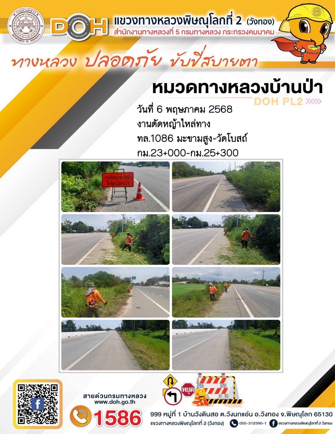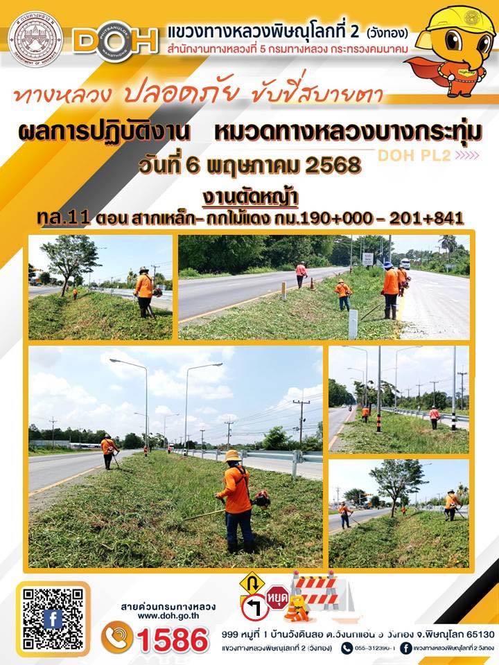 การปฏิบัติงานของ หมวดทางหลวง และ หน่วยงานในสังกัด เพื่ออำนวยความสะดวก และปลอดภัยให้กับประชาชนผู้ใช้เส้นทาง ประจำวันอังคาร ที่ 6 พฤษภาคม 2568