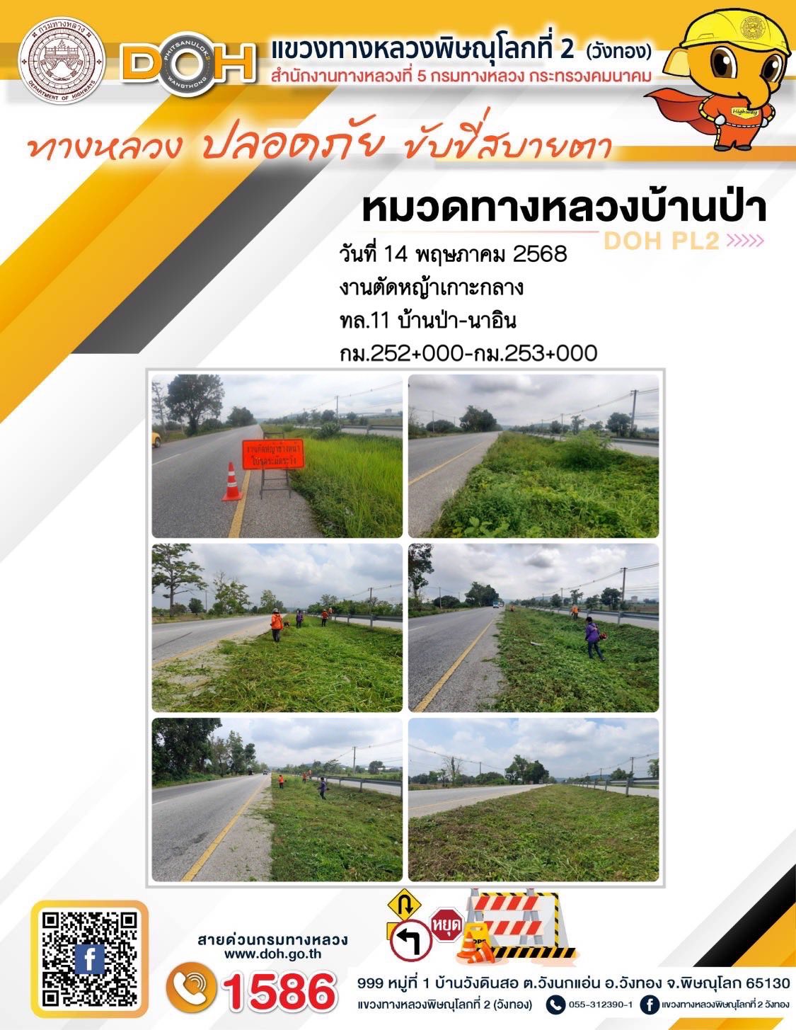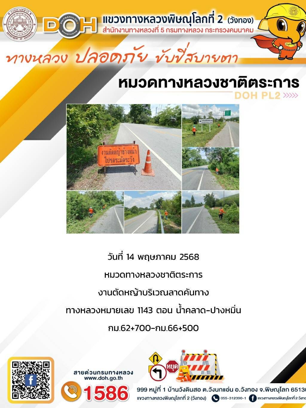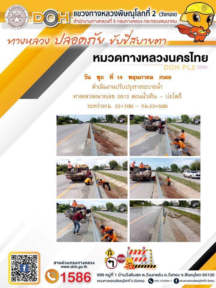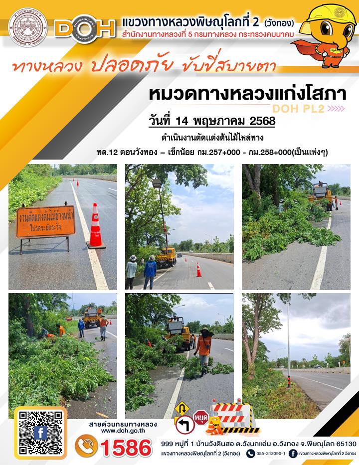 การปฏิบัติงานของ หมวดทางหลวง และ หน่วยงานในสังกัด เพื่ออำนวยความสะดวก และปลอดภัยให้กับประชาชนผู้ใช้เส้นทาง ประจำวันพุธ ที่ 14 พฤษภาคม 2568