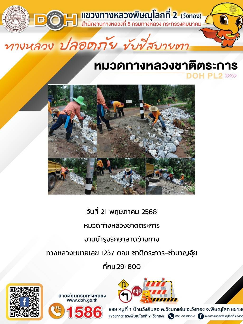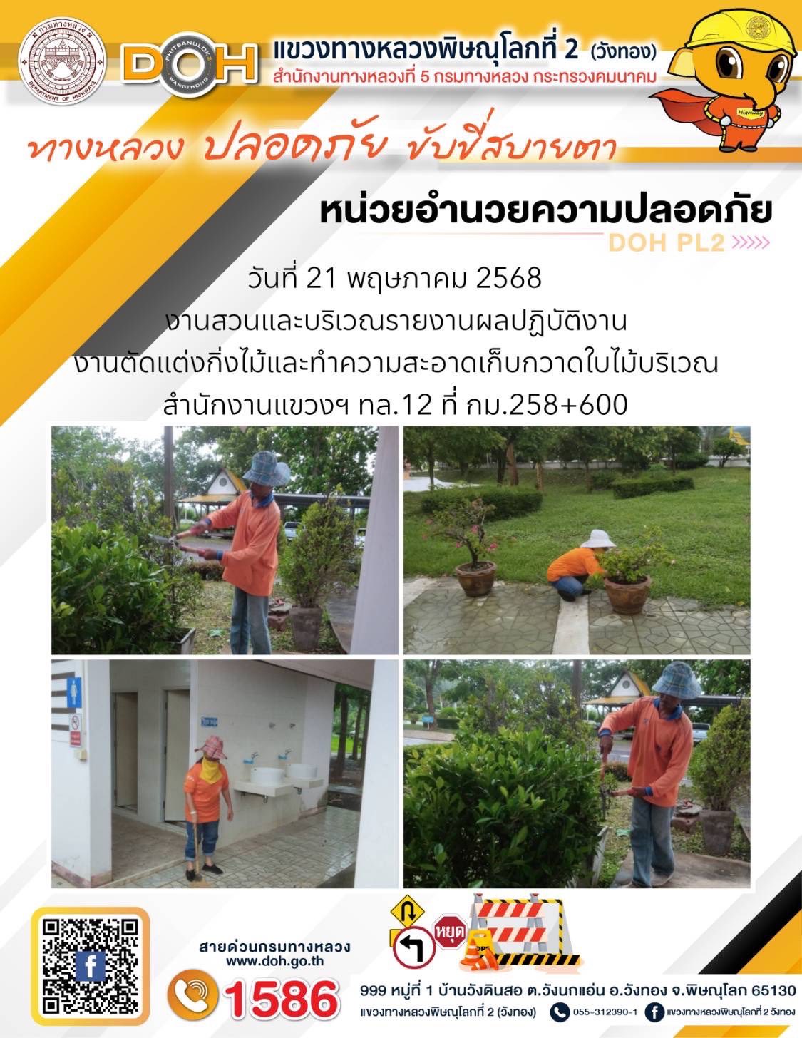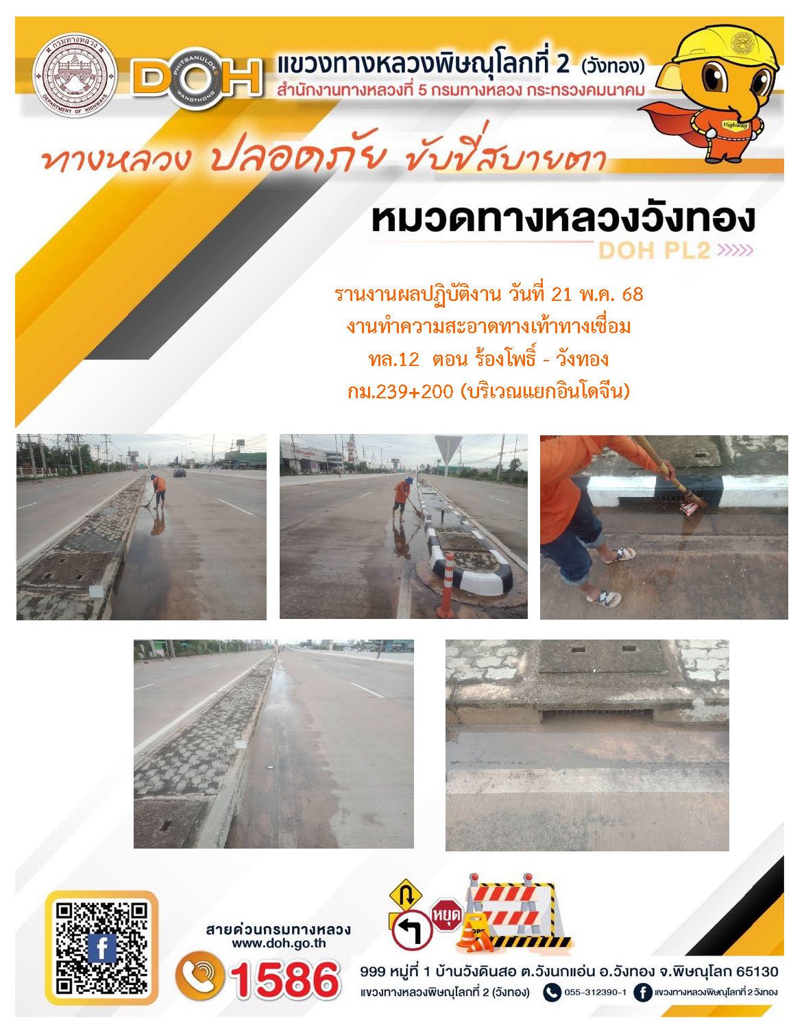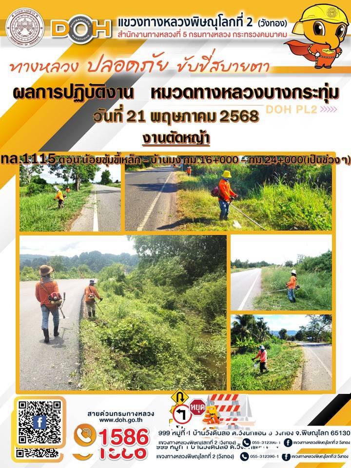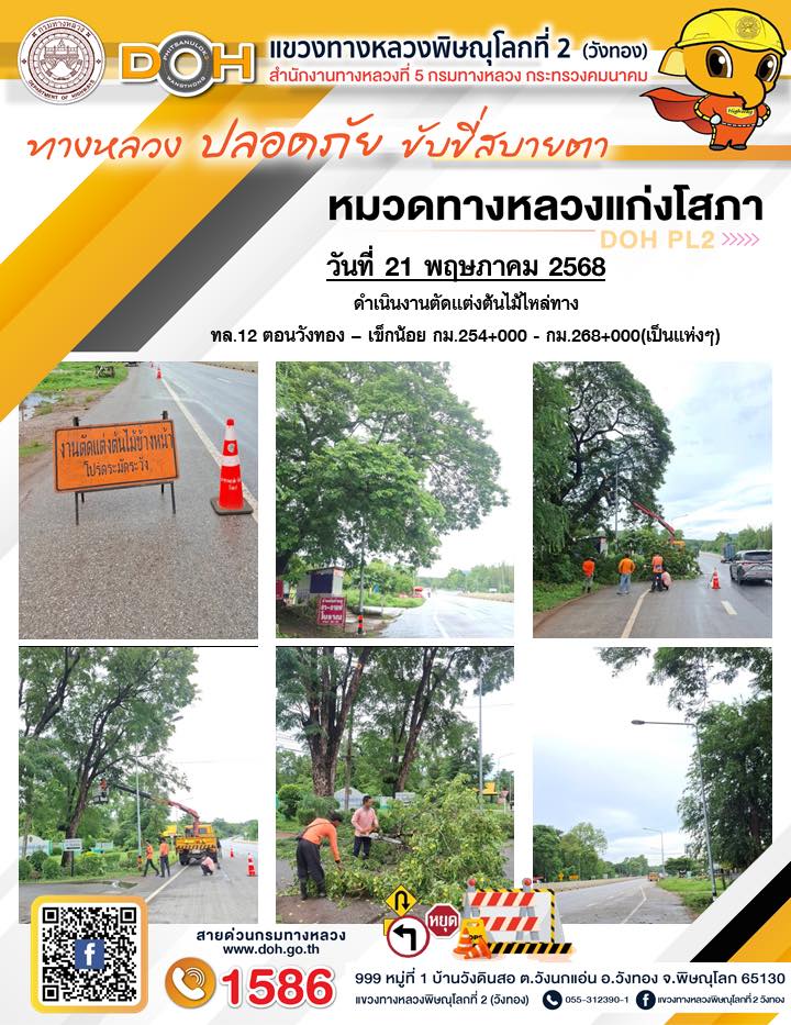 การปฏิบัติงานของ หมวดทางหลวง และ หน่วยงานในสังกัด เพื่ออำนวยความสะดวก และปลอดภัยให้กับประชาชนผู้ใช้เส้นทาง ประจำวันพุธ ที่ 21 พฤษภาคม 2568
