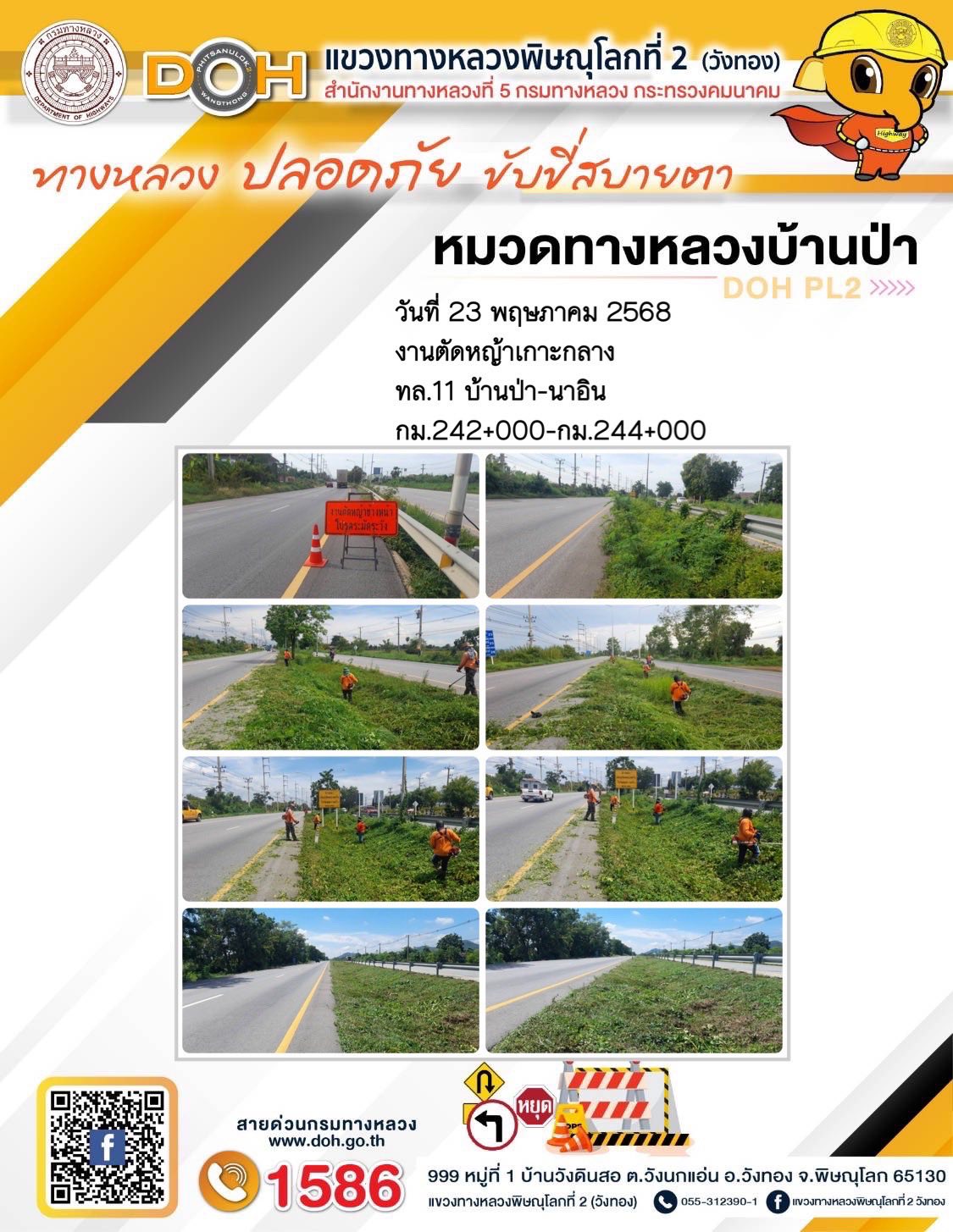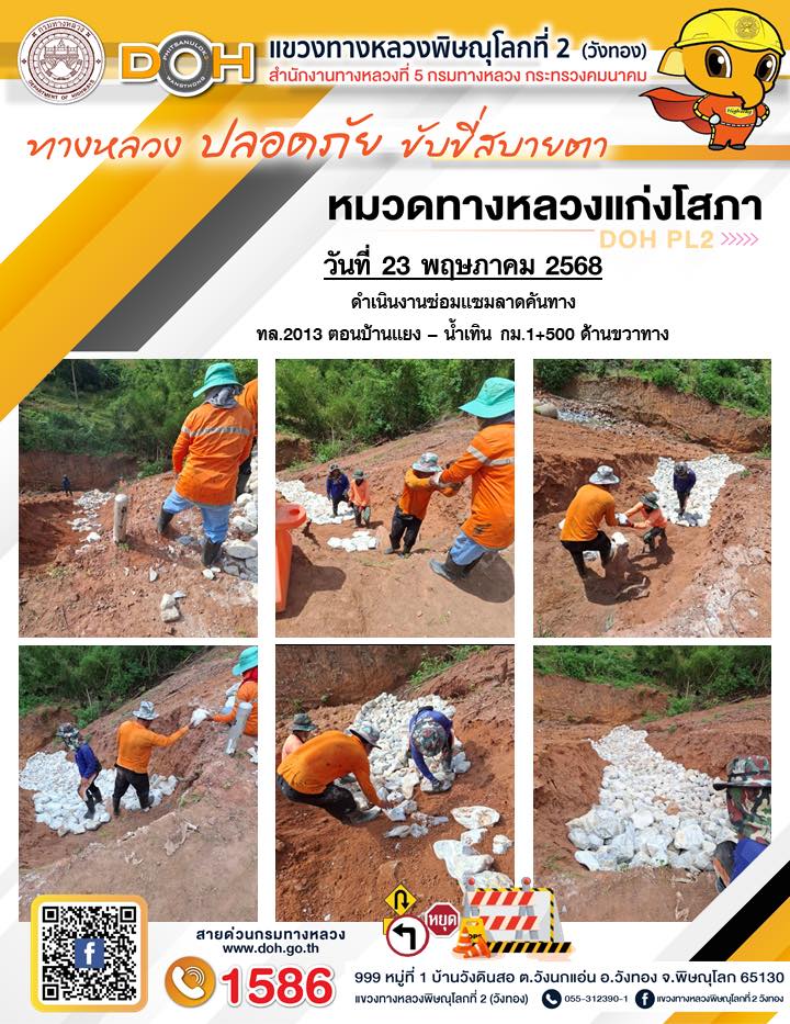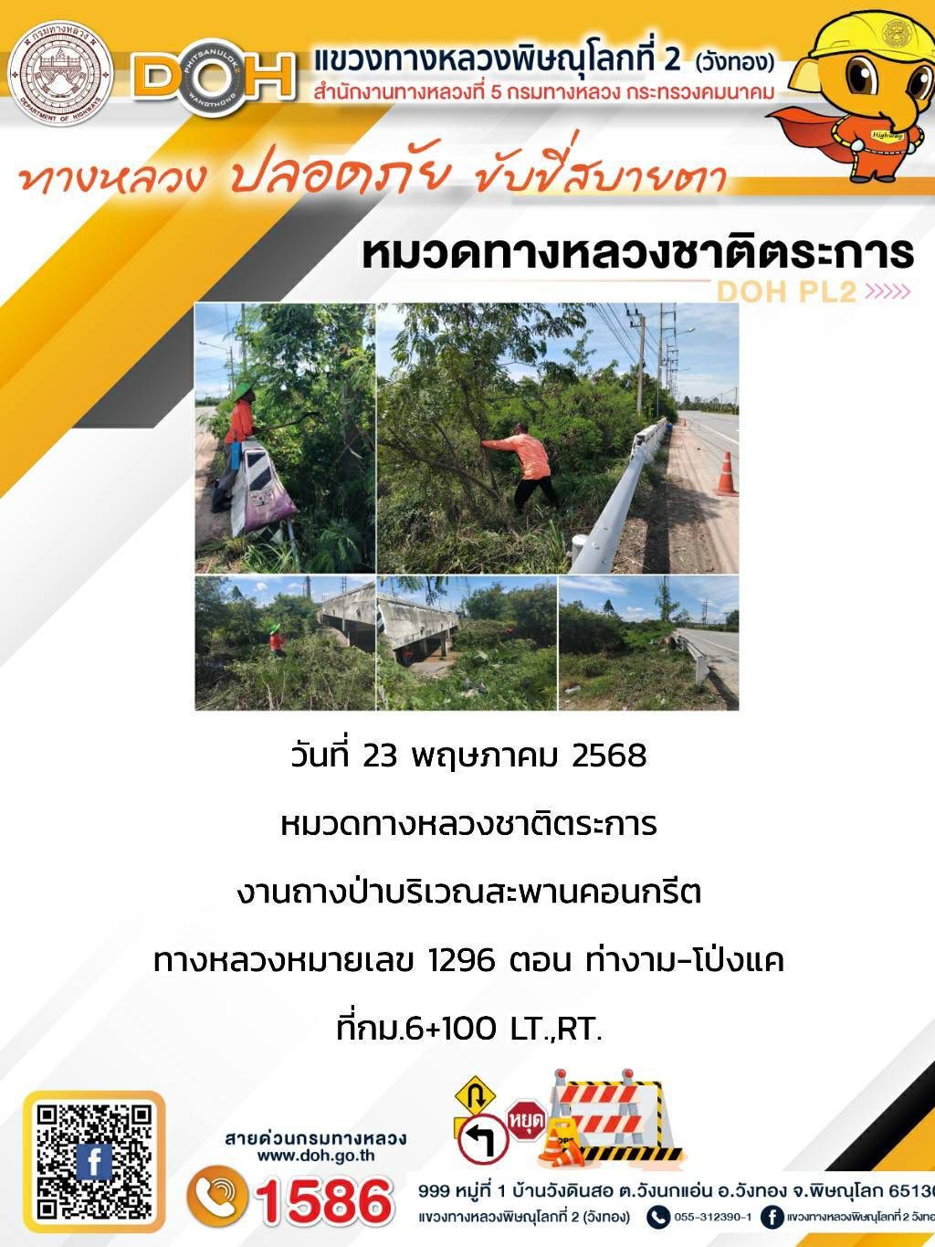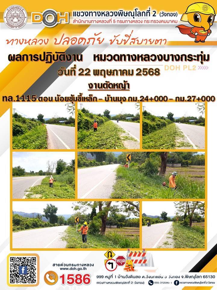 การปฏิบัติงานของ หมวดทางหลวง และ หน่วยงานในสังกัด เพื่ออำนวยความสะดวก และปลอดภัยให้กับประชาชนผู้ใช้เส้นทาง ประจำวันศุกร์ ที่ 23 พฤษภาคม 2568