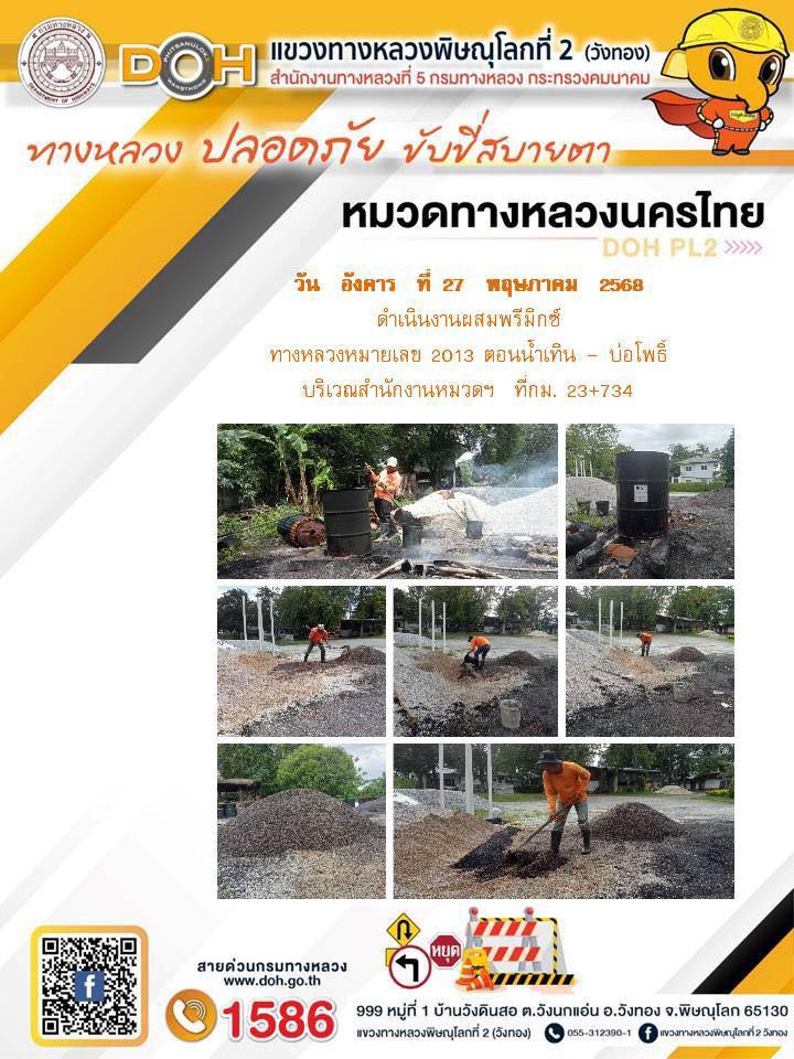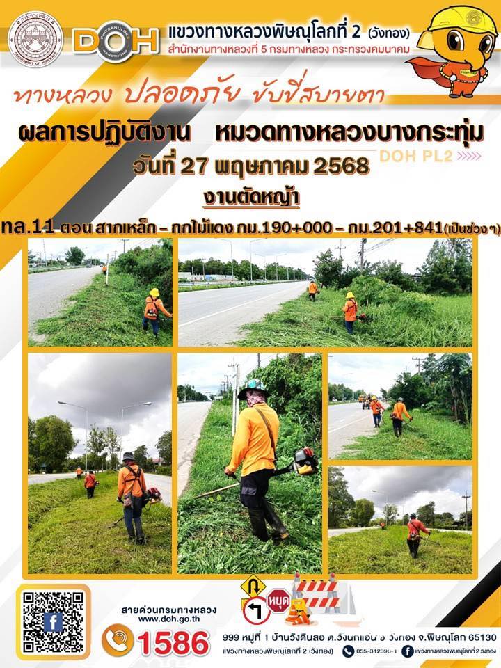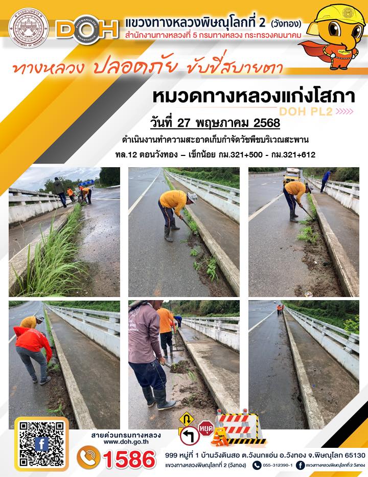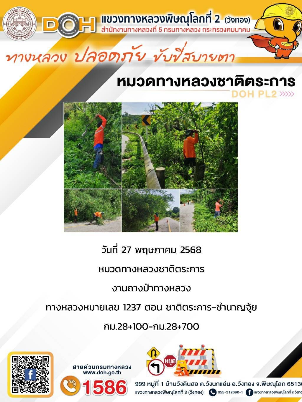 การปฏิบัติงานของ หมวดทางหลวง และ หน่วยงานในสังกัด เพื่ออำนวยความสะดวก และปลอดภัยให้กับประชาชนผู้ใช้เส้นทาง ประจำวันอังคาร ที่ 27 พฤษภาคม 2568
