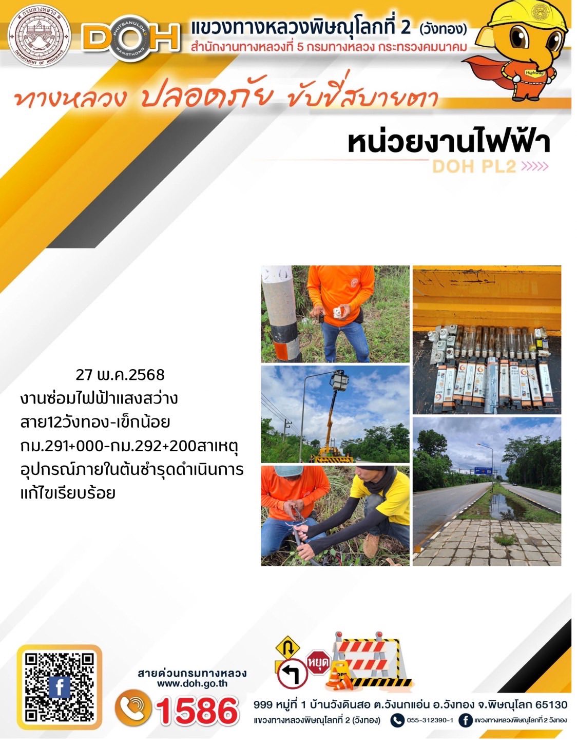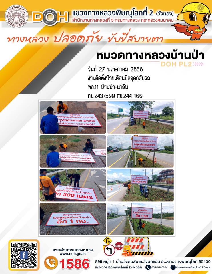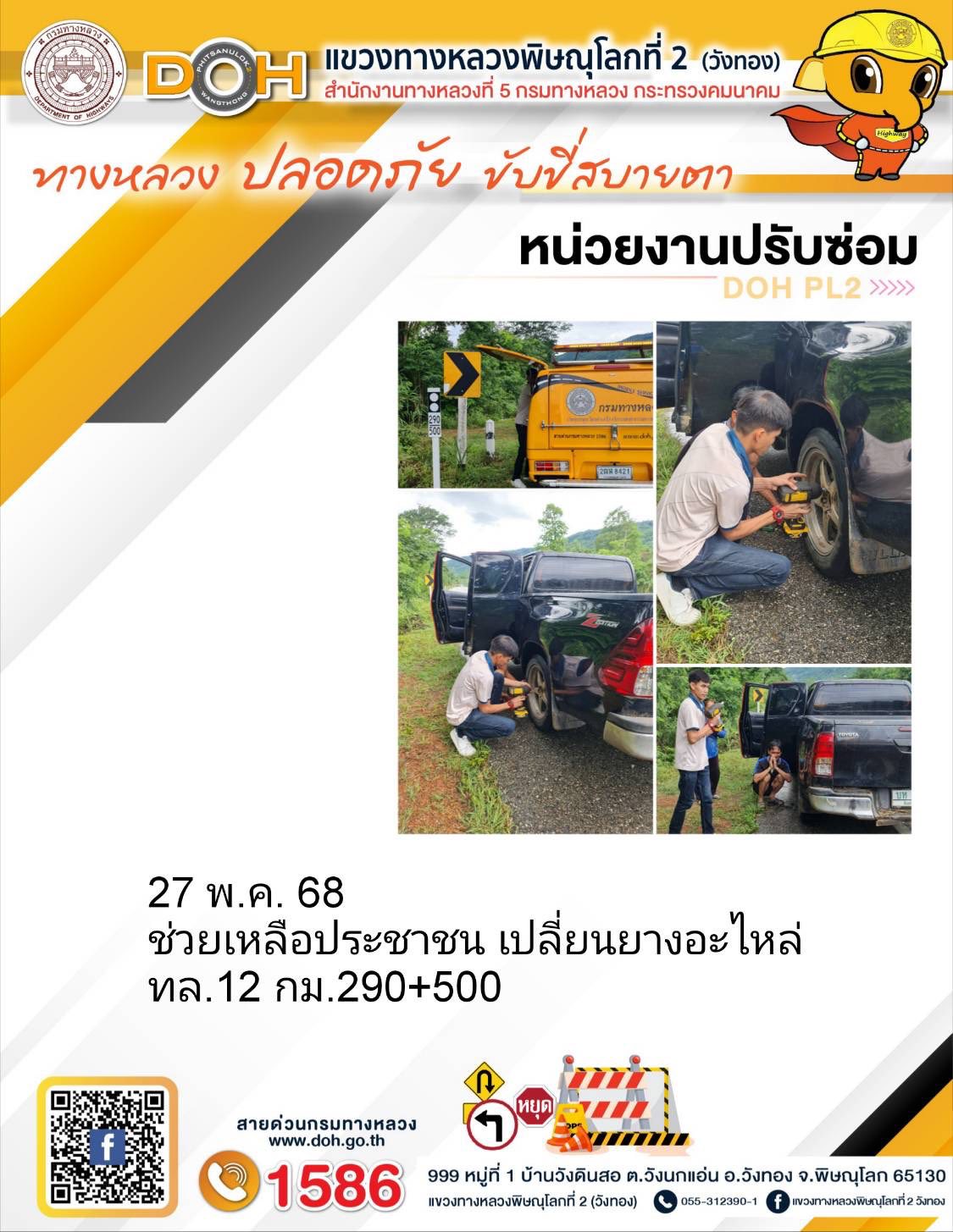 การปฏิบัติงานของ หมวดทางหลวง และ หน่วยงานในสังกัด เพื่ออำนวยความสะดวก และปลอดภัยให้กับประชาชนผู้ใช้เส้นทาง ประจำวันอังคาร ที่ 27 พฤษภาคม 2568