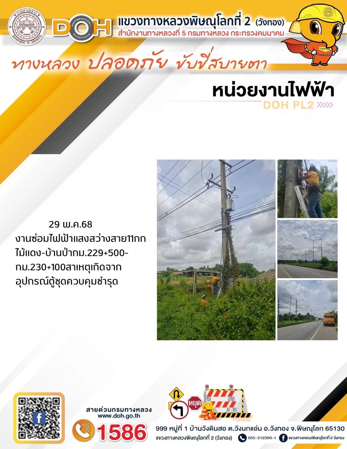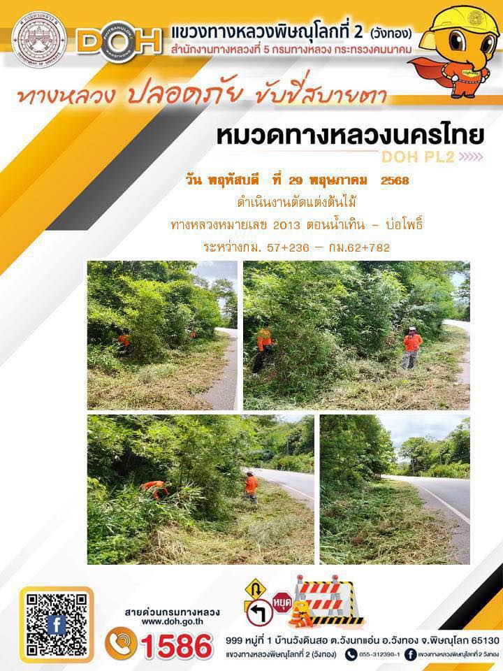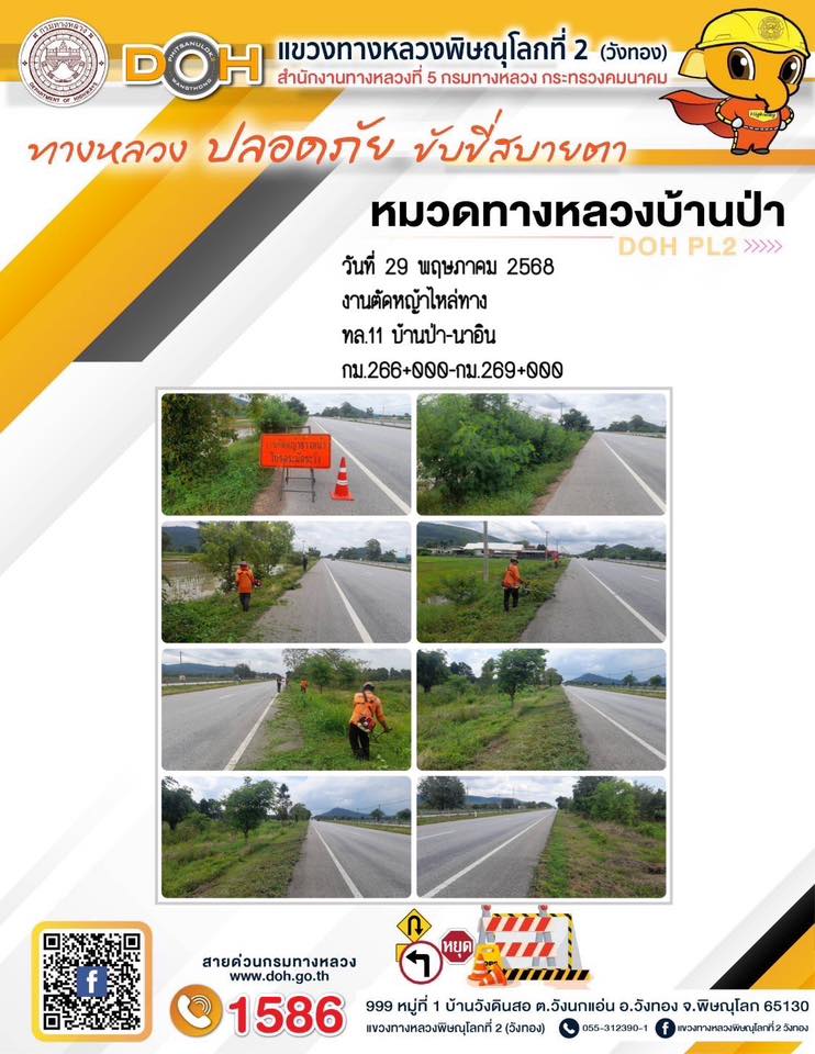 การปฏิบัติงานของ หมวดทางหลวง และ หน่วยงานในสังกัด เพื่ออำนวยความสะดวก และปลอดภัยให้กับประชาชนผู้ใช้เส้นทาง ประจำวันพฤหัสบดี ที่ 29 พฤษภาคม 2568