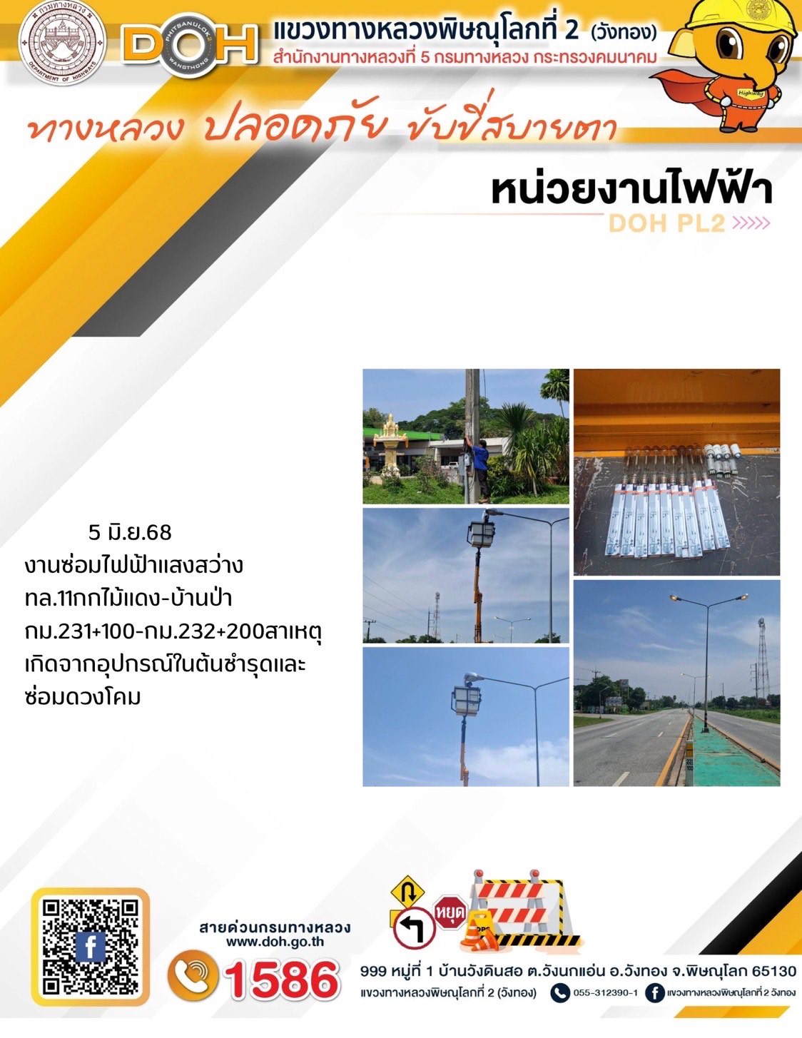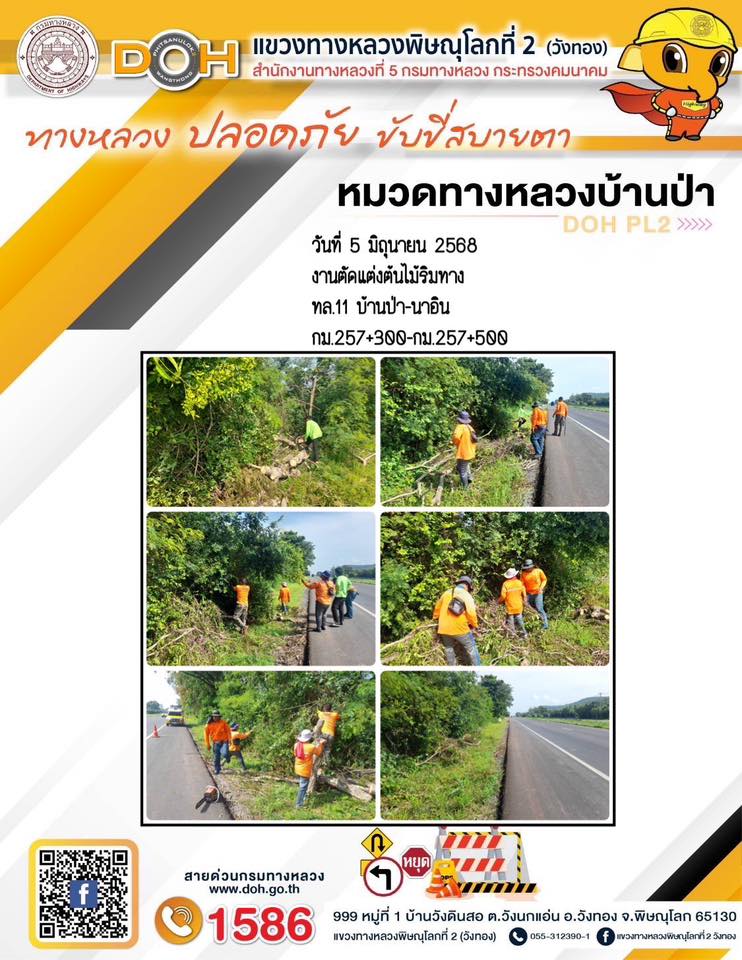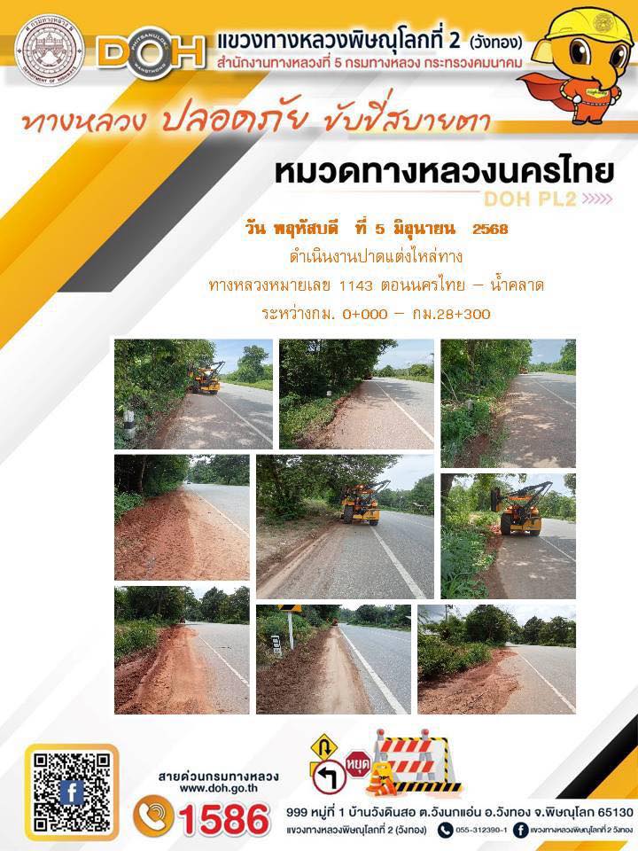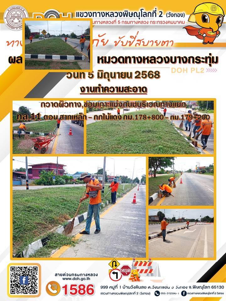 การปฏิบัติงานของ หมวดทางหลวง และ หน่วยงานในสังกัด เพื่ออำนวยความสะดวก และปลอดภัยให้กับประชาชนผู้ใช้เส้นทาง ประจำวันพฤหัสบดี ที่ 5 มิถุนายน 2568
