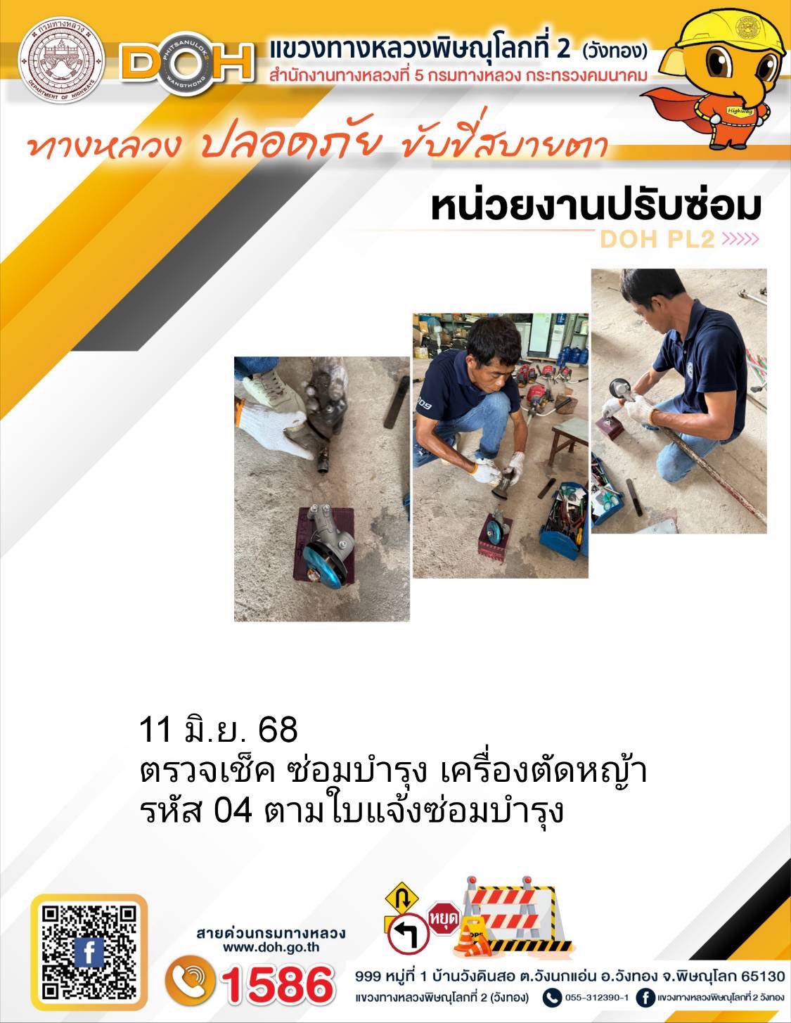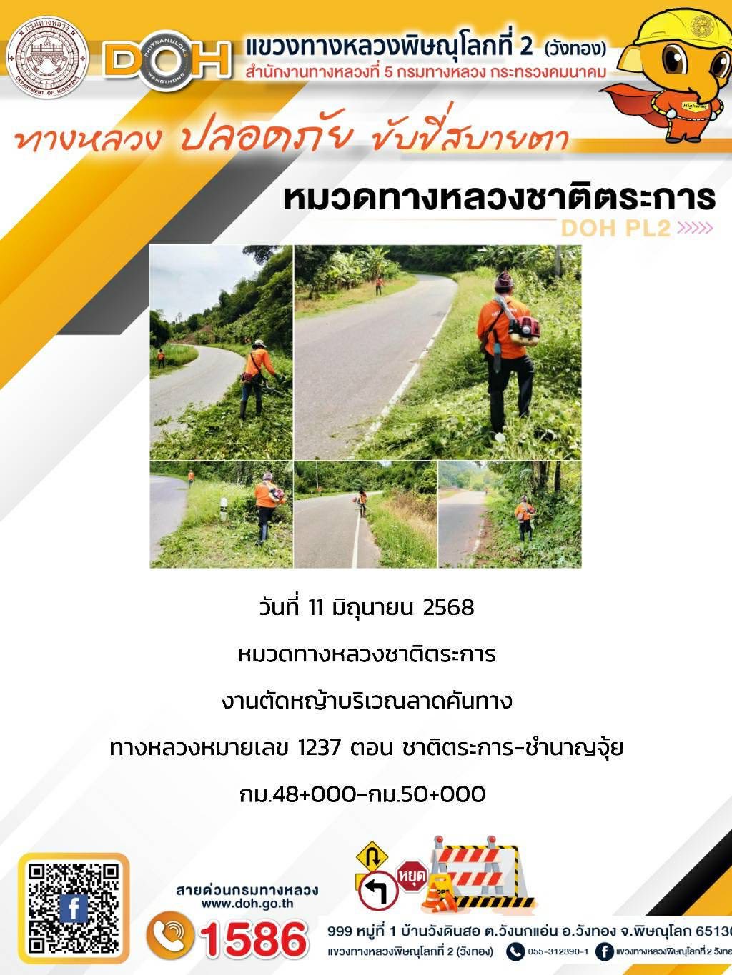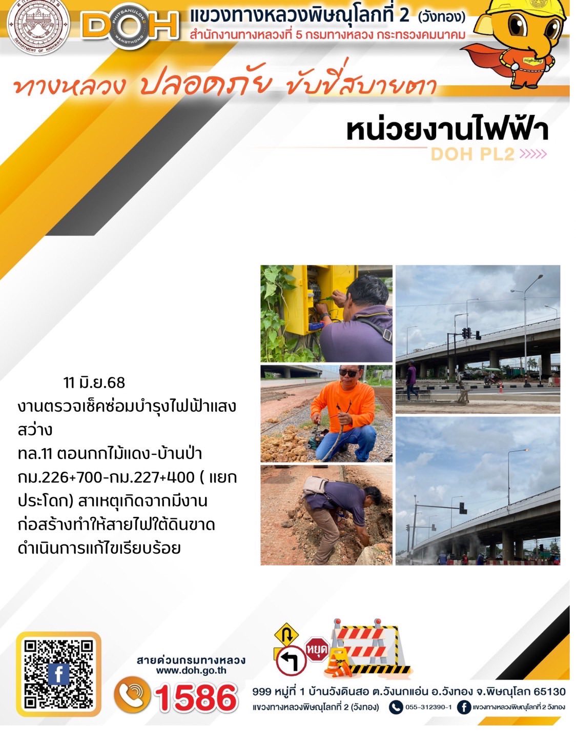 การปฏิบัติงานของ หมวดทางหลวง และ หน่วยงานในสังกัด เพื่ออำนวยความสะดวก และปลอดภัยให้กับประชาชนผู้ใช้เส้นทาง ประจำวันพุธ ที่ 11 มิถุนายน 2568