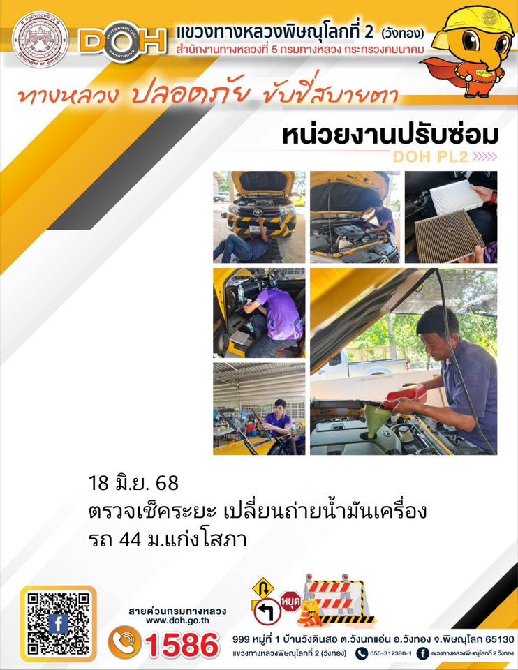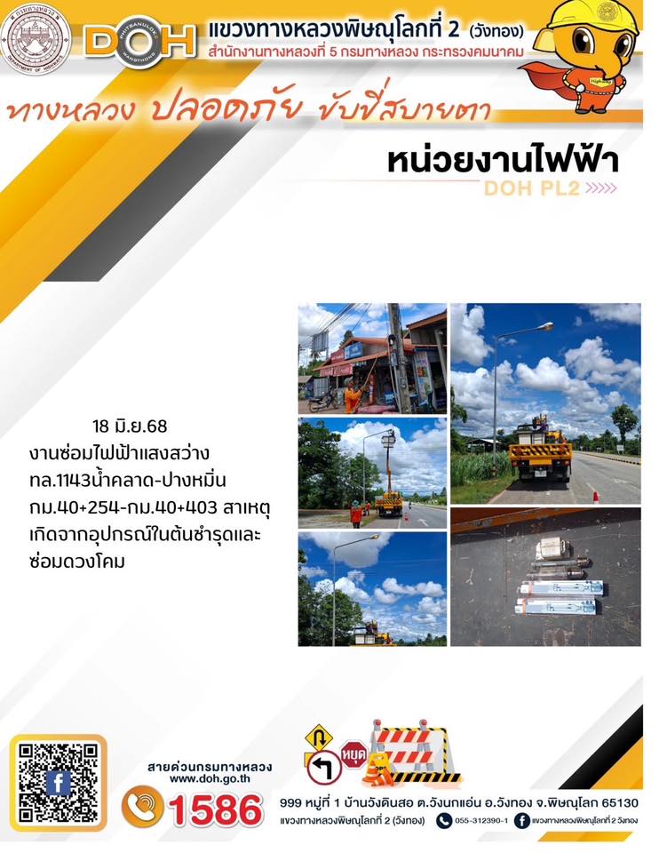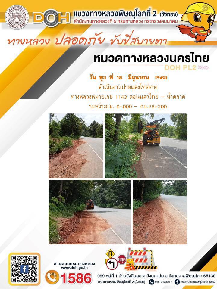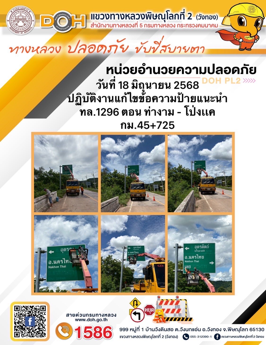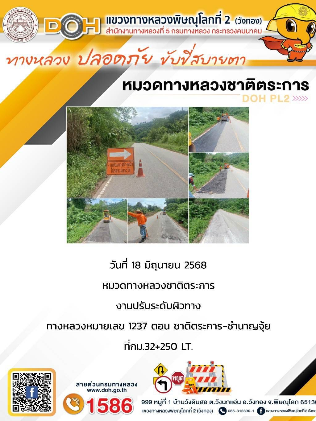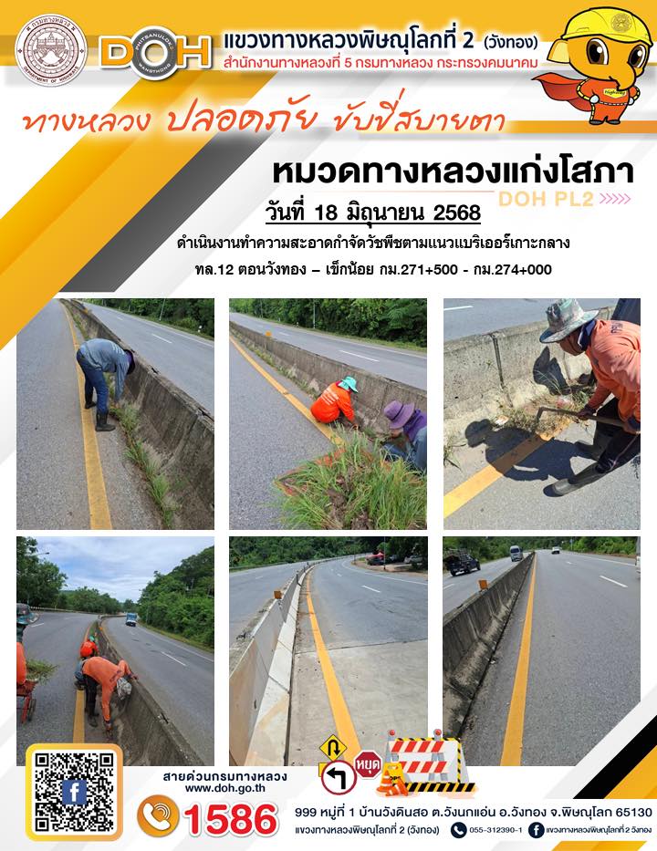 การปฏิบัติงานของ หมวดทางหลวง และ หน่วยงานในสังกัด เพื่ออำนวยความสะดวก และปลอดภัยให้กับประชาชนผู้ใช้เส้นทาง ประจำวันพุธ ที่ 18 มิถุนายน 2568