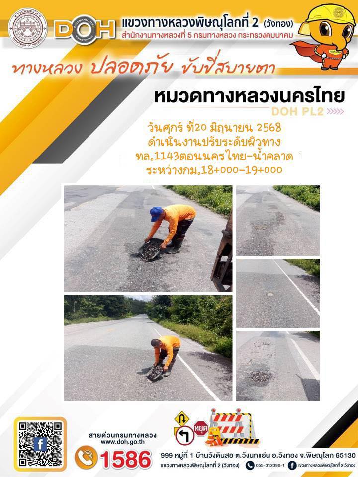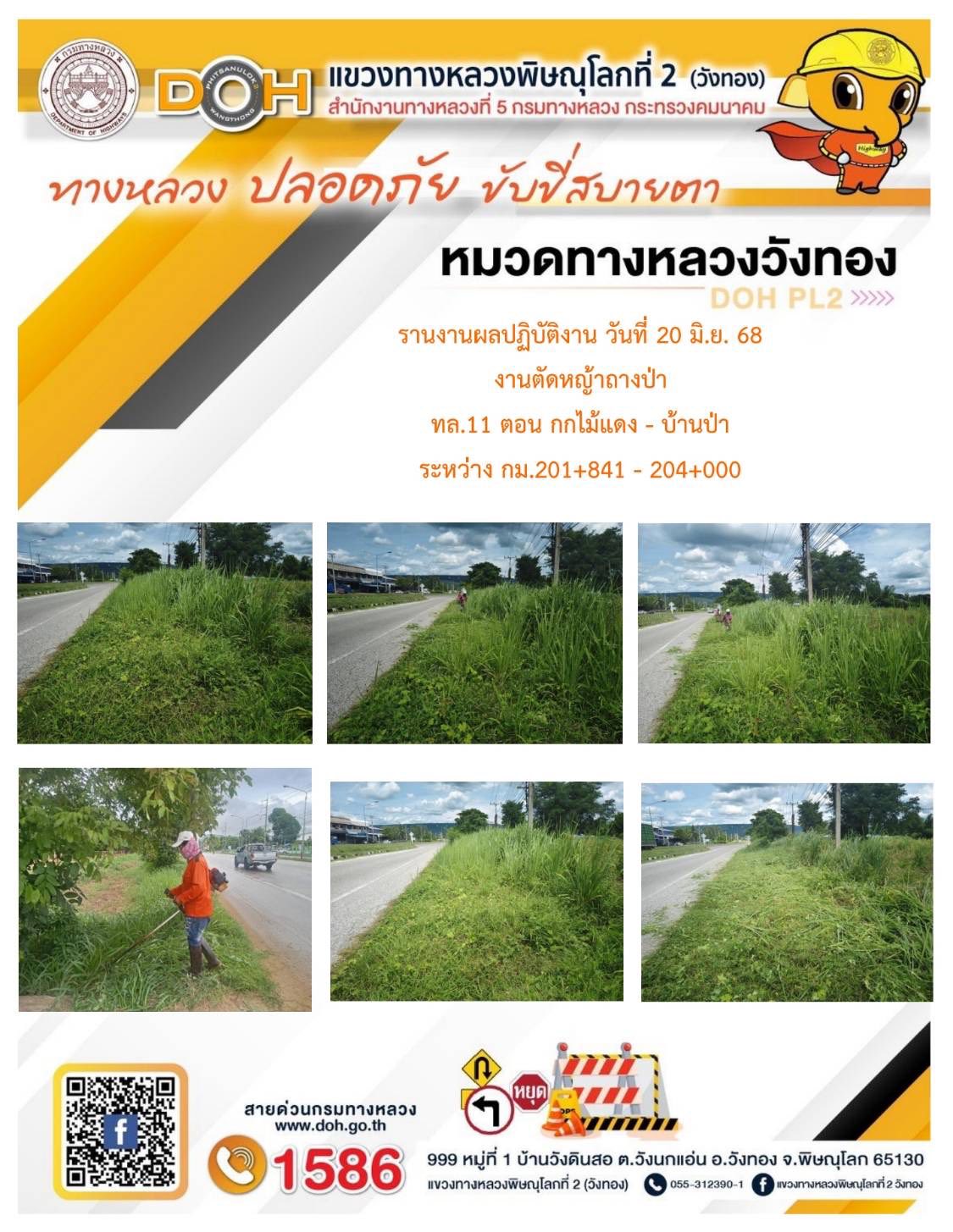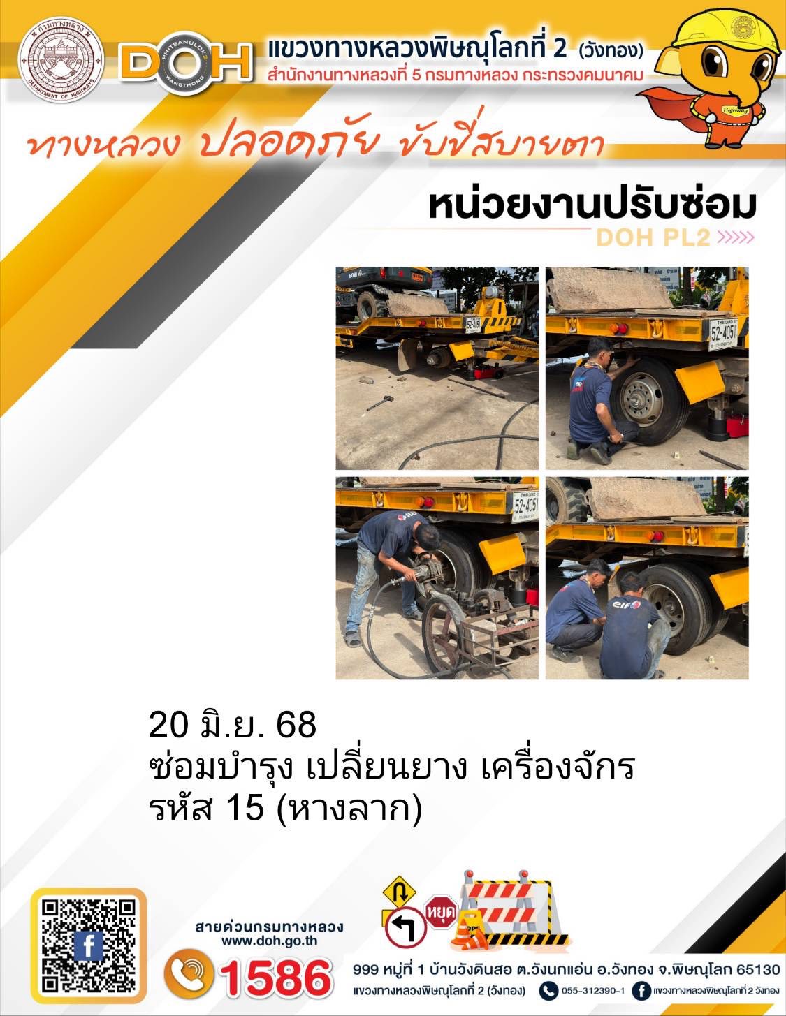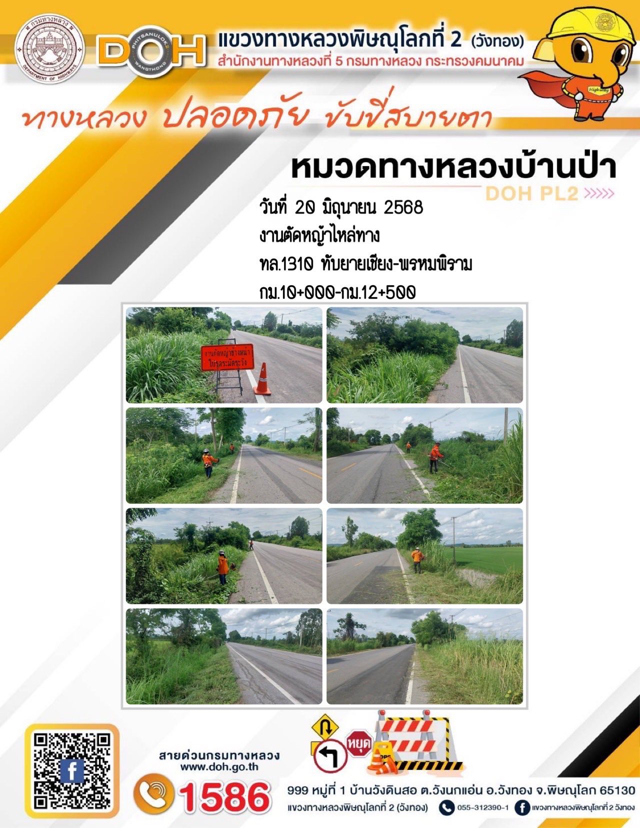 การปฏิบัติงานของ หมวดทางหลวง และ หน่วยงานในสังกัด เพื่ออำนวยความสะดวก และปลอดภัยให้กับประชาชนผู้ใช้เส้นทาง ประจำวันศุกร์ ที่ 20 มิถุนายน 2568