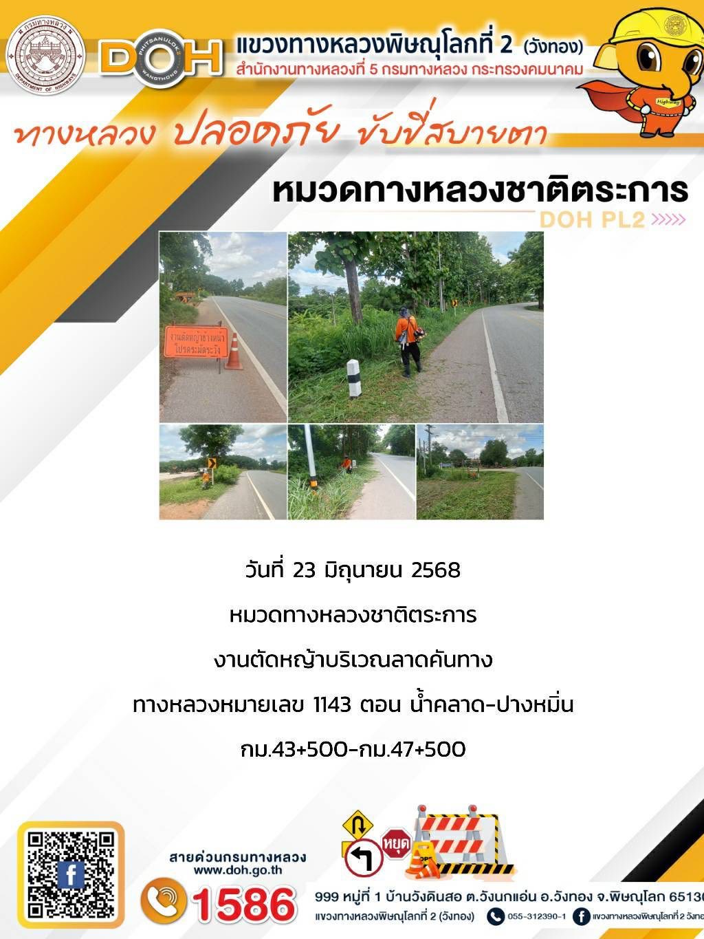 การปฏิบัติงานของ หมวดทางหลวง และ หน่วยงานในสังกัด เพื่ออำนวยความสะดวก และปลอดภัยให้กับประชาชนผู้ใช้เส้นทาง ประจำวันจันทร์ ที่ 23 มิถุนายน 2568