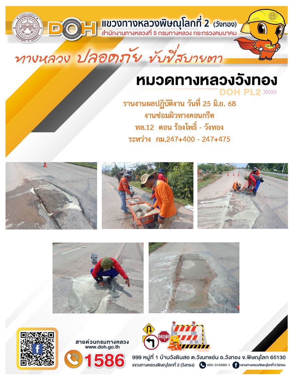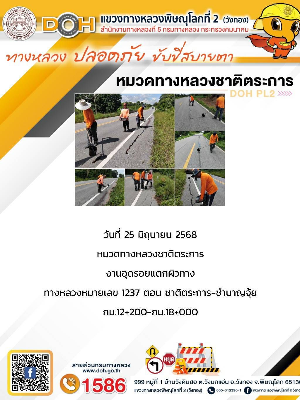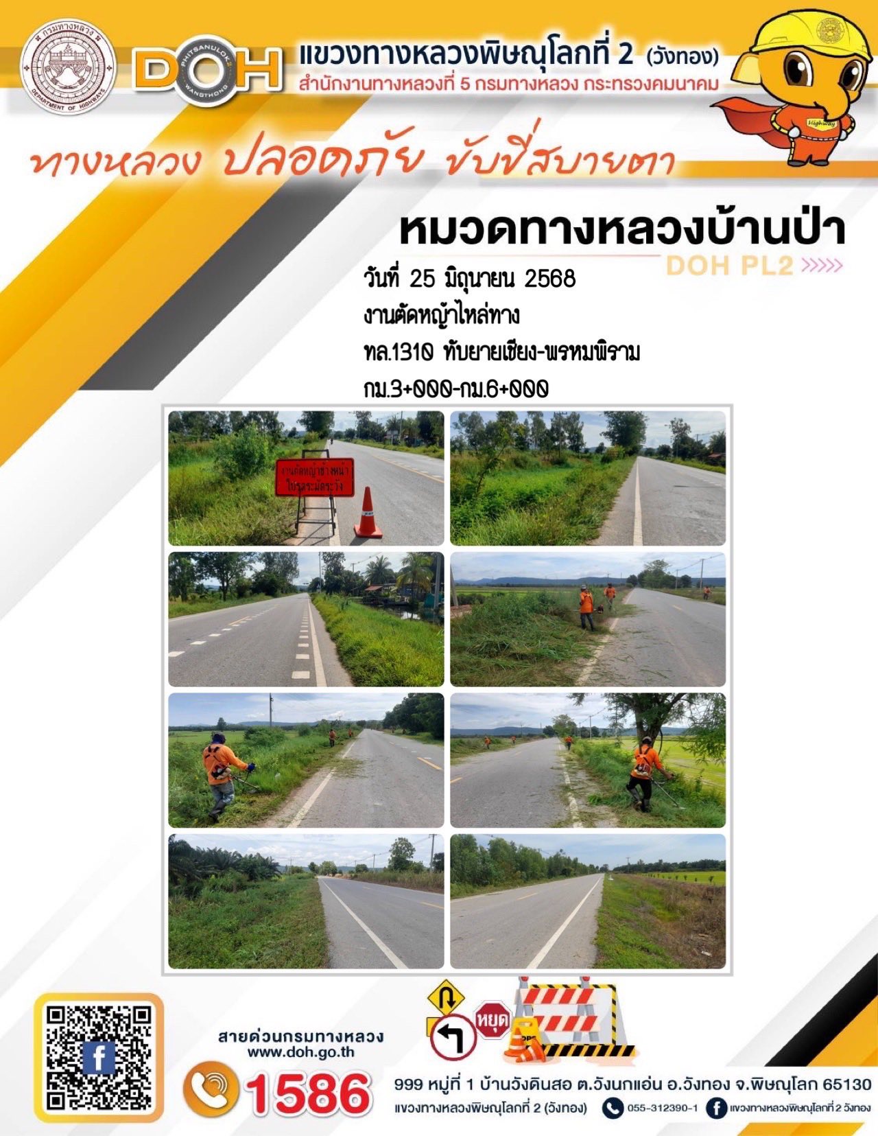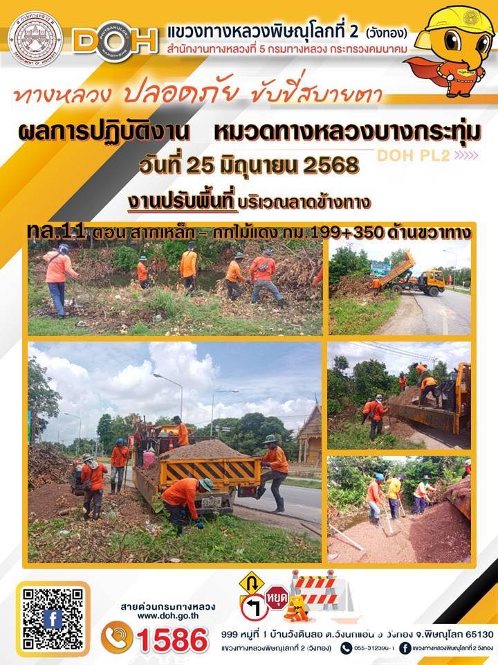 การปฏิบัติงานของ หมวดทางหลวง และ หน่วยงานในสังกัด เพื่ออำนวยความสะดวก และปลอดภัยให้กับประชาชนผู้ใช้เส้นทาง ประจำวันพุธ ที่ 25 มิถุนายน 2568