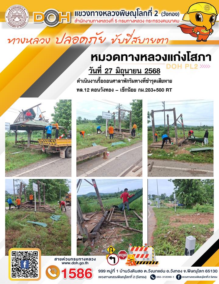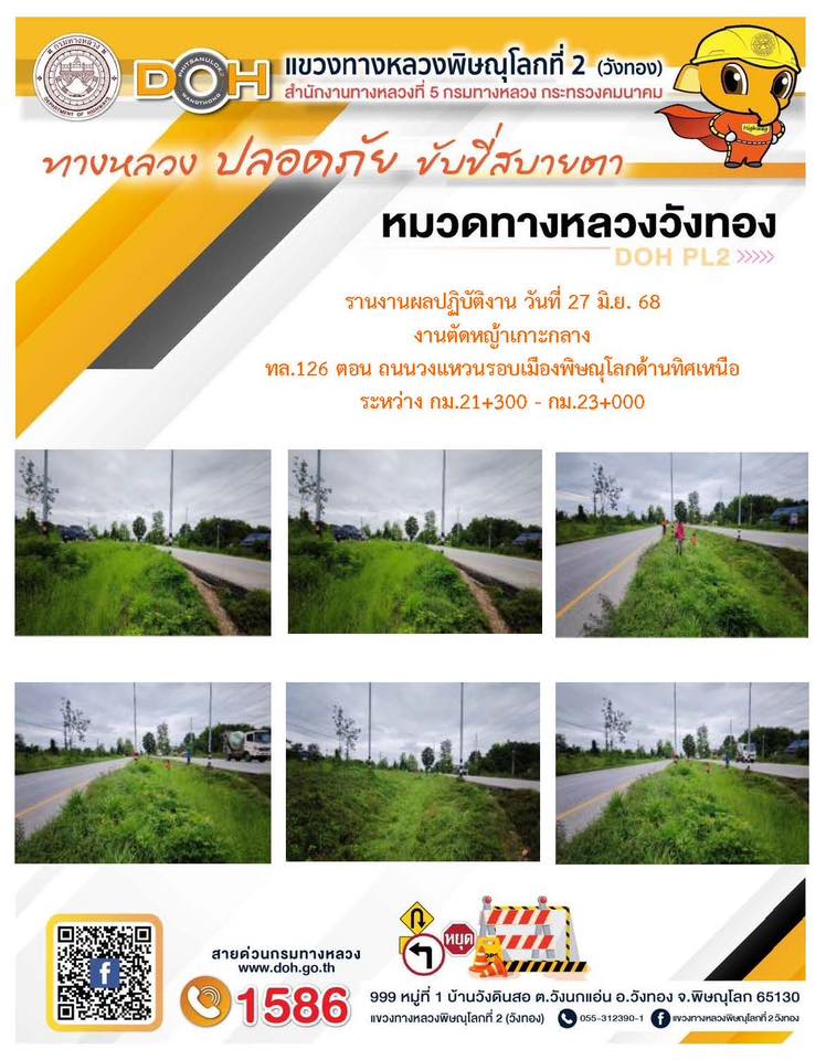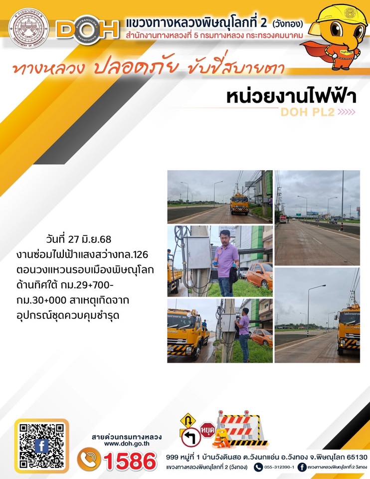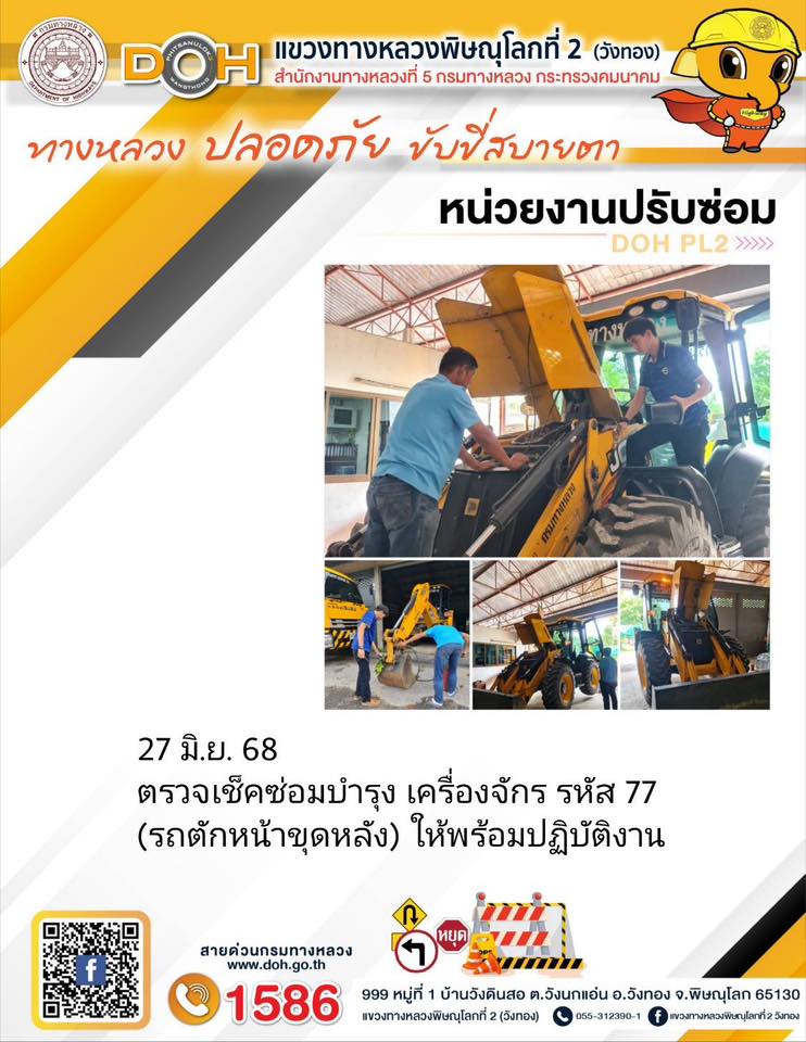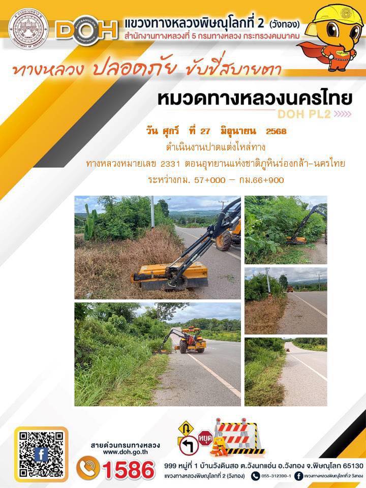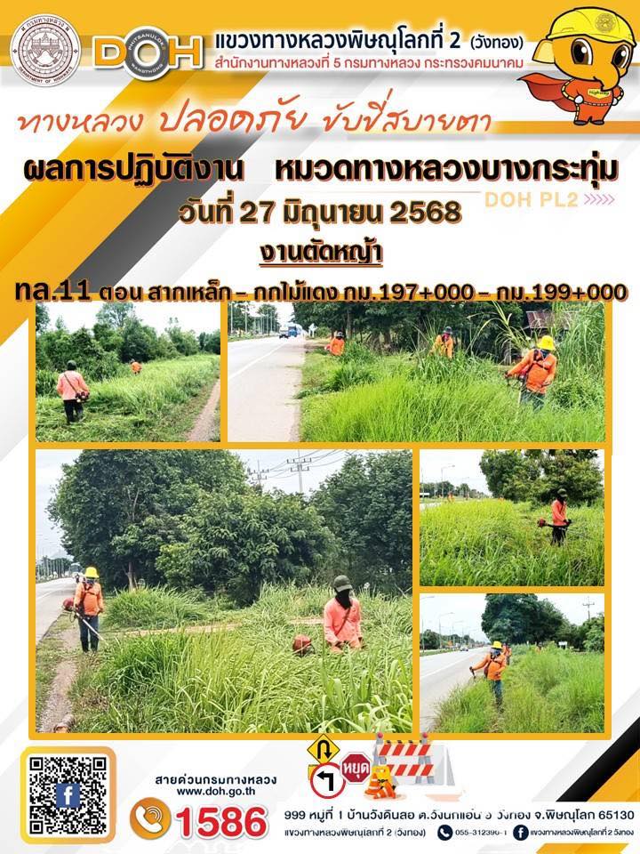 การปฏิบัติงานของ หมวดทางหลวง และ หน่วยงานในสังกัด เพื่ออำนวยความสะดวก และปลอดภัยให้กับประชาชนผู้ใช้เส้นทาง ประจำวันศุกร์ ที่ 27 มิถุนายน 2568