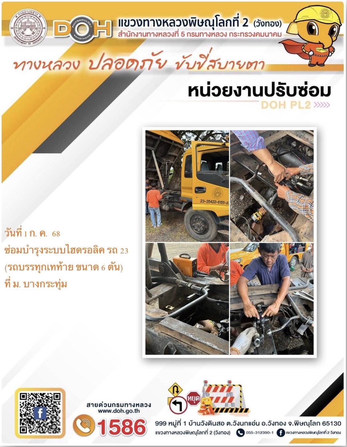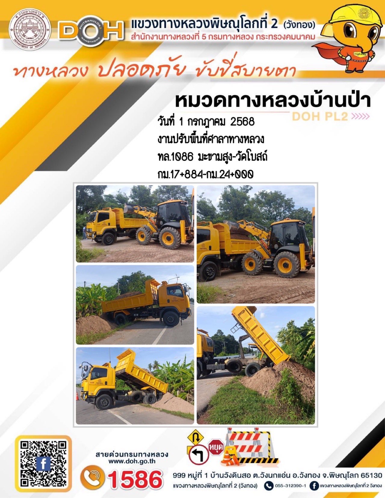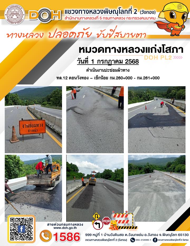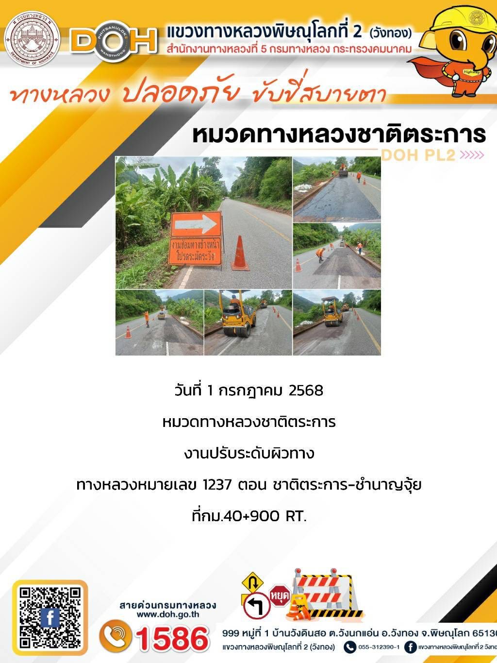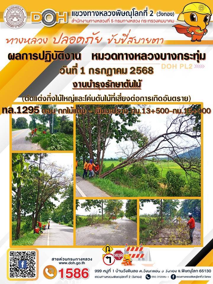 การปฏิบัติงานของ หมวดทางหลวง และ หน่วยงานในสังกัด เพื่ออำนวยความสะดวก และปลอดภัยให้กับประชาชนผู้ใช้เส้นทาง ประจำวันอังคาร ที่ 1 กรกฎาคม 2568