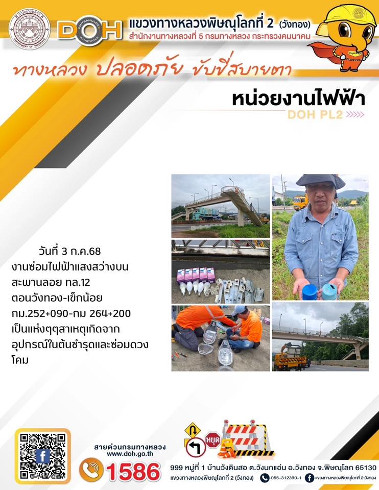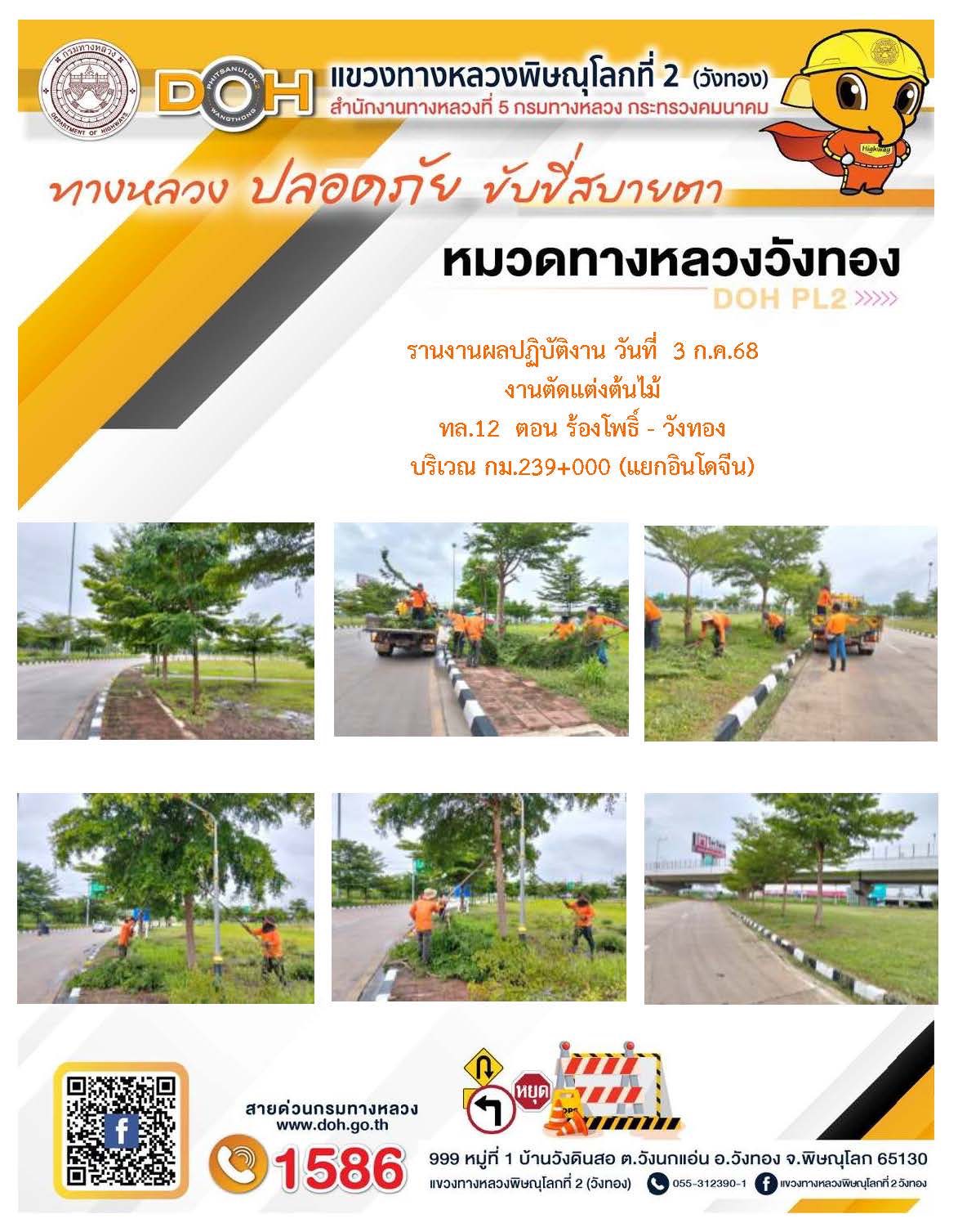 การปฏิบัติงานของ หมวดทางหลวง และ หน่วยงานในสังกัด เพื่ออำนวยความสะดวก และปลอดภัยให้กับประชาชนผู้ใช้เส้นทาง ประจำวันพฤหัสบดี ที่ 3 กรกฎาคม 2568