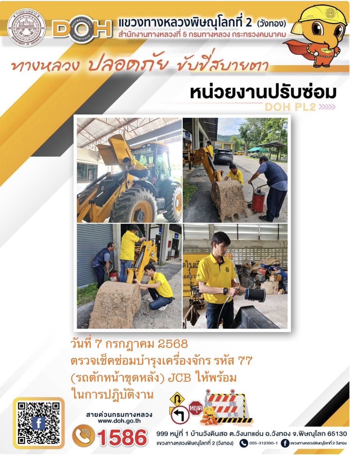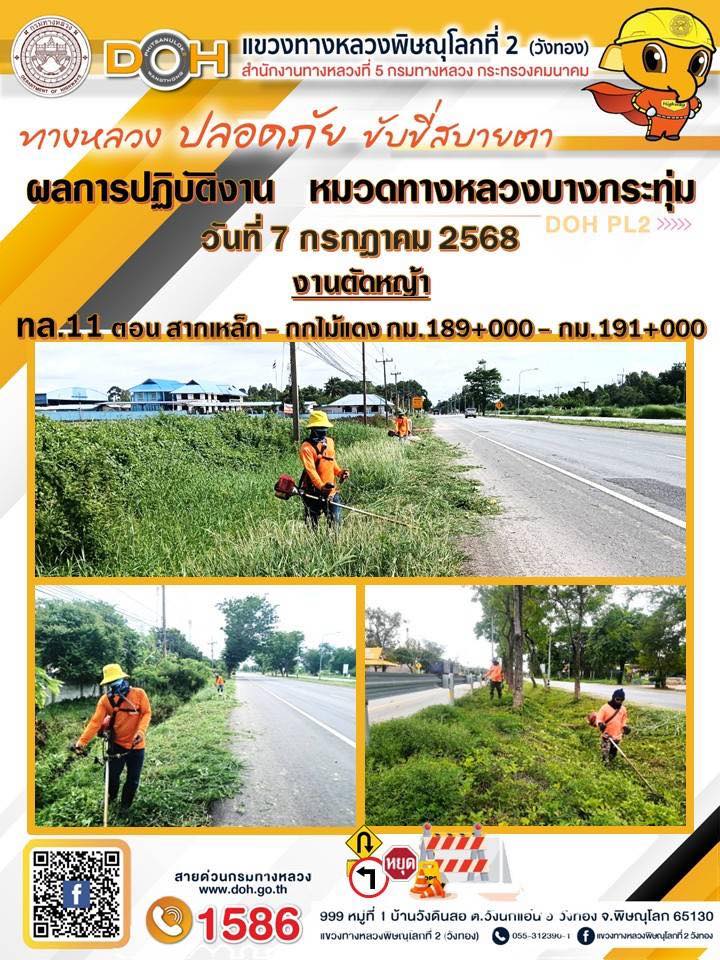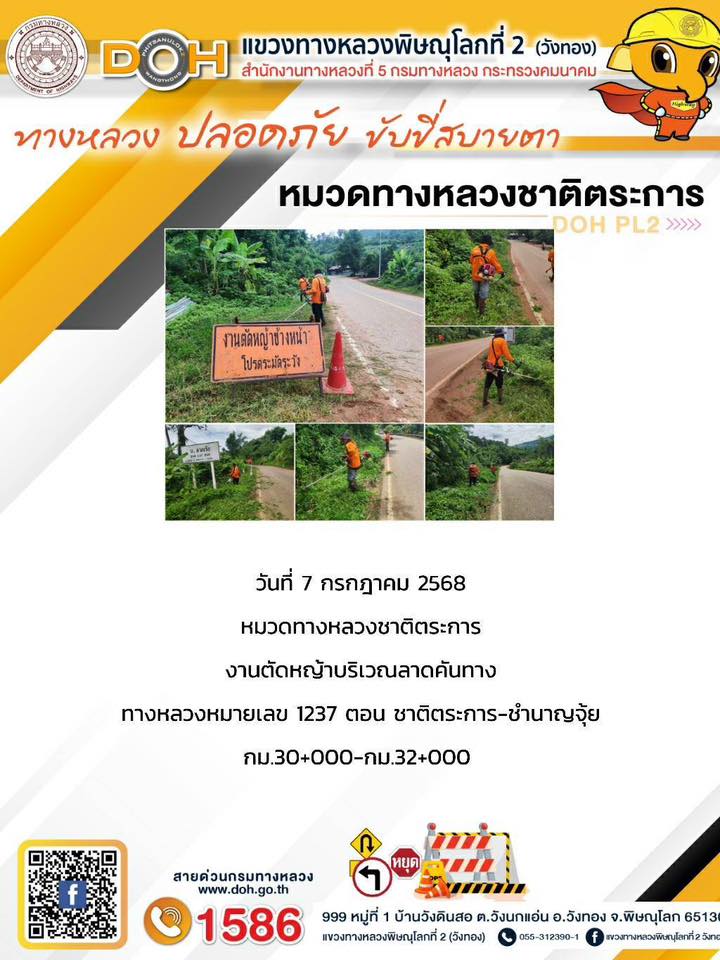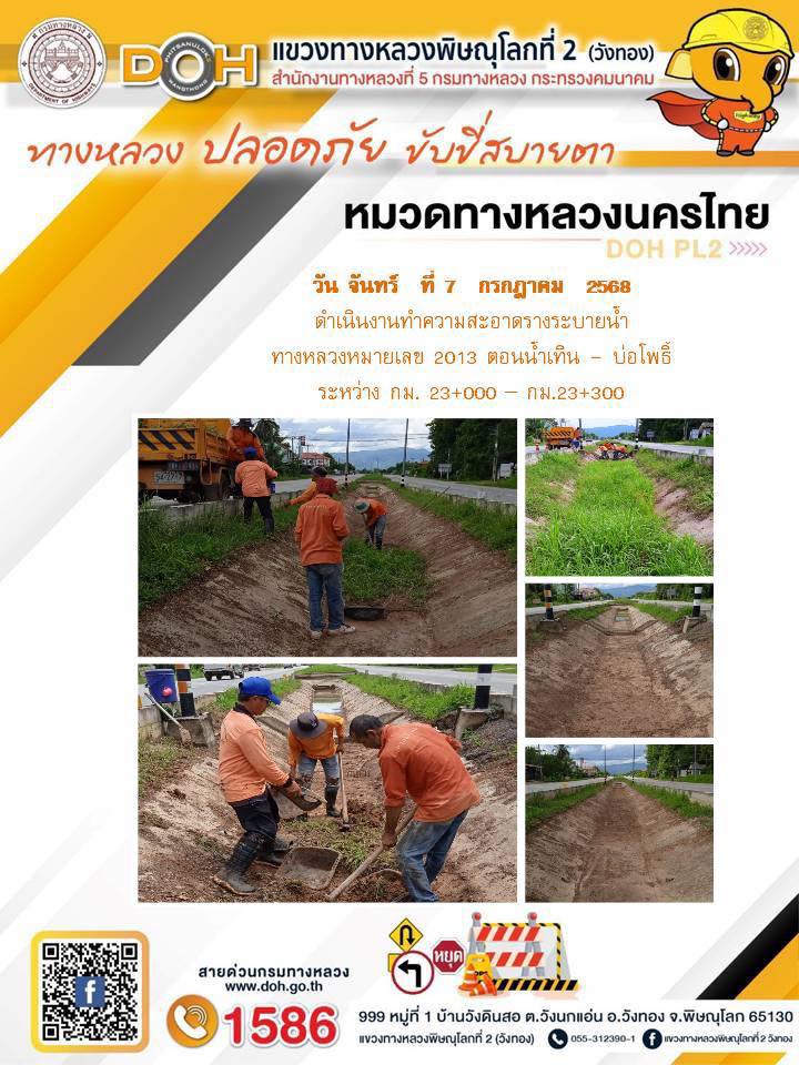 การปฏิบัติงานของ หมวดทางหลวง และ หน่วยงานในสังกัด เพื่ออำนวยความสะดวก และปลอดภัยให้กับประชาชนผู้ใช้เส้นทาง ประจำวันจันทร์ ที่ 7 กรกฎาคม 2568