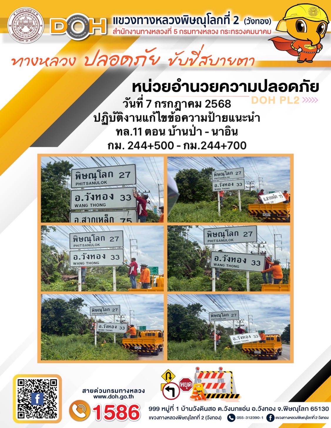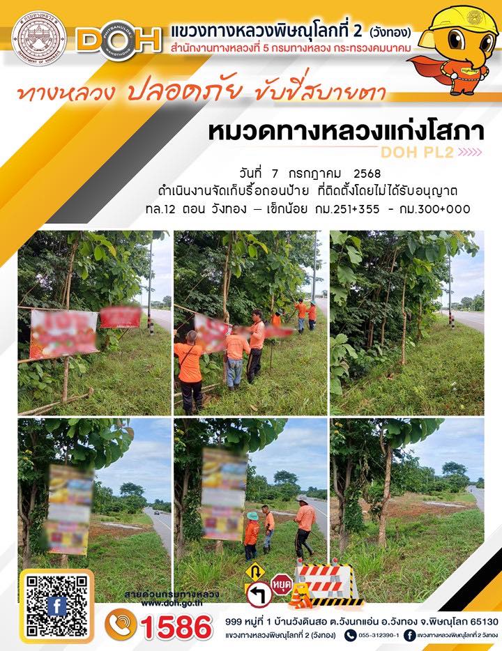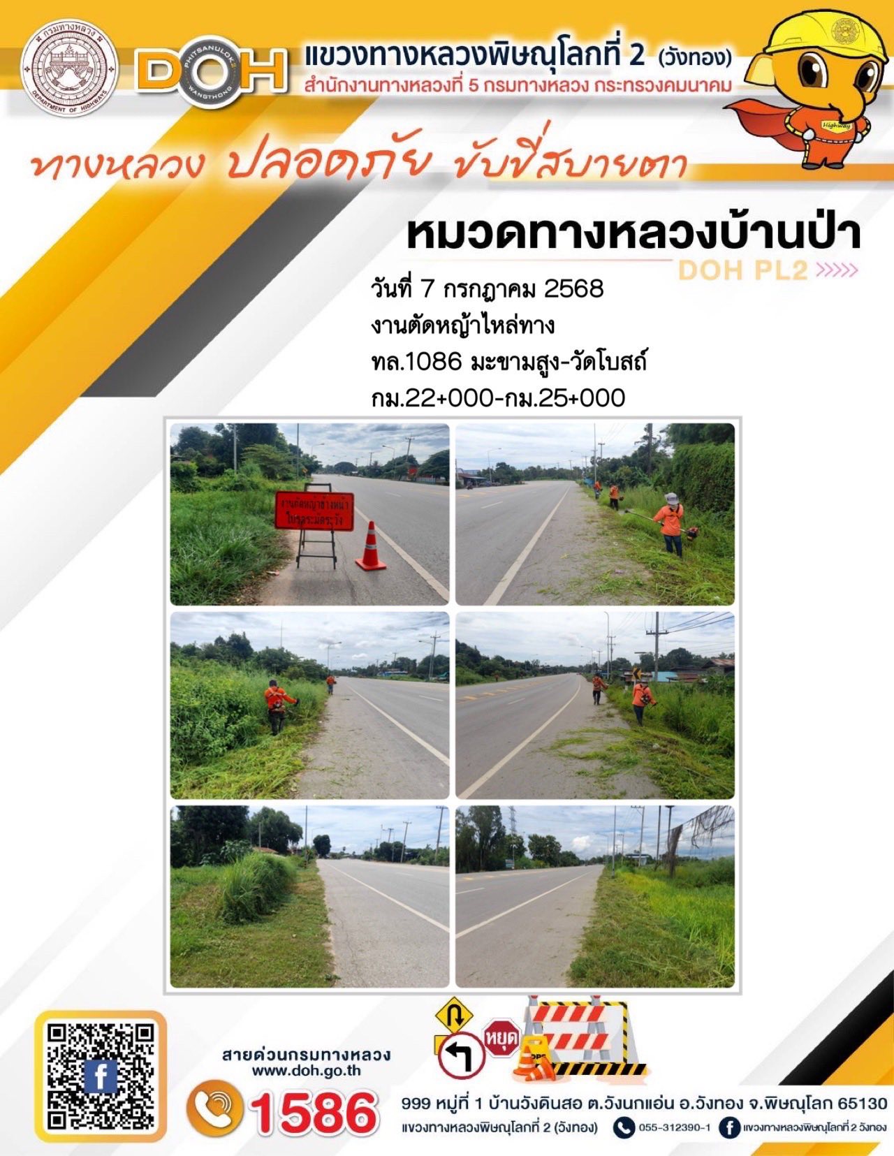 การปฏิบัติงานของ หมวดทางหลวง และ หน่วยงานในสังกัด เพื่ออำนวยความสะดวก และปลอดภัยให้กับประชาชนผู้ใช้เส้นทาง ประจำวันจันทร์ ที่ 7 กรกฎาคม 2568