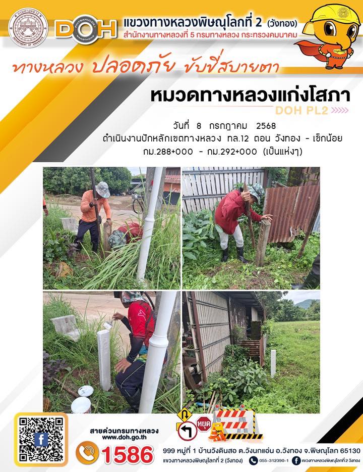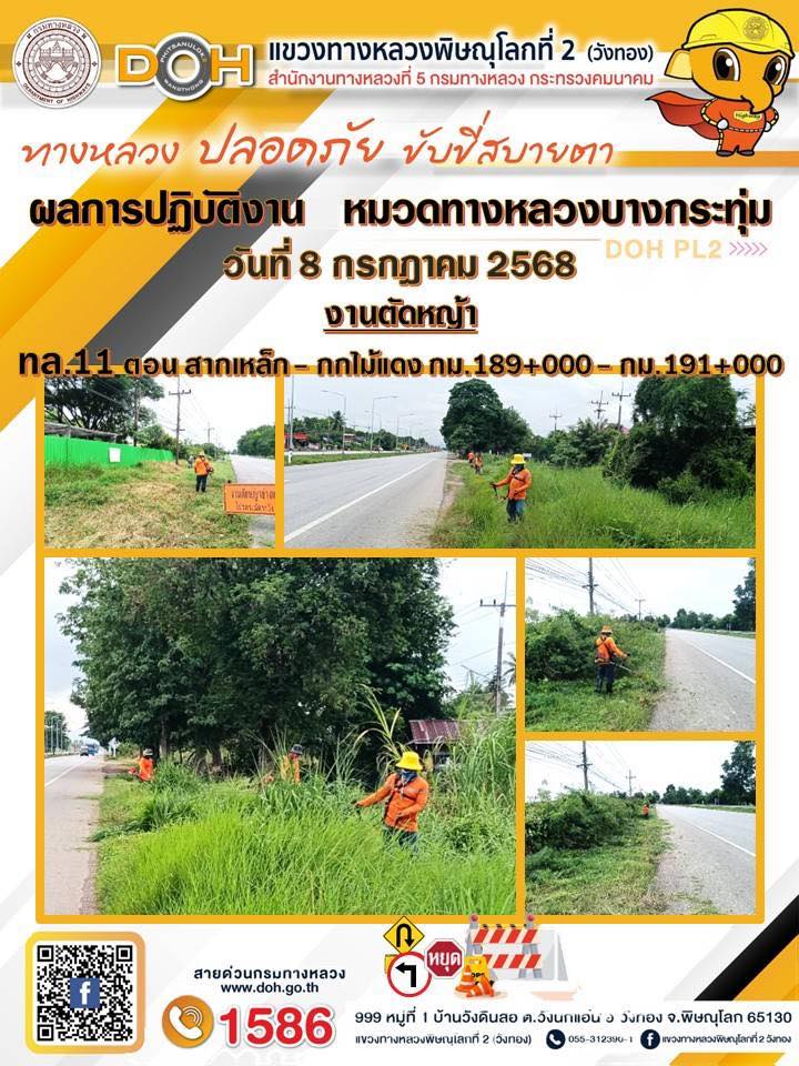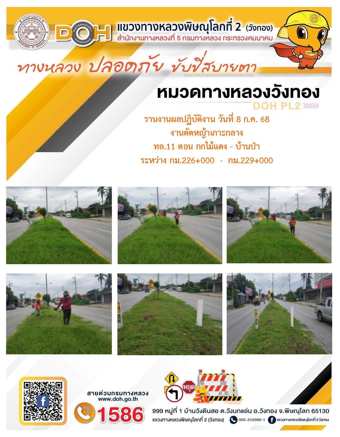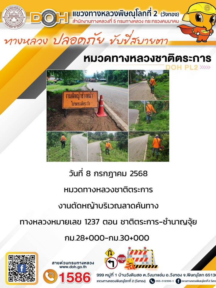 การปฏิบัติงานของ หมวดทางหลวง และ หน่วยงานในสังกัด เพื่ออำนวยความสะดวก และปลอดภัยให้กับประชาชนผู้ใช้เส้นทาง ประจำวันอังคาร ที่ 8 กรกฎาคม 2568