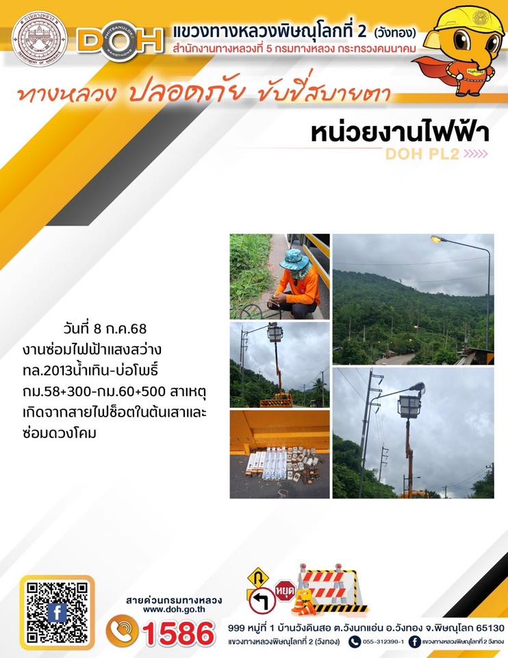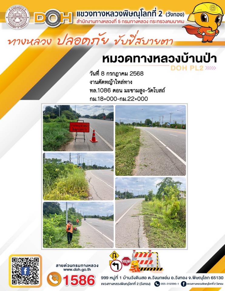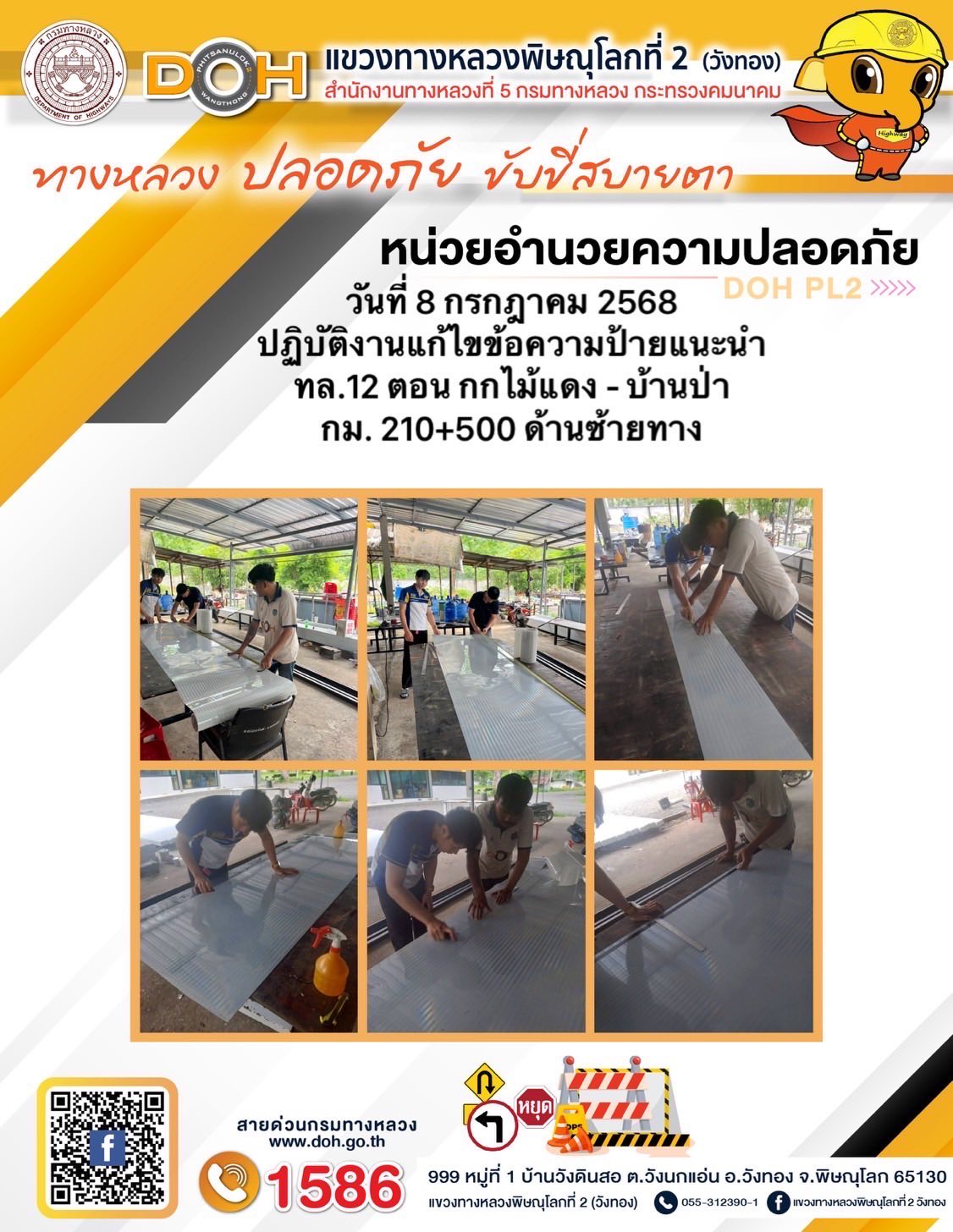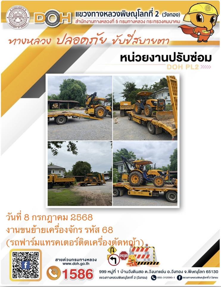 การปฏิบัติงานของ หมวดทางหลวง และ หน่วยงานในสังกัด เพื่ออำนวยความสะดวก และปลอดภัยให้กับประชาชนผู้ใช้เส้นทาง ประจำวันอังคาร ที่ 8 กรกฎาคม 2568
