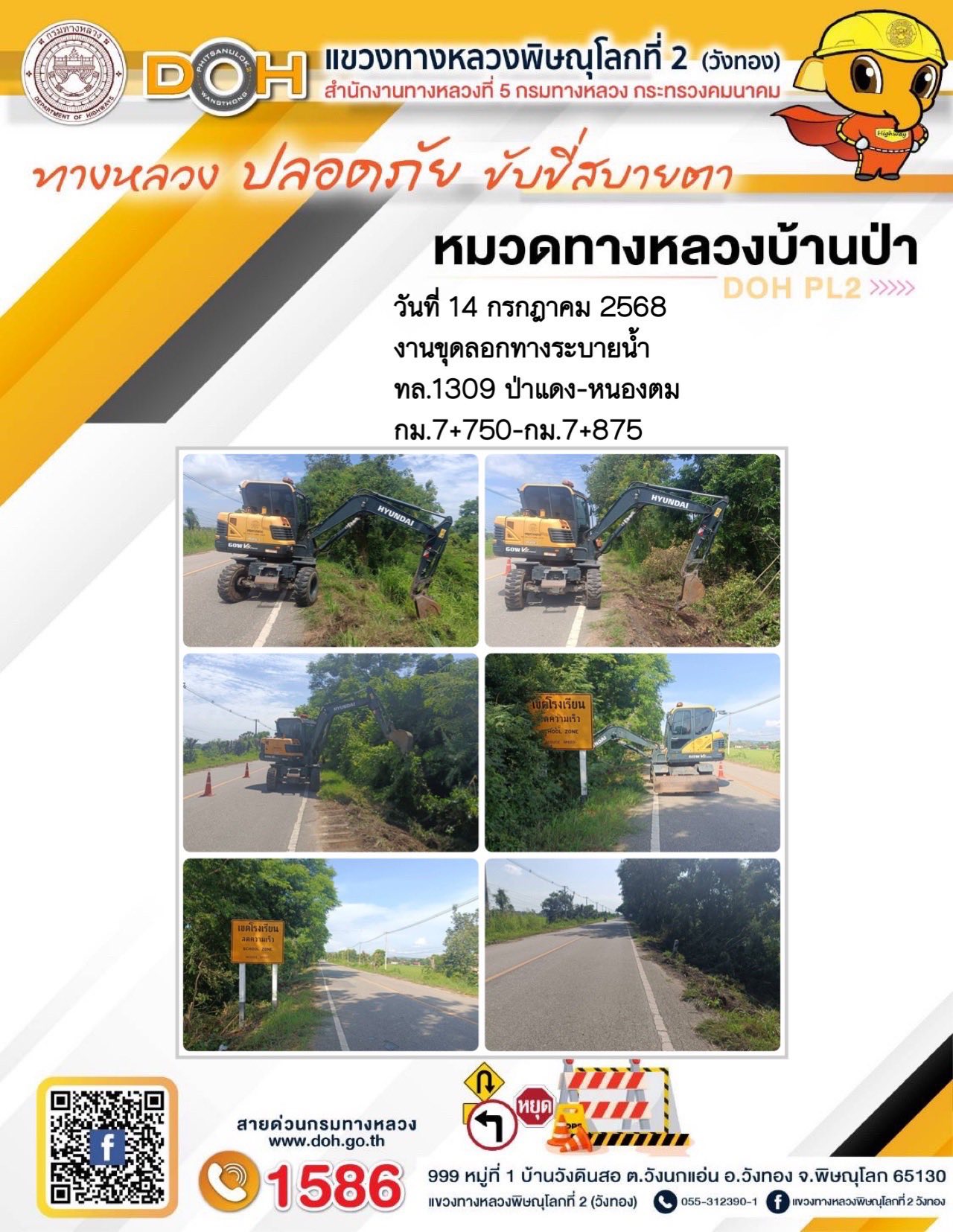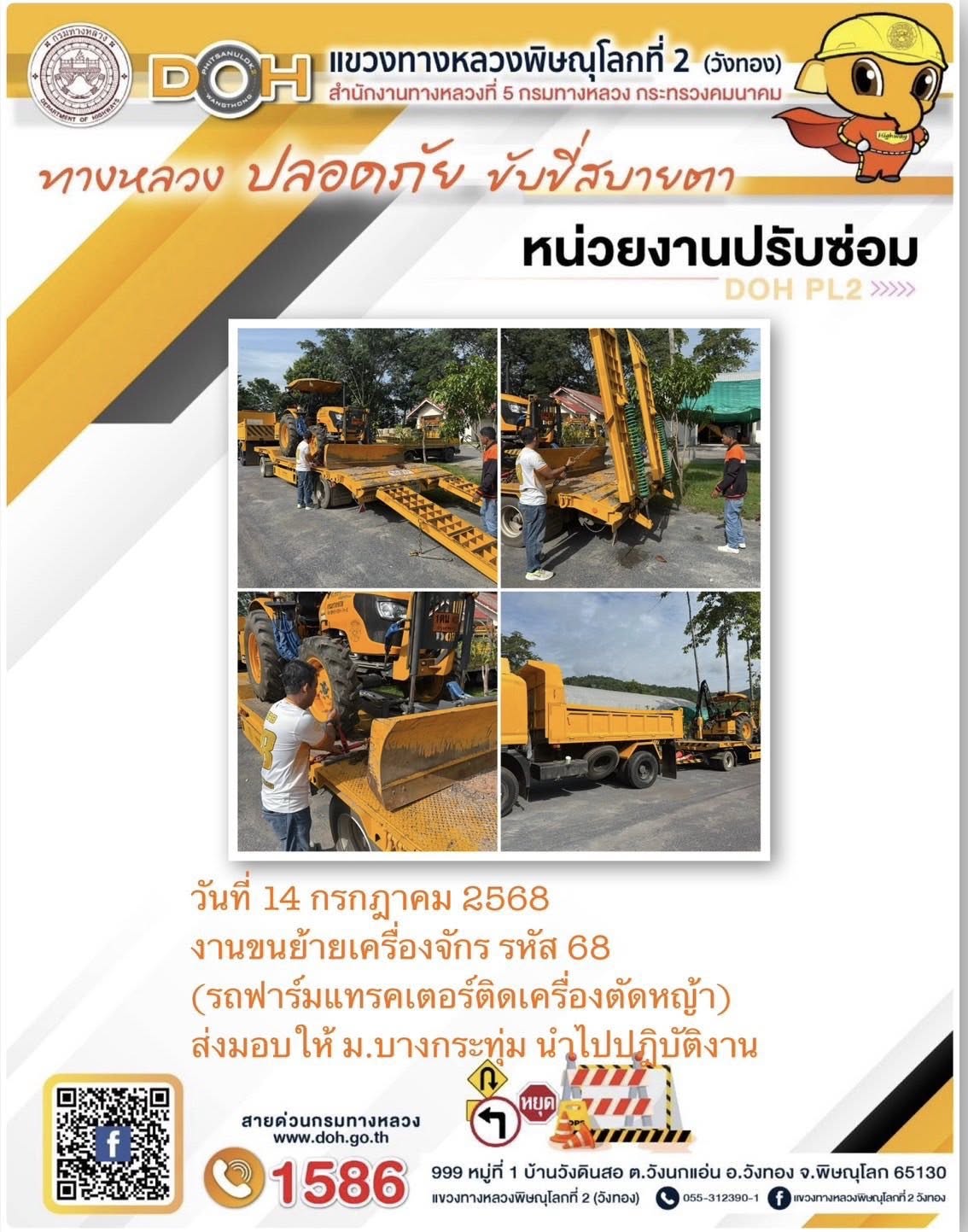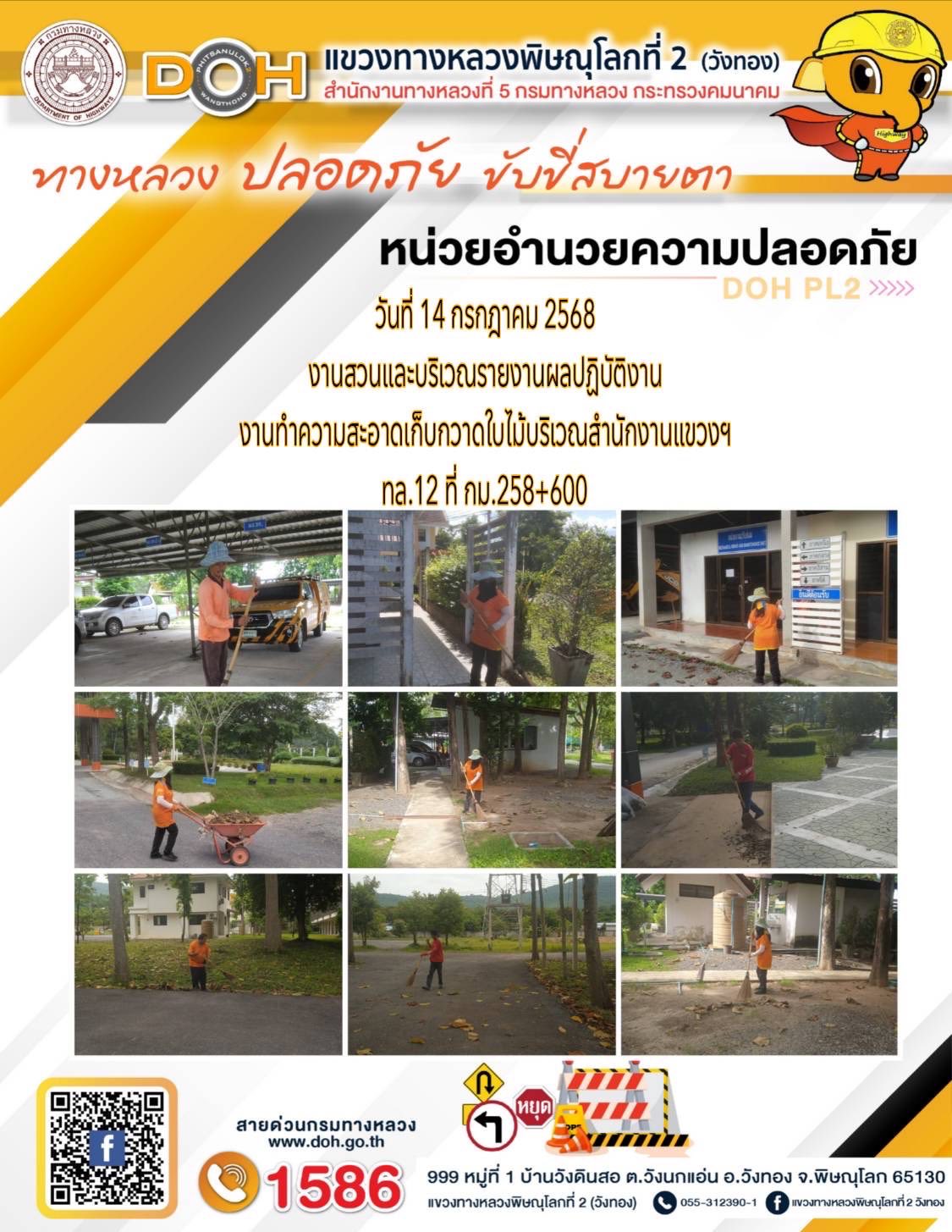 การปฏิบัติงานของ หมวดทางหลวง และ หน่วยงานในสังกัด เพื่ออำนวยความสะดวก และปลอดภัยให้กับประชาชนผู้ใช้เส้นทาง ประจำวันจันทร์ ที่ 14 กรกฎาคม 2568