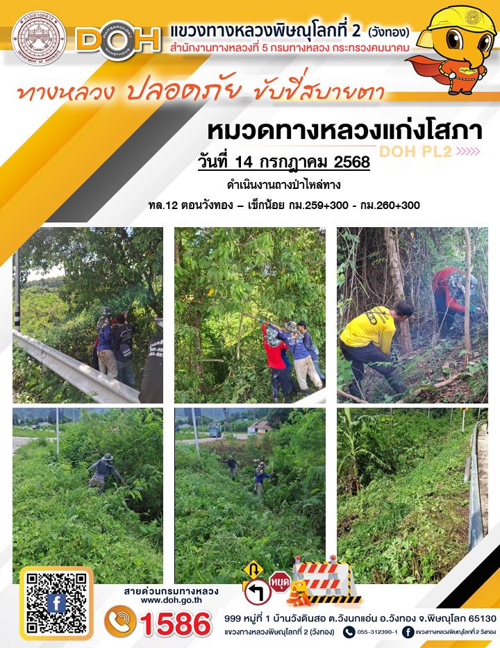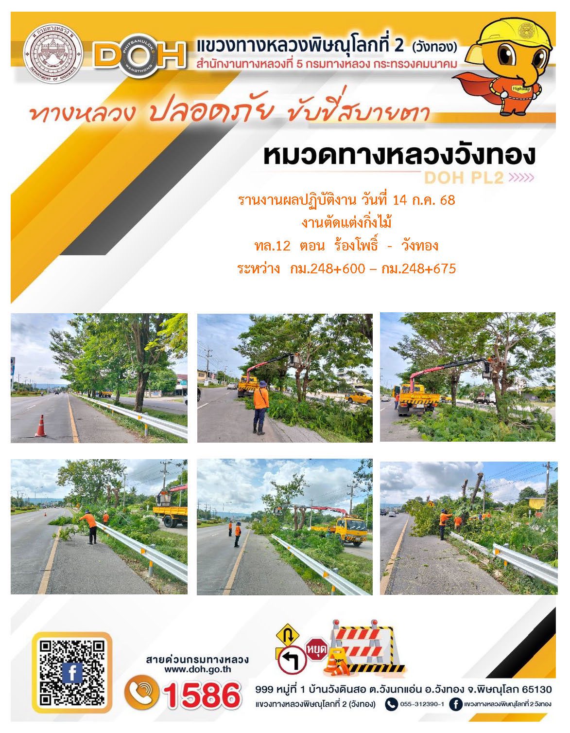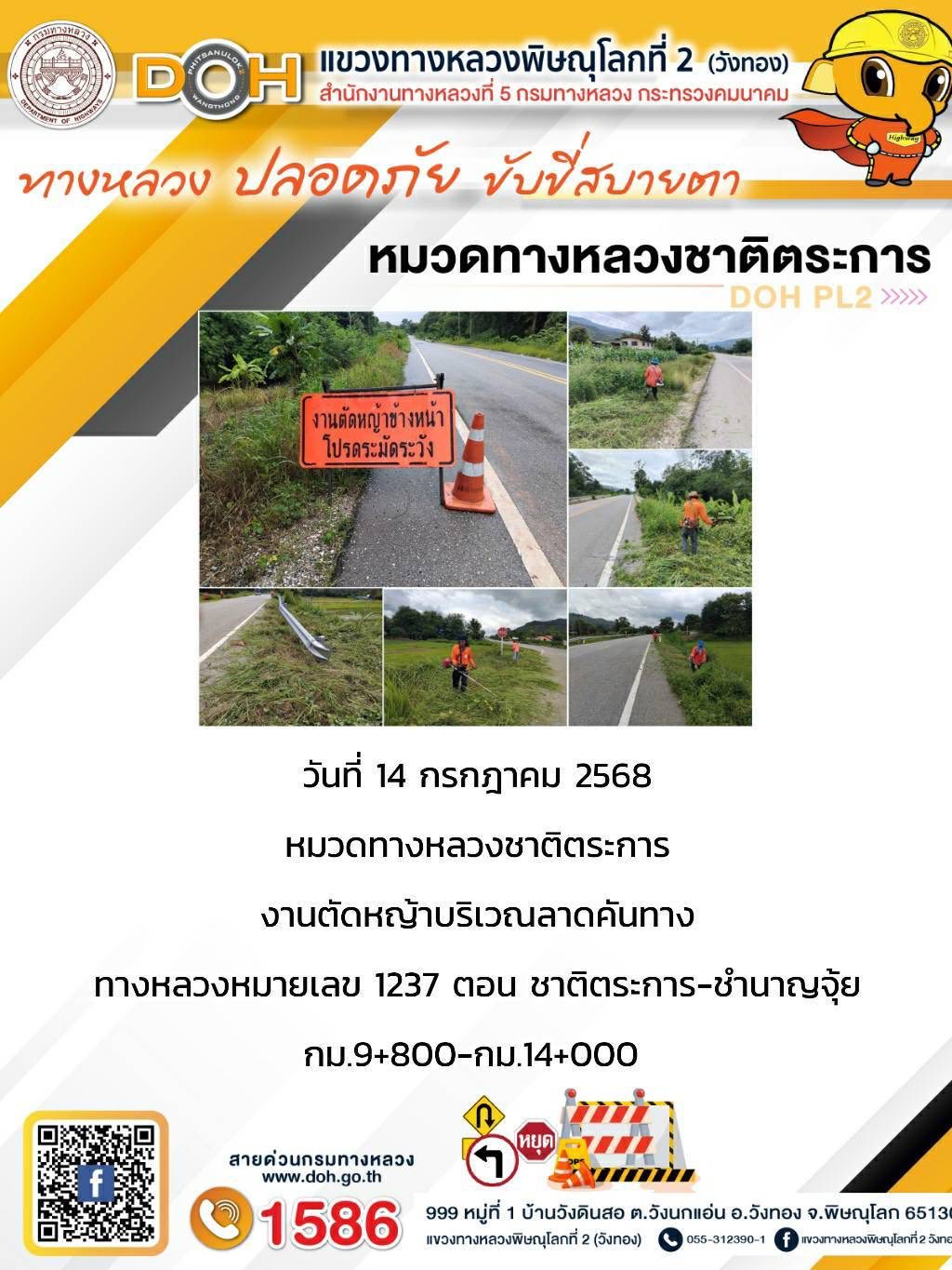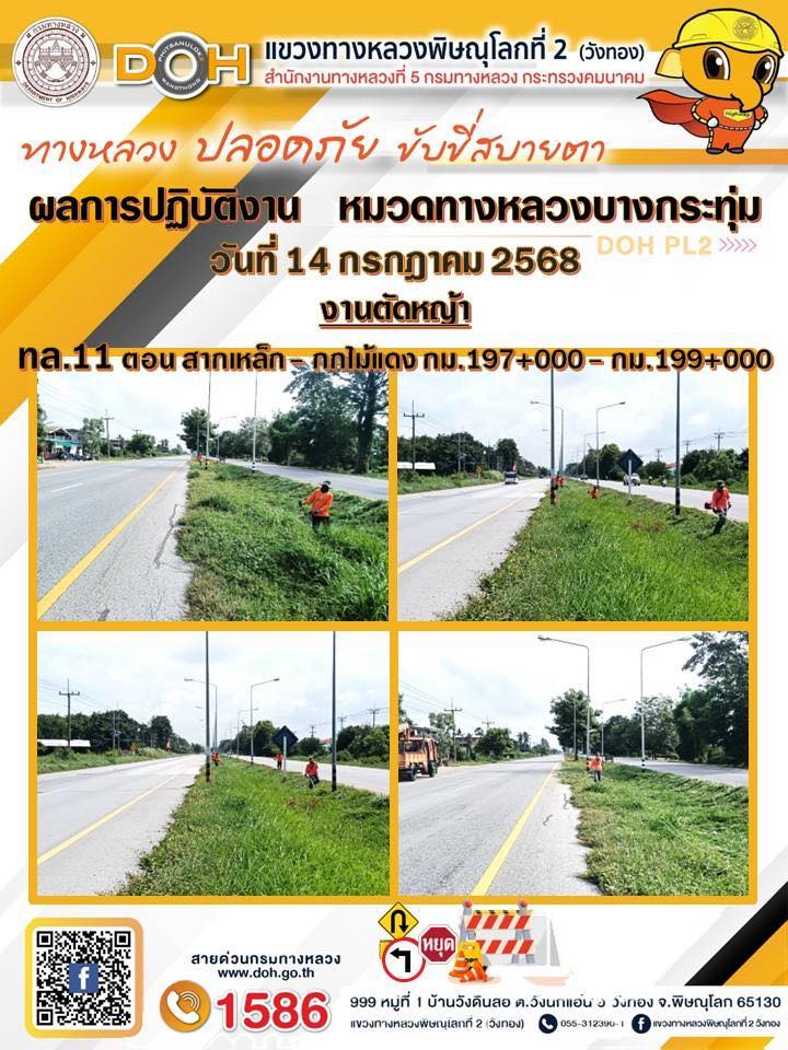 การปฏิบัติงานของ หมวดทางหลวง และ หน่วยงานในสังกัด เพื่ออำนวยความสะดวก และปลอดภัยให้กับประชาชนผู้ใช้เส้นทาง ประจำวันจันทร์ ที่ 14 กรกฎาคม 2568