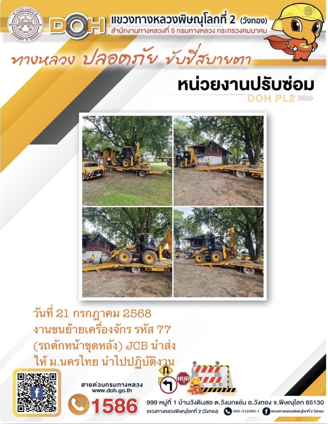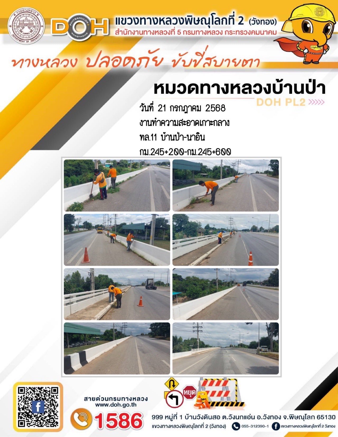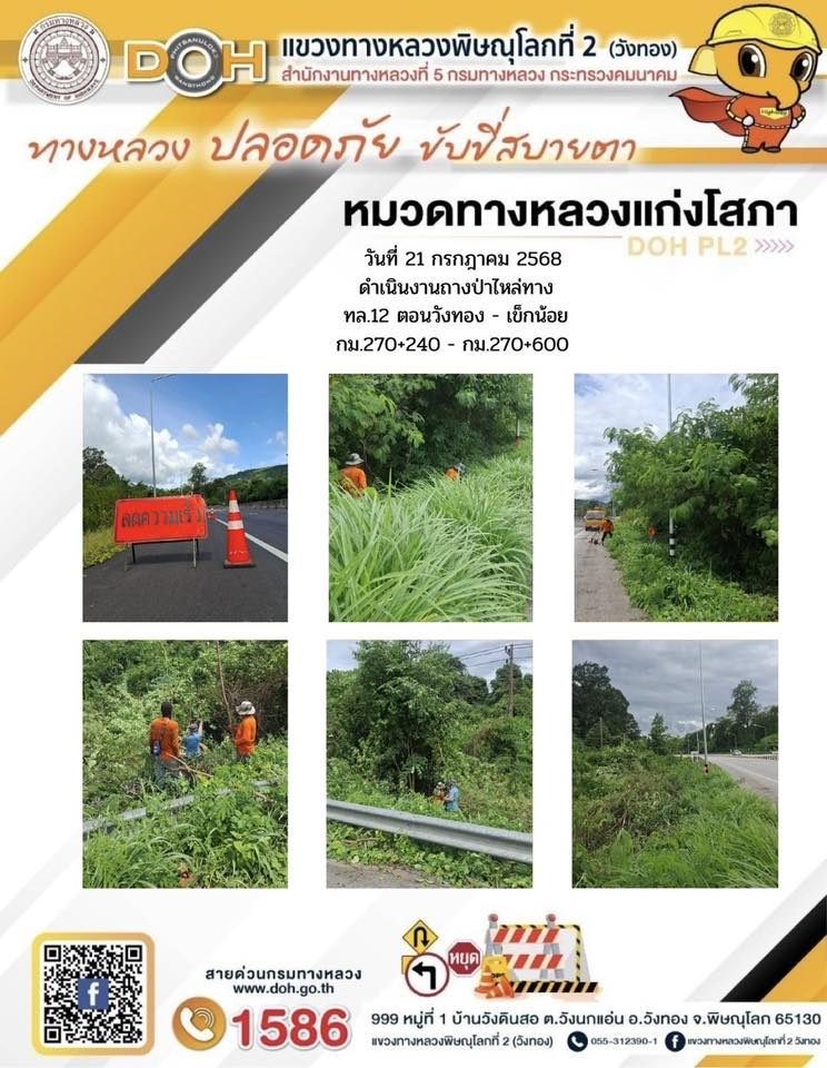 การปฏิบัติงานของ หมวดทางหลวง และ หน่วยงานในสังกัด เพื่ออำนวยความสะดวก และปลอดภัยให้กับประชาชนผู้ใช้เส้นทาง ประจำวันจันทร์ ที่ 21 กรกฎาคม 2568