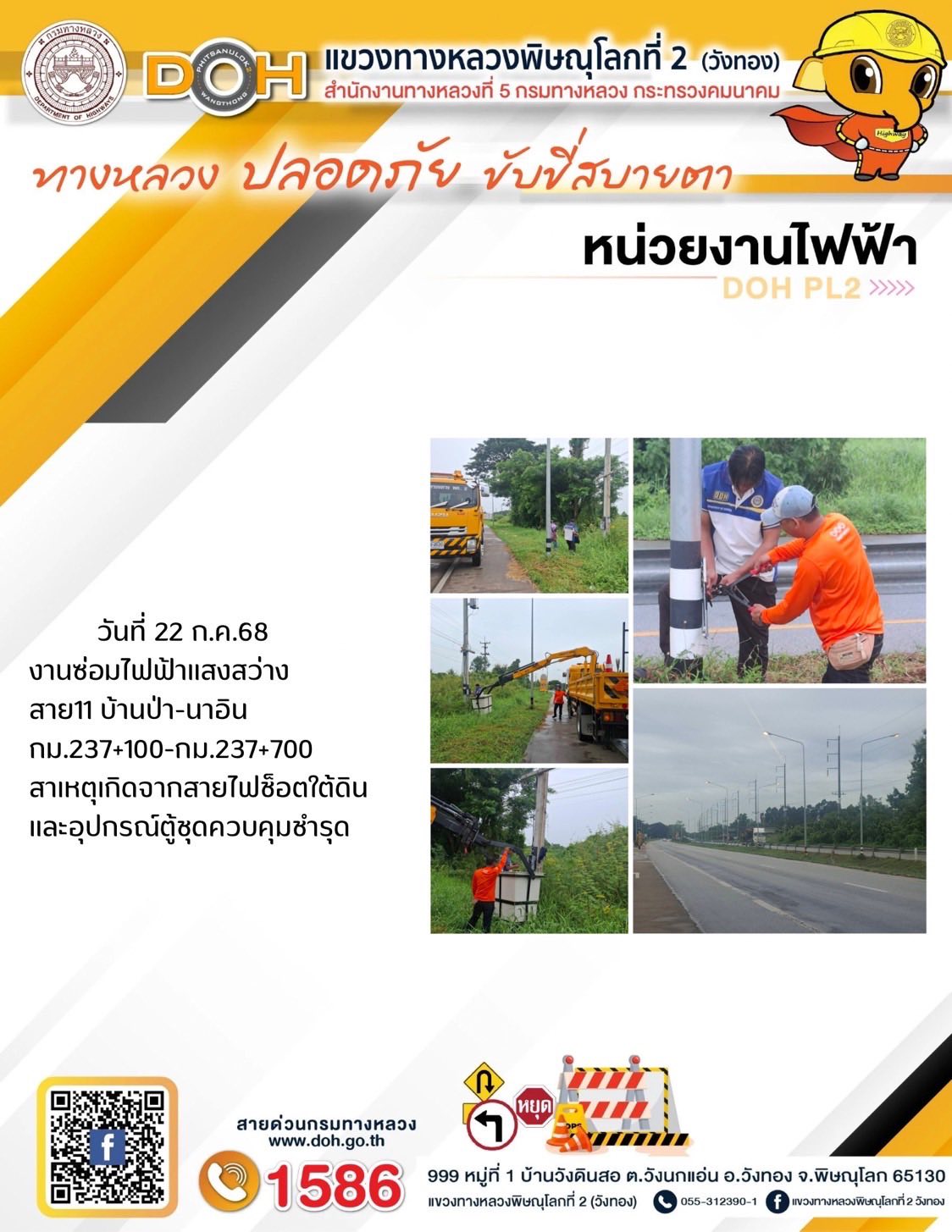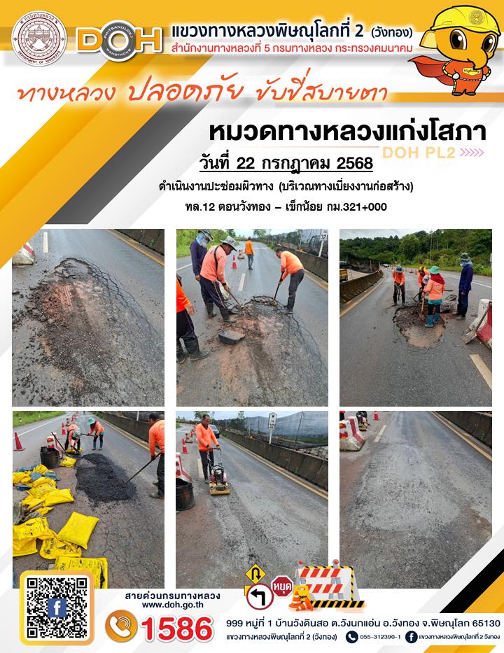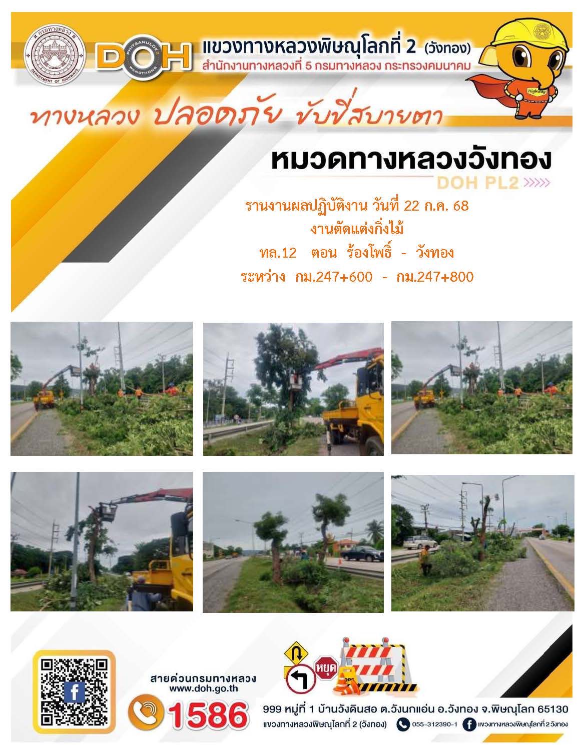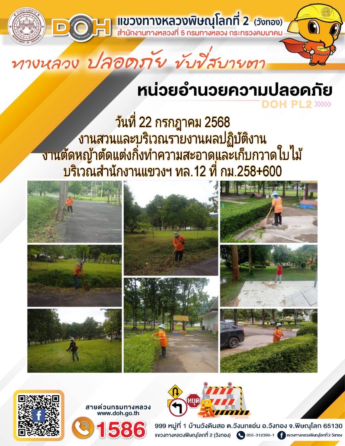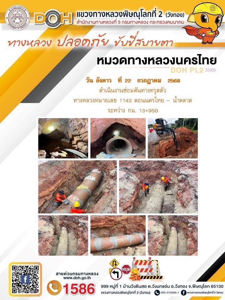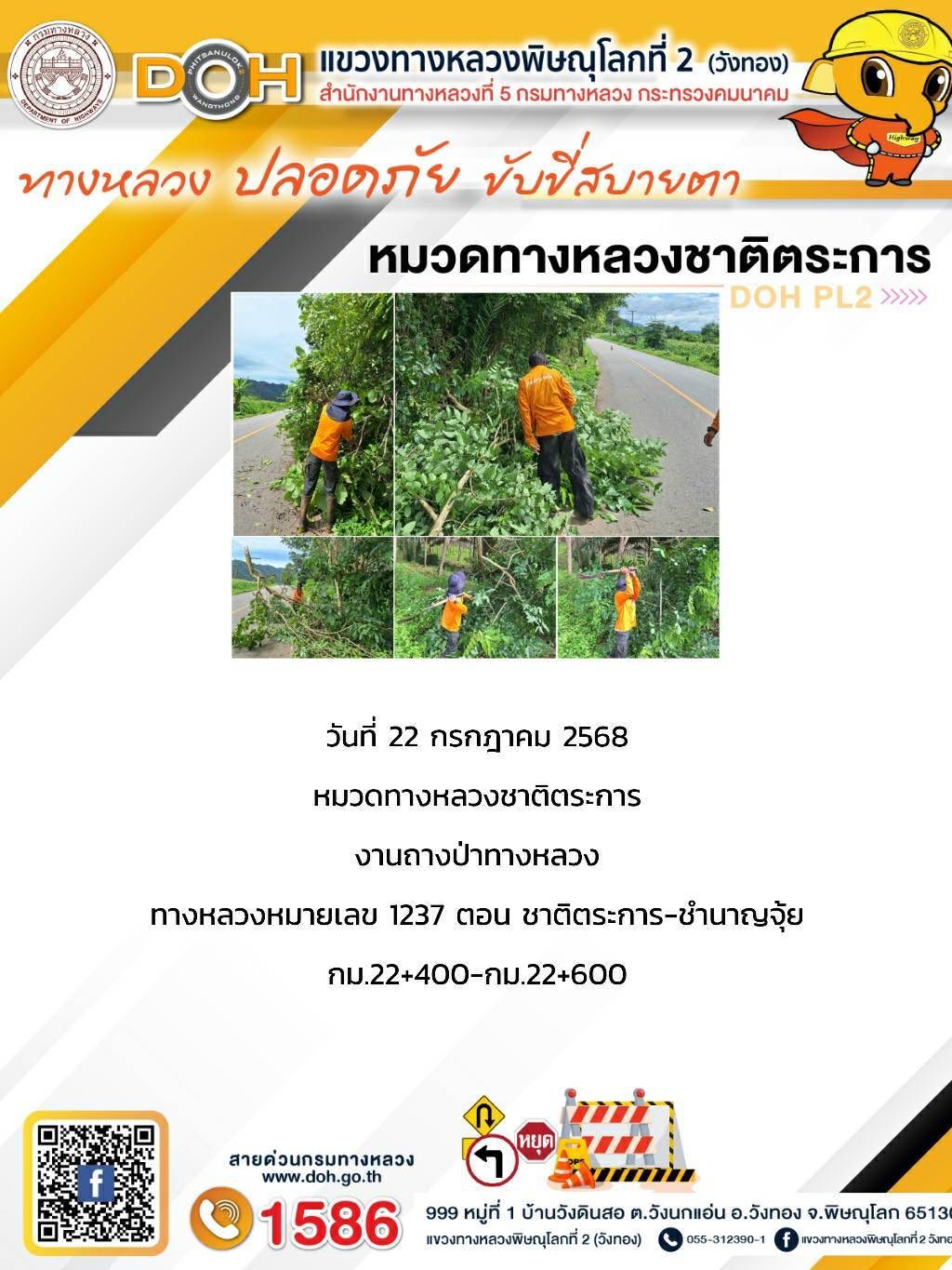 การปฏิบัติงานของ หมวดทางหลวง และ หน่วยงานในสังกัด เพื่ออำนวยความสะดวก และปลอดภัยให้กับประชาชนผู้ใช้เส้นทาง ประจำวันอังคาร ที่ 22 กรกฎาคม 2568