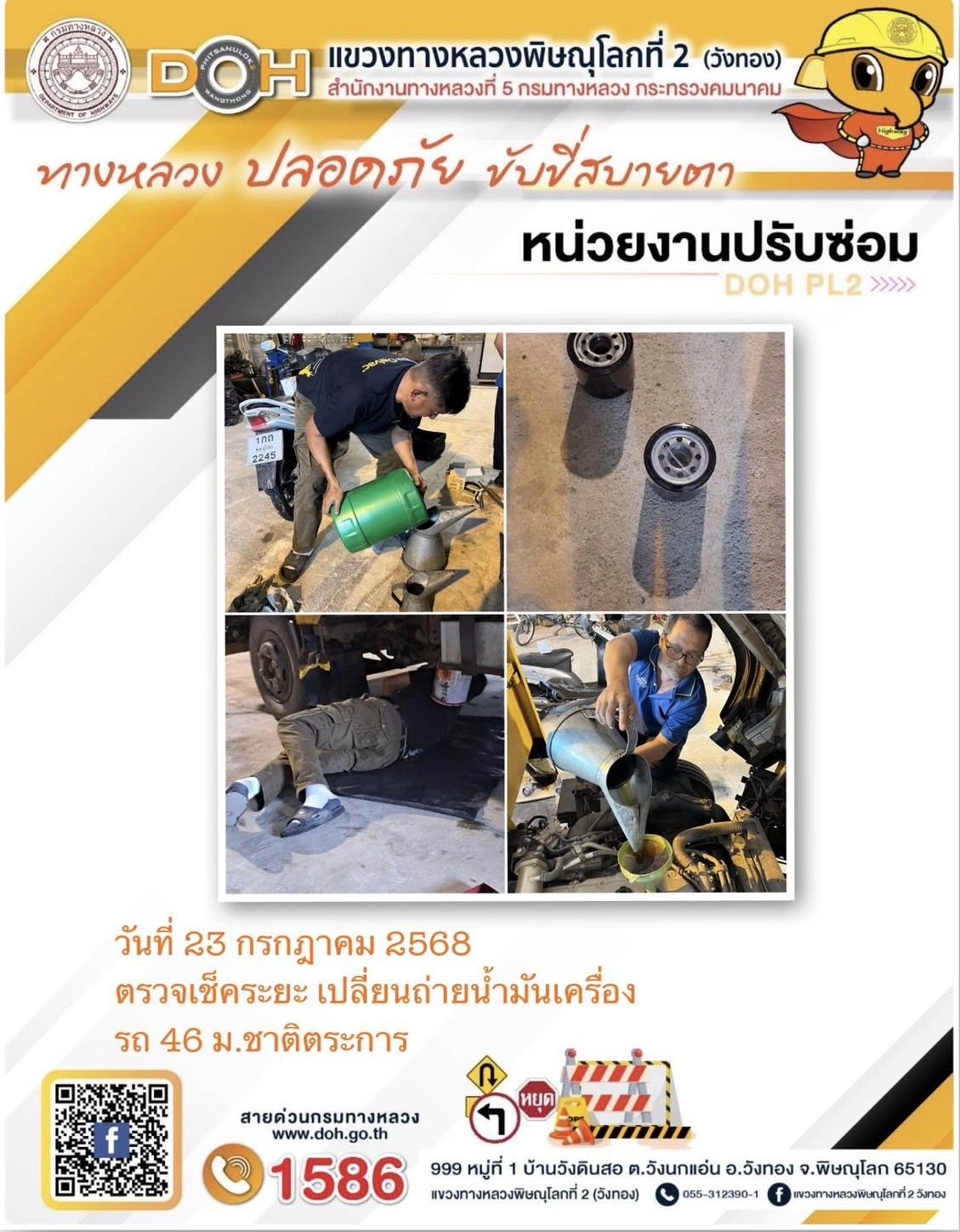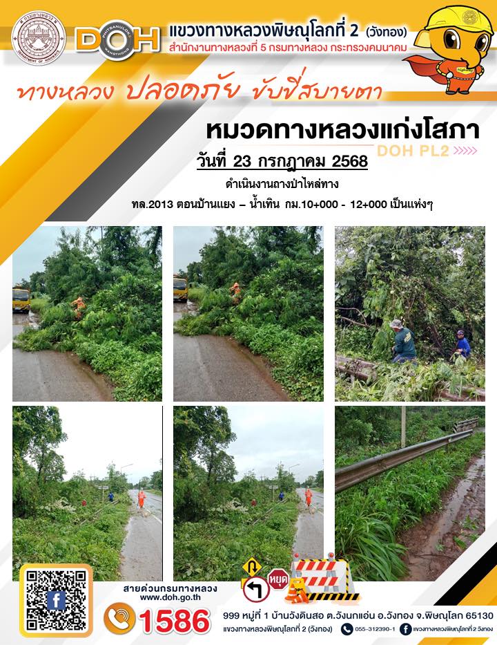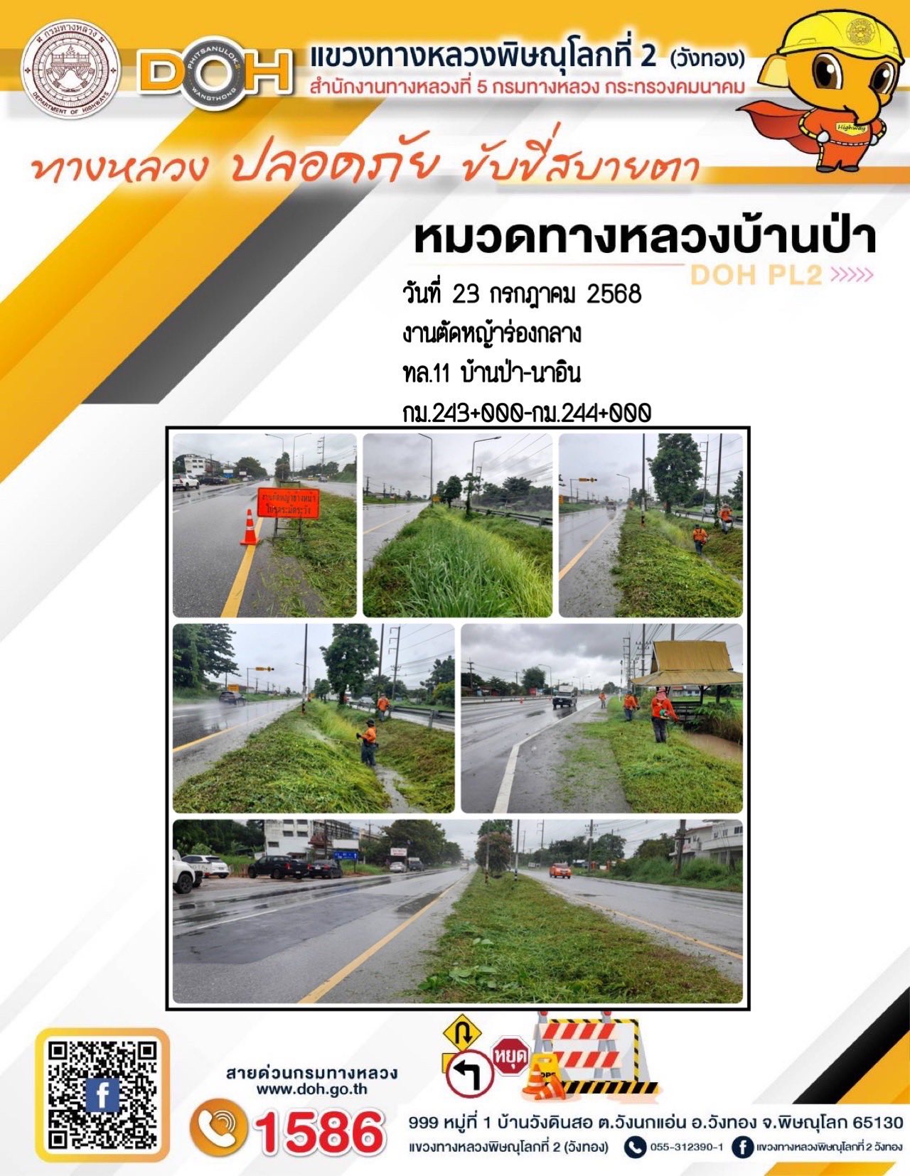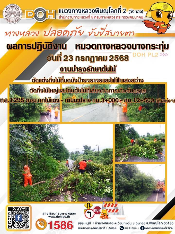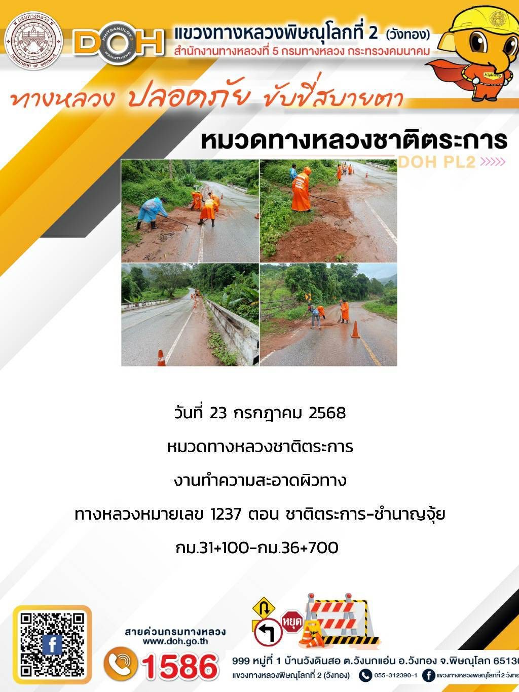 การปฏิบัติงานของ หมวดทางหลวง และ หน่วยงานในสังกัด เพื่ออำนวยความสะดวก และปลอดภัยให้กับประชาชนผู้ใช้เส้นทาง ประจำวันพุธ ที่ 23 กรกฎาคม 2568