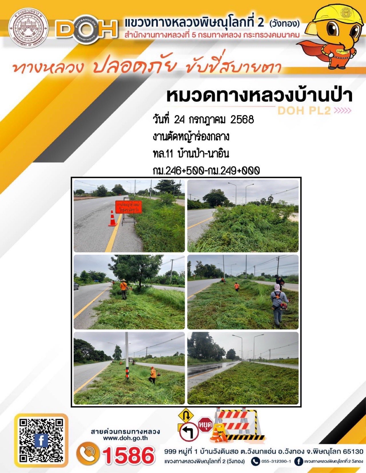 การปฏิบัติงานของ หมวดทางหลวง และ หน่วยงานในสังกัด เพื่ออำนวยความสะดวก และปลอดภัยให้กับประชาชนผู้ใช้เส้นทาง ประจำวันพฤหัสบดี ที่ 24 กรกฎาคม 2568