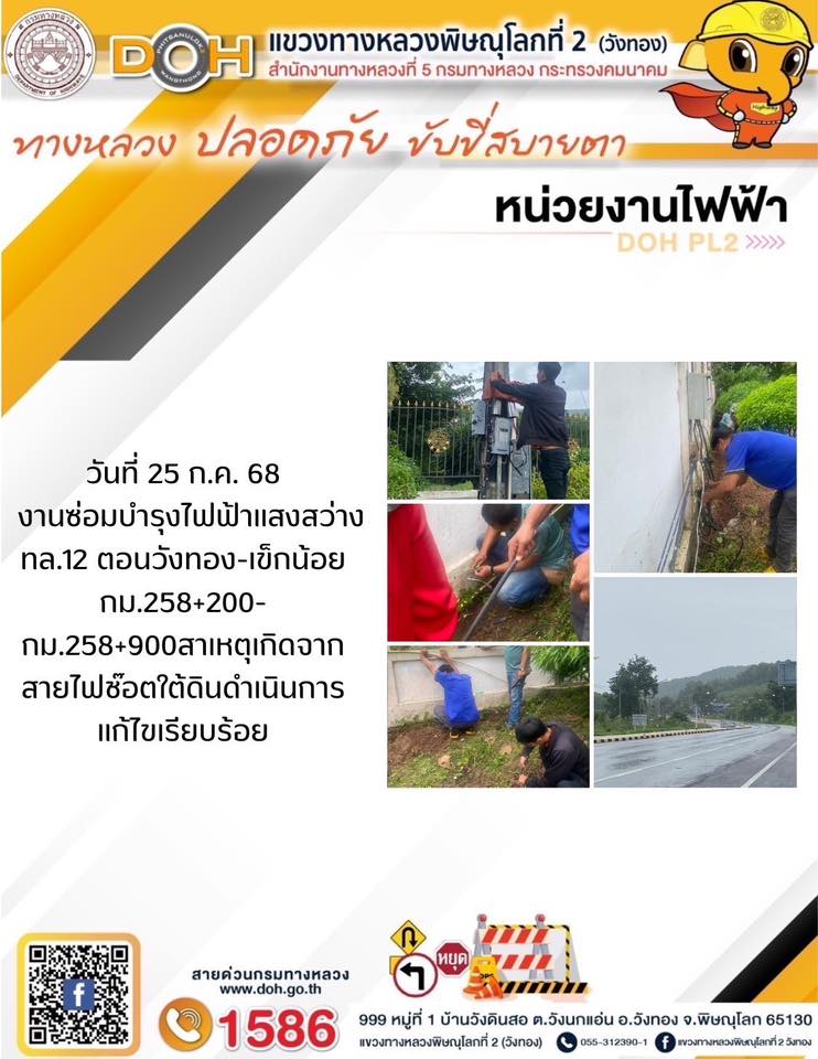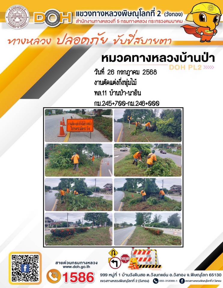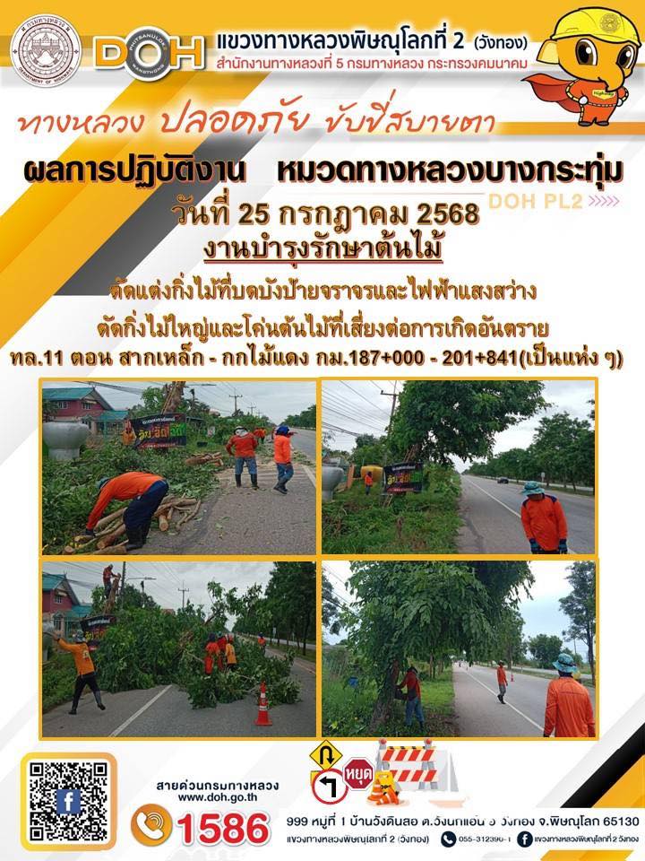 การปฏิบัติงานของ หมวดทางหลวง และ หน่วยงานในสังกัด เพื่ออำนวยความสะดวก และปลอดภัยให้กับประชาชนผู้ใช้เส้นทาง ประจำวันศุกร์ ที่ 25 กรกฎาคม 2568
