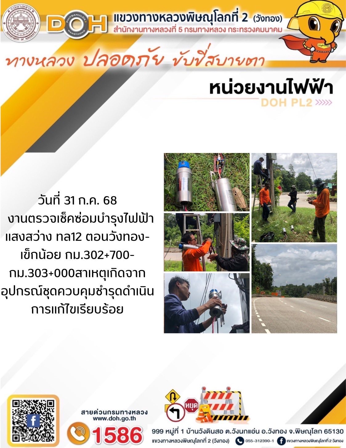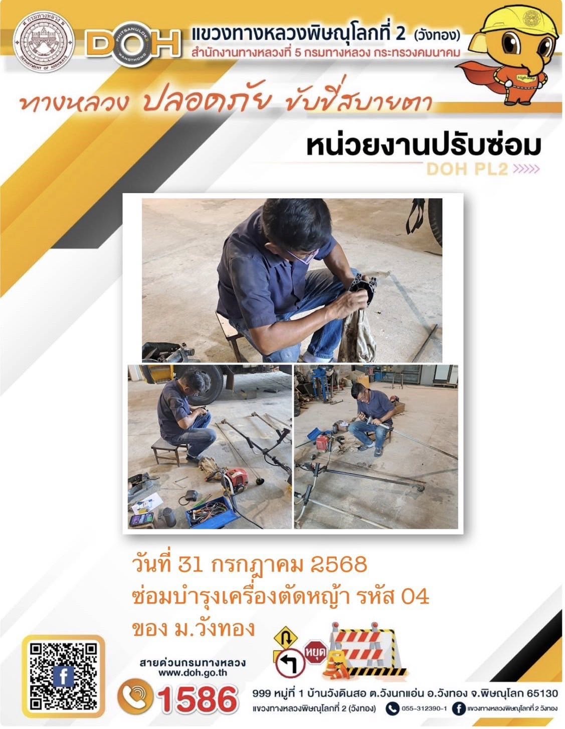 การปฏิบัติงานของ หมวดทางหลวง และ หน่วยงานในสังกัด เพื่ออำนวยความสะดวก และปลอดภัยให้กับประชาชนผู้ใช้เส้นทาง ประจำวันพฤหัสบดี ที่ 31 กรกฎาคม 2568