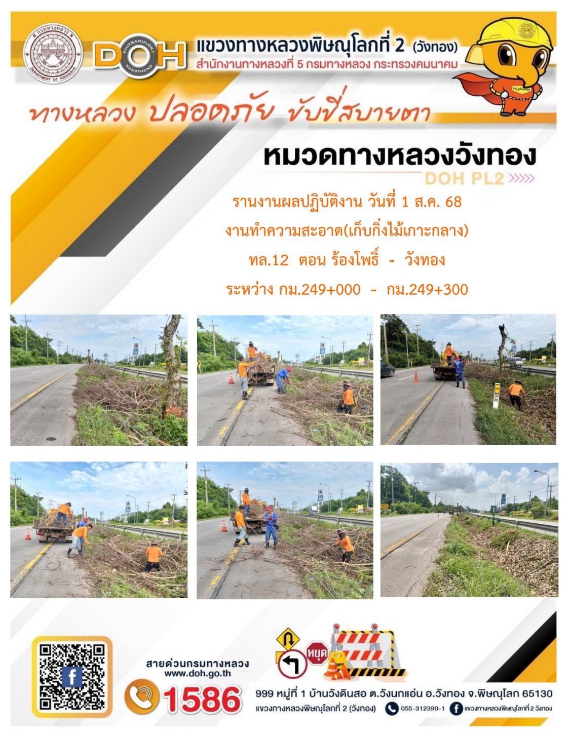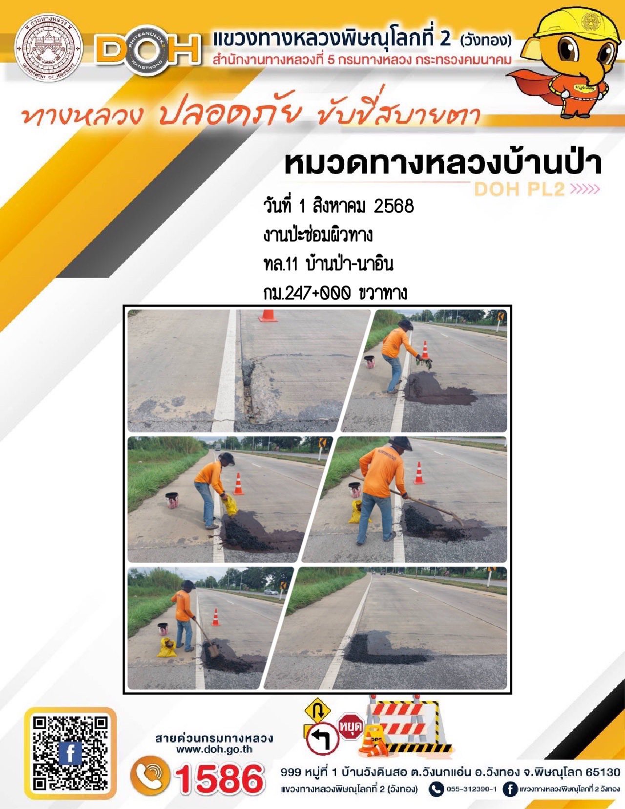 การปฏิบัติงานของ หมวดทางหลวง และ หน่วยงานในสังกัด เพื่ออำนวยความสะดวก และปลอดภัยให้กับประชาชนผู้ใช้เส้นทาง ประจำวันศุกร์ ที่ 1 สิงหาคม 2568