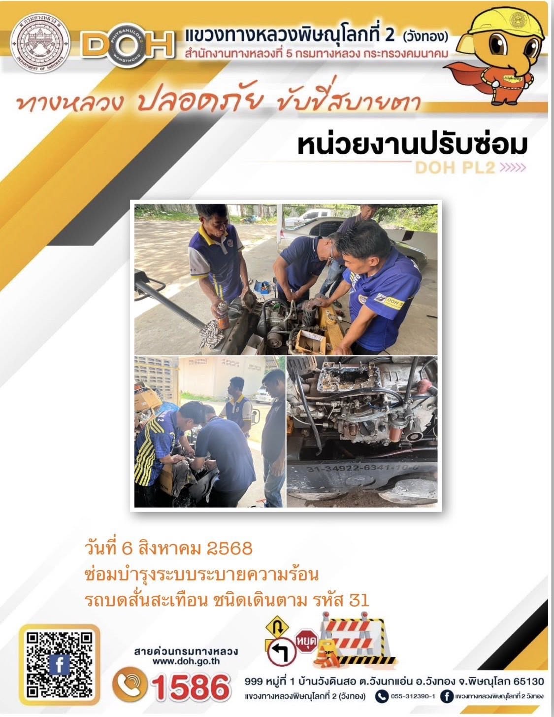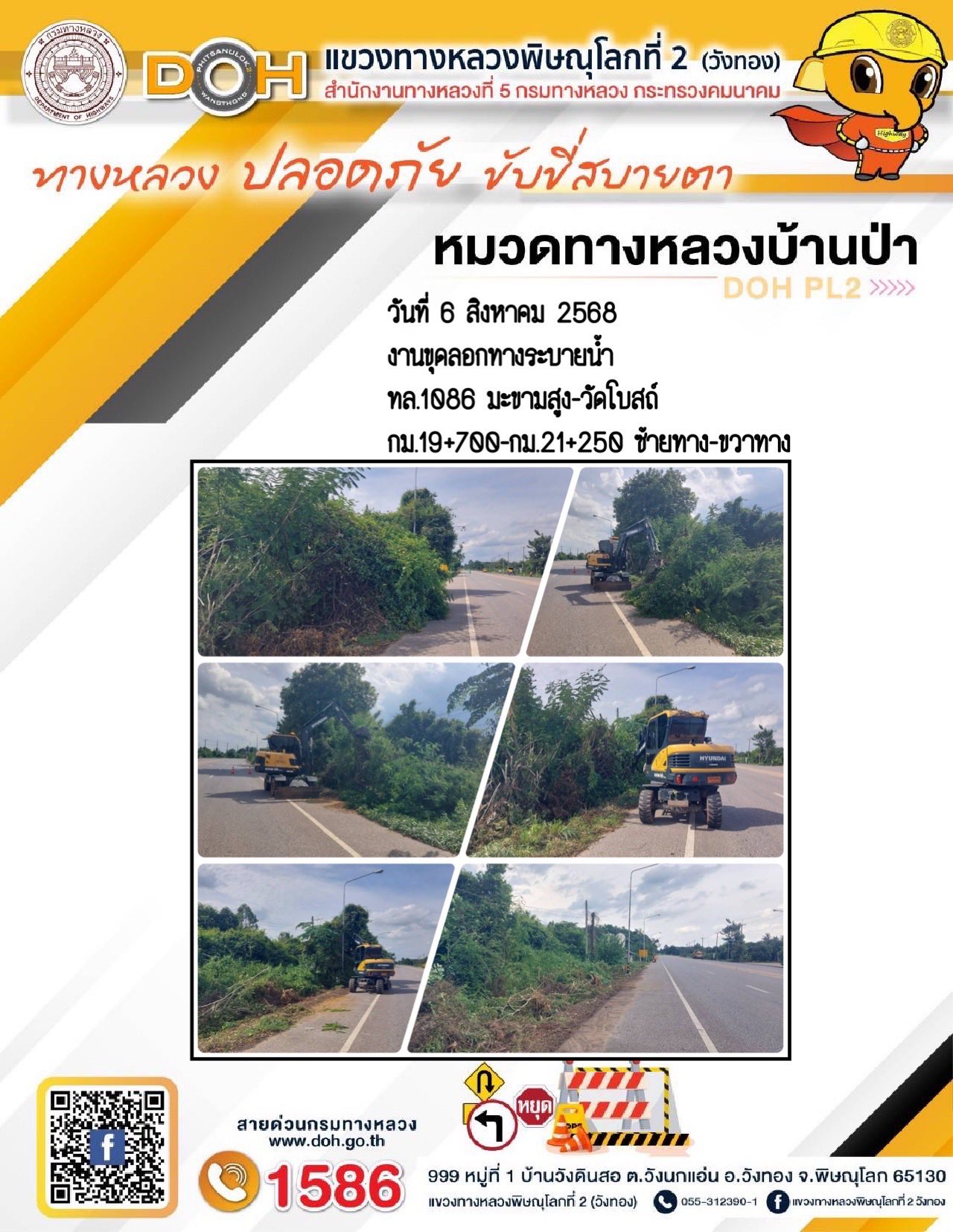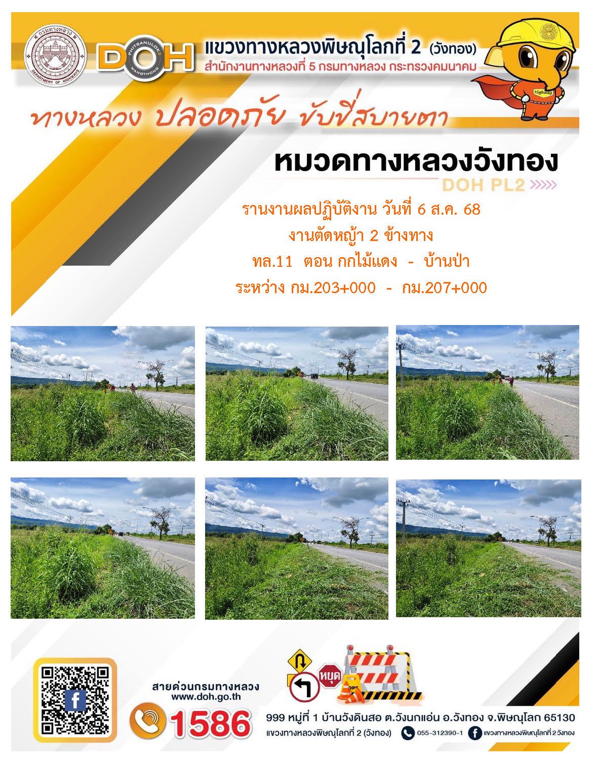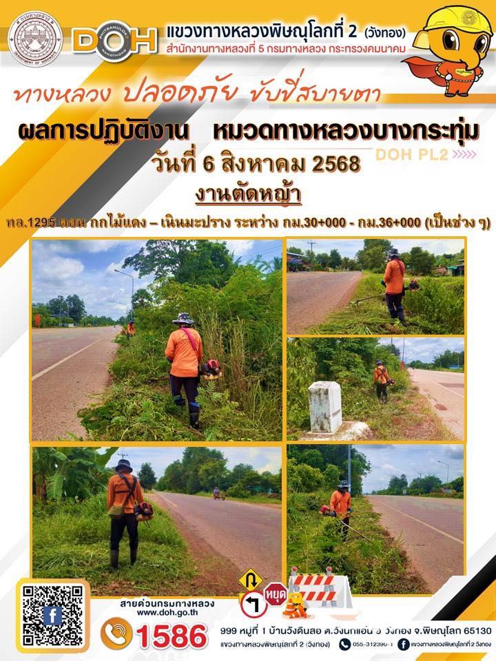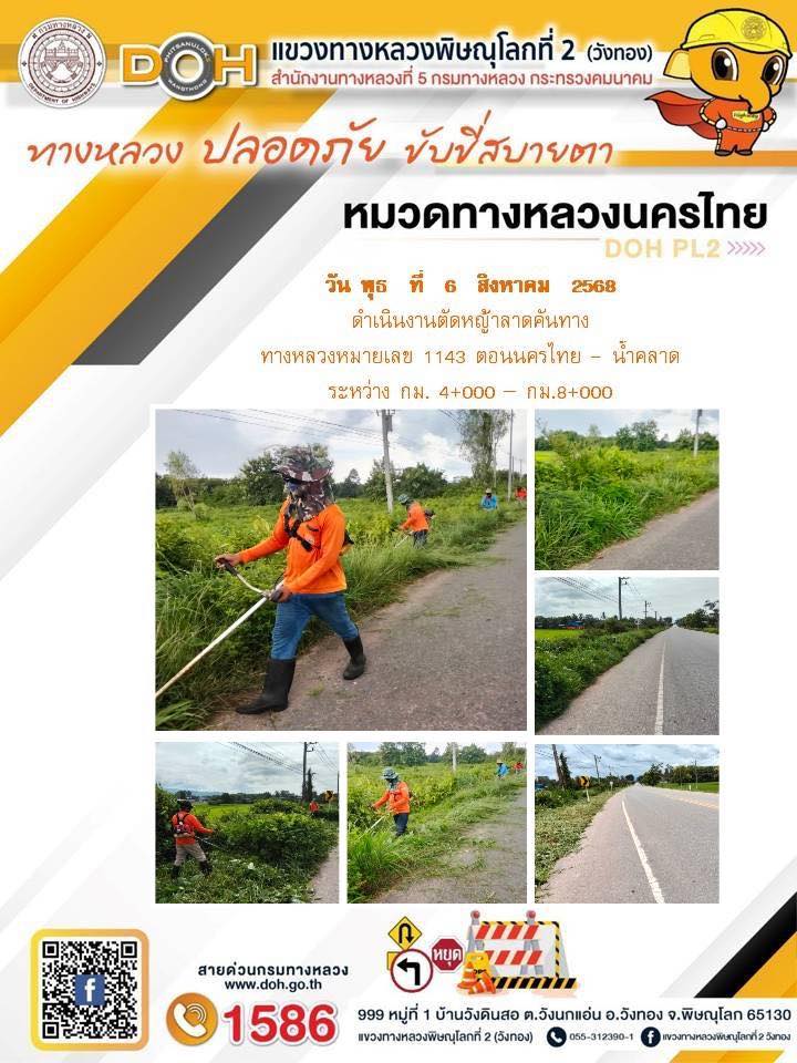 การปฏิบัติงานของ หมวดทางหลวง และ หน่วยงานในสังกัด เพื่ออำนวยความสะดวก และปลอดภัยให้กับประชาชนผู้ใช้เส้นทาง ประจำวันพุธ ที่ 6 สิงหาคม 2568