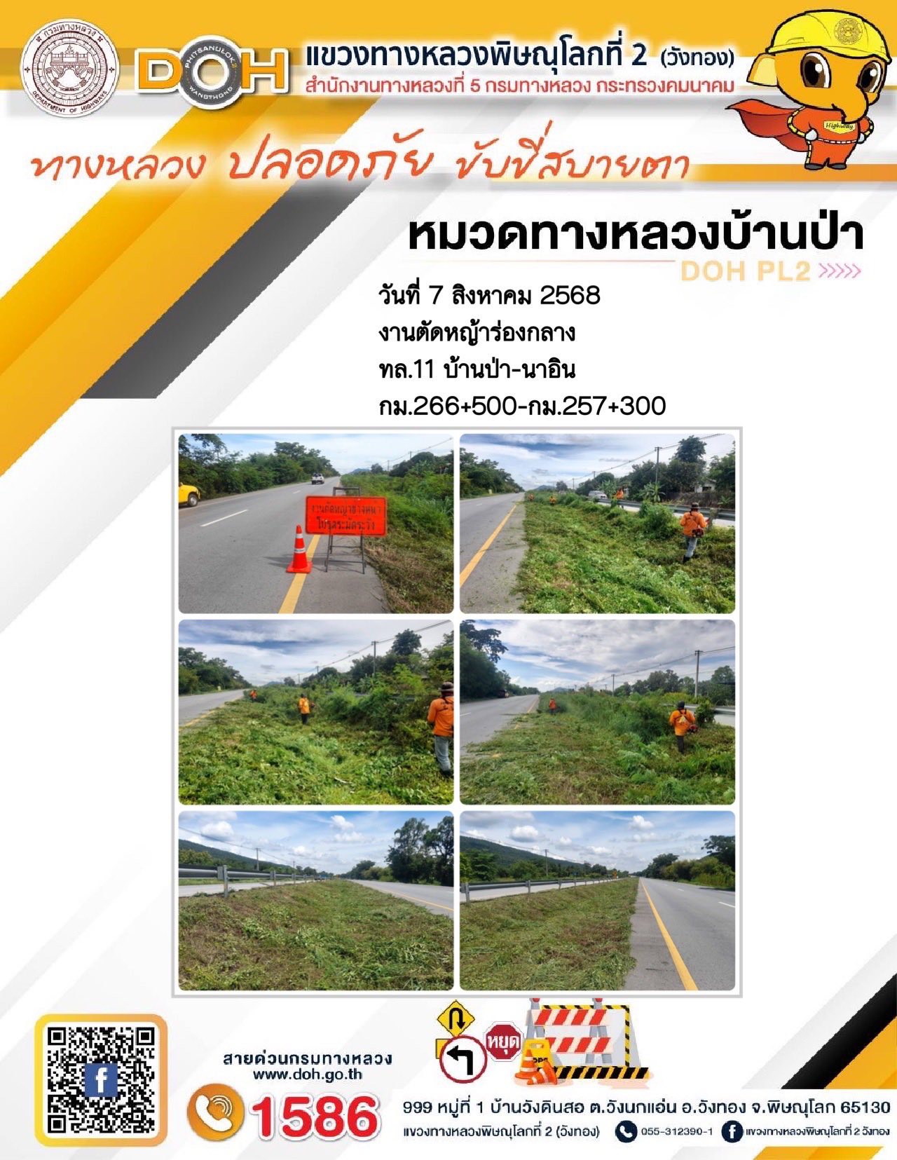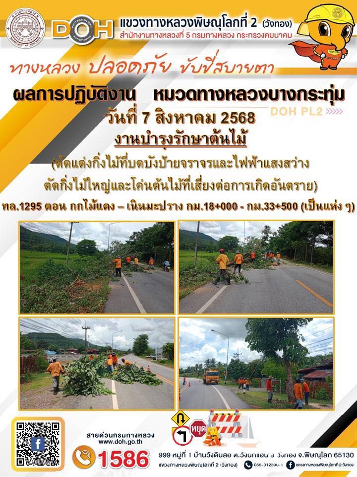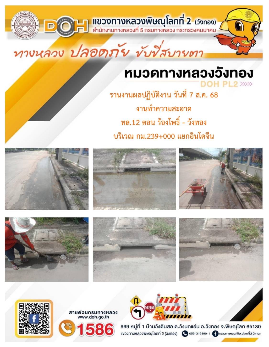 การปฏิบัติงานของ หมวดทางหลวง และ หน่วยงานในสังกัด เพื่ออำนวยความสะดวก และปลอดภัยให้กับประชาชนผู้ใช้เส้นทาง ประจำวันพฤหัสบดี ที่ 7 สิงหาคม 2568