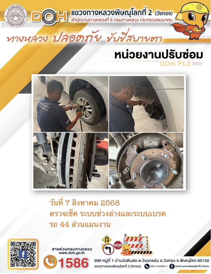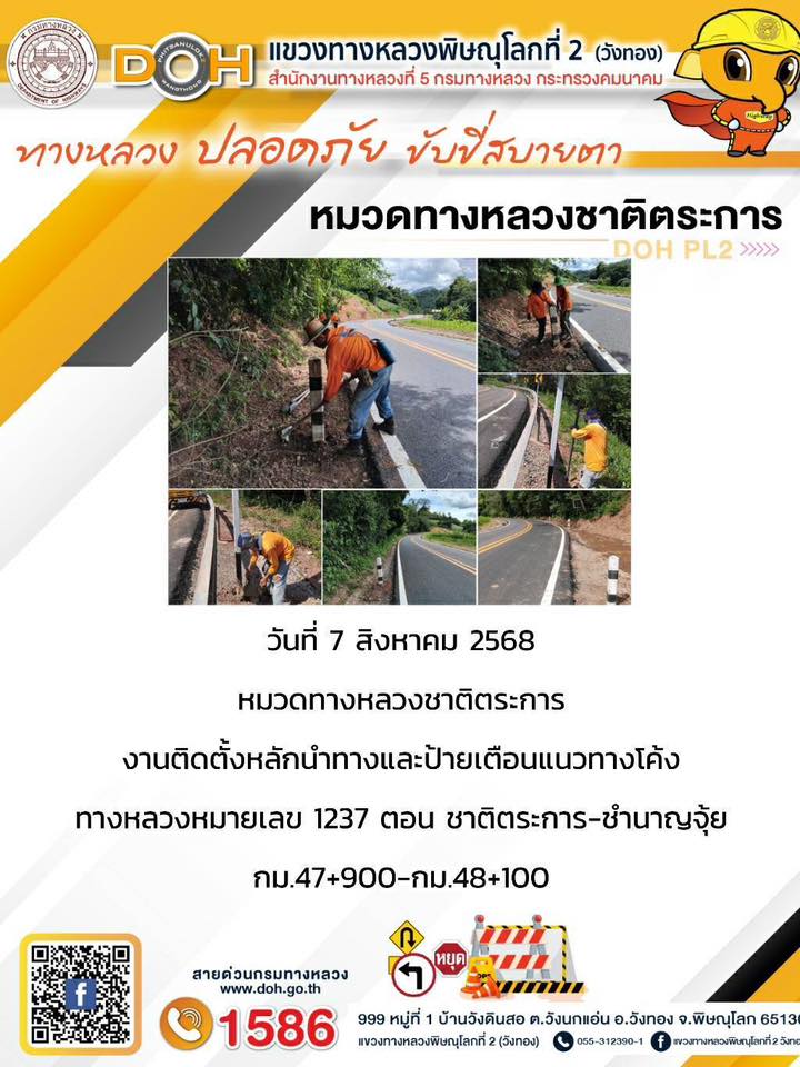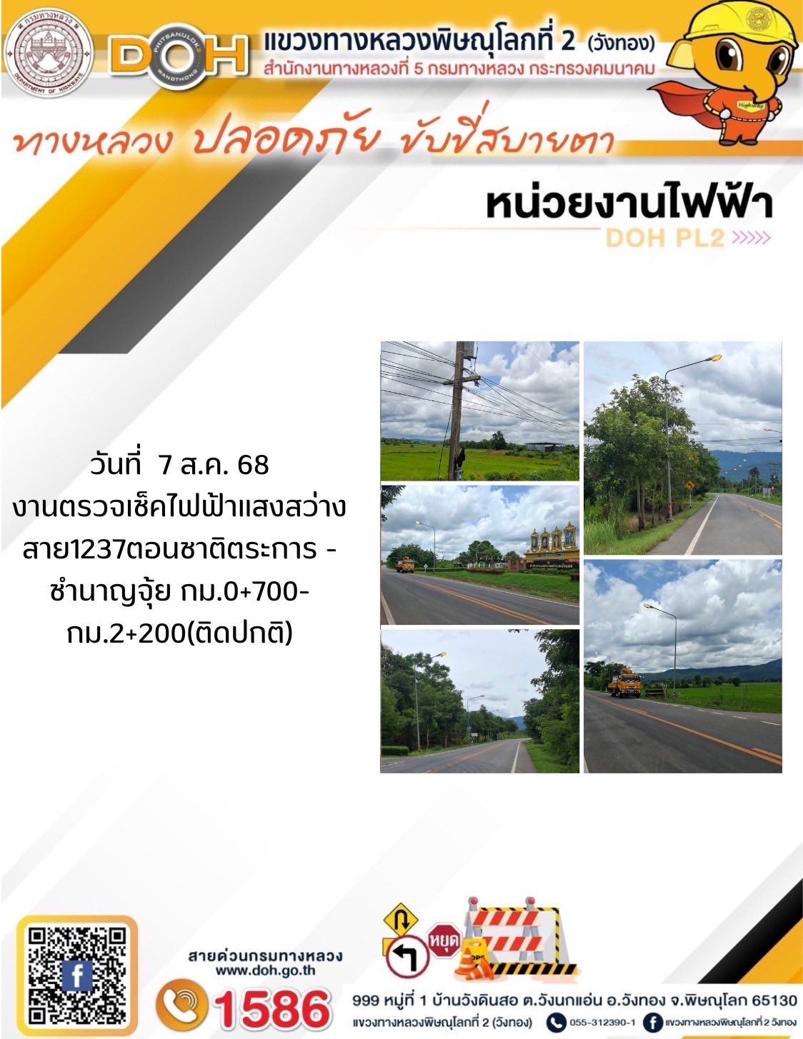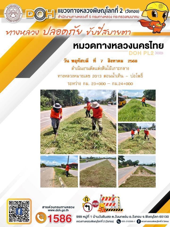 การปฏิบัติงานของ หมวดทางหลวง และ หน่วยงานในสังกัด เพื่ออำนวยความสะดวก และปลอดภัยให้กับประชาชนผู้ใช้เส้นทาง ประจำวันพฤหัสบดี ที่ 7 สิงหาคม 2568