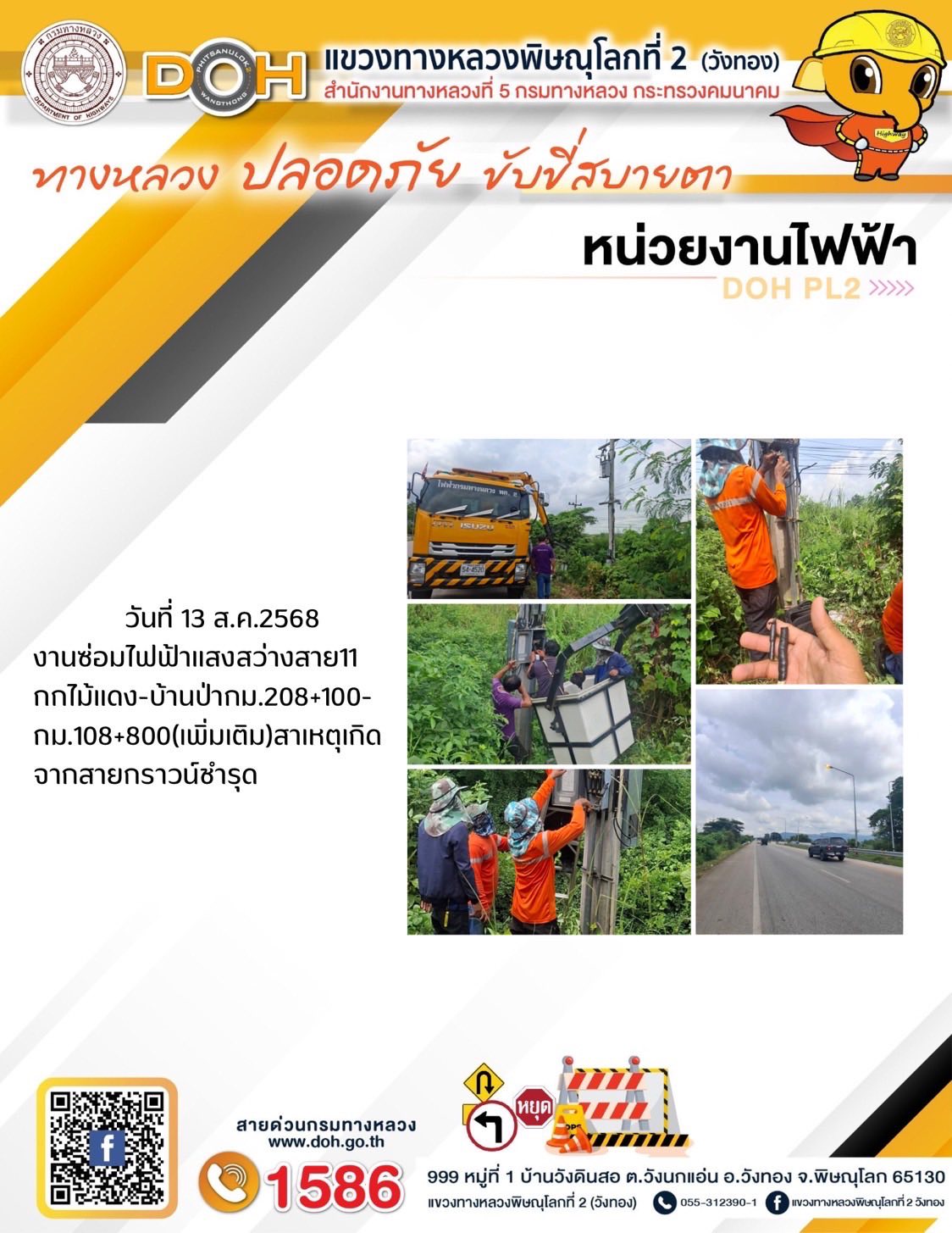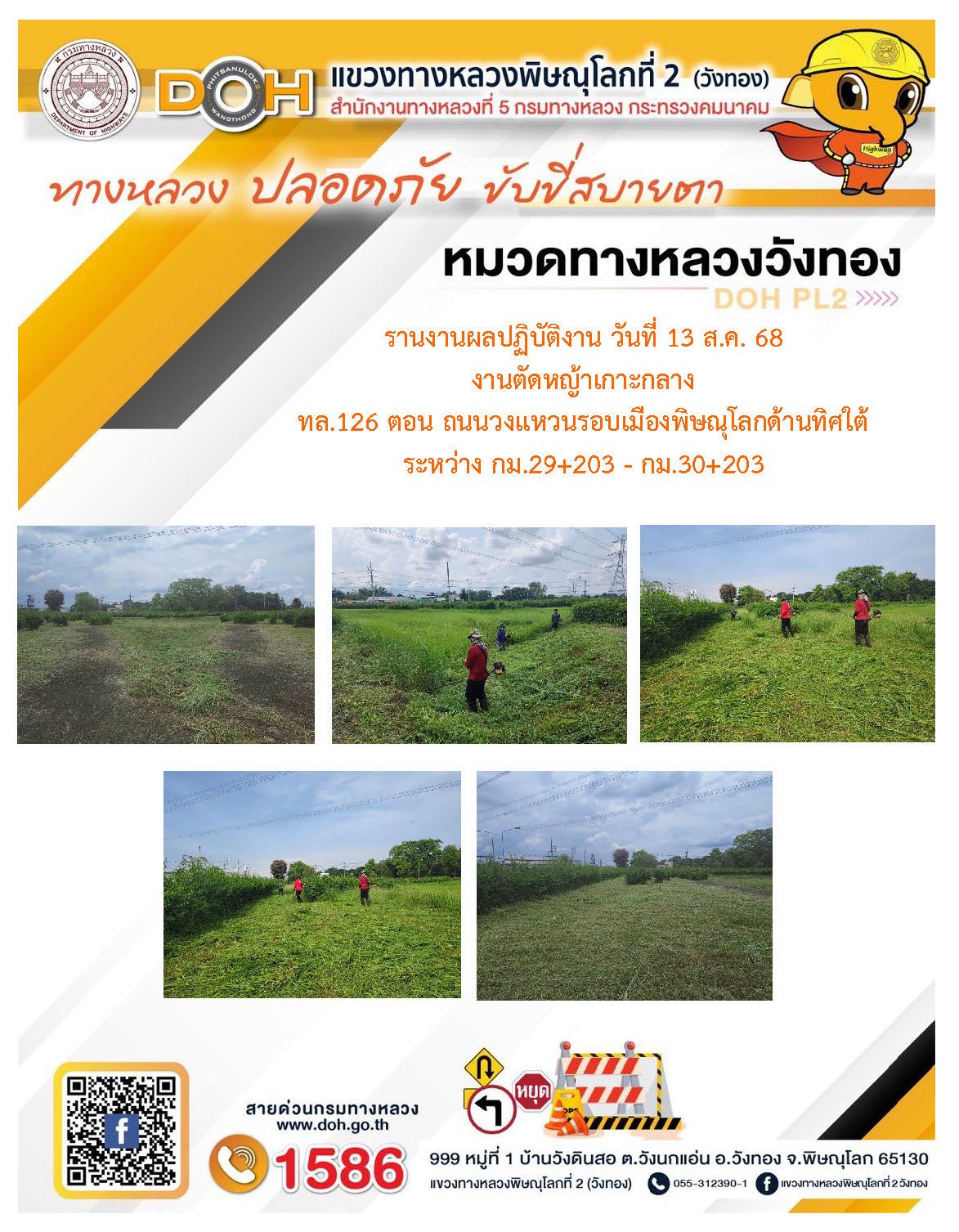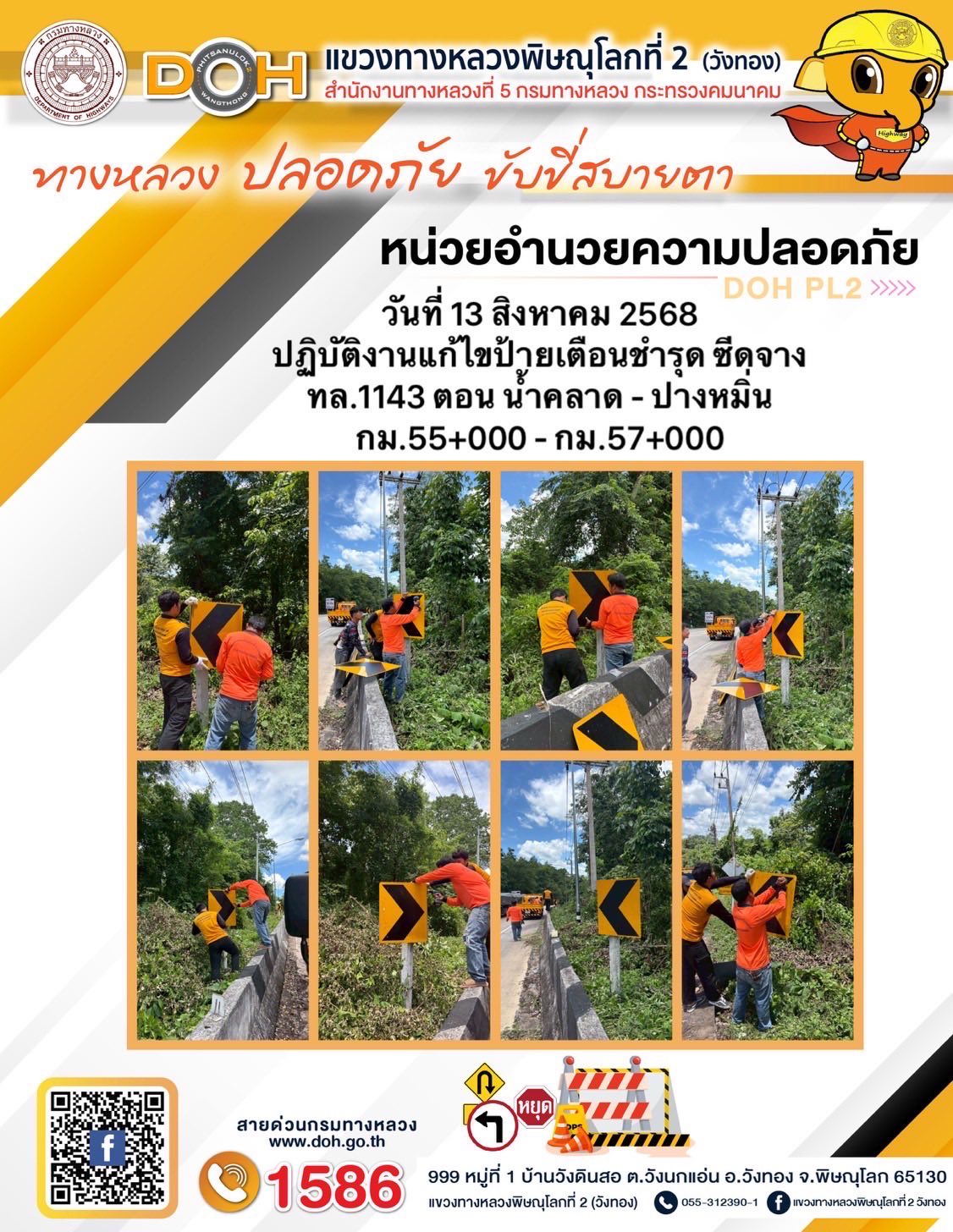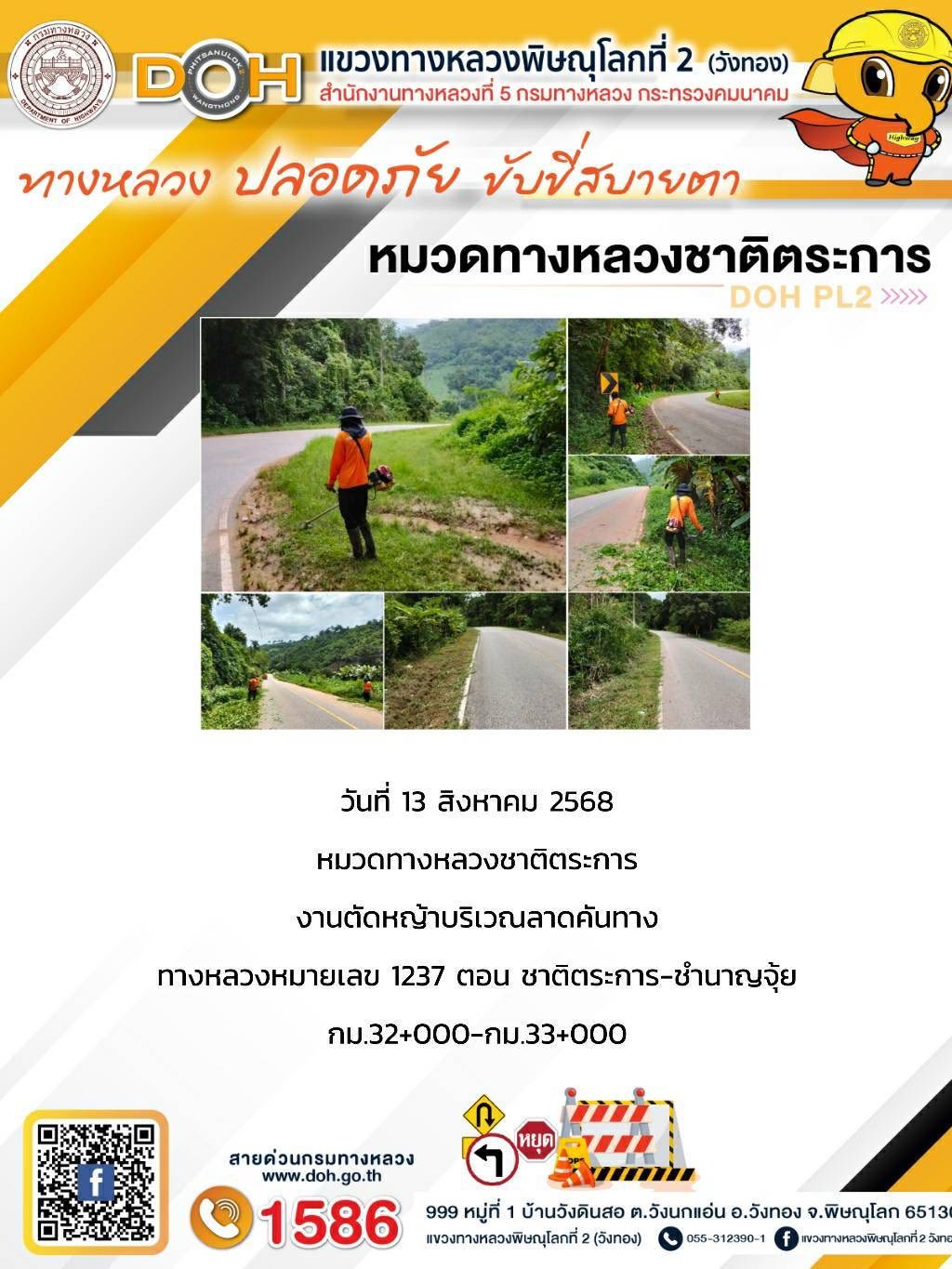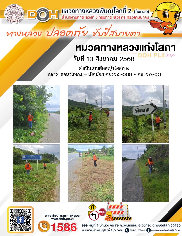 การปฏิบัติงานของ หมวดทางหลวง และ หน่วยงานในสังกัด เพื่ออำนวยความสะดวก และปลอดภัยให้กับประชาชนผู้ใช้เส้นทาง ประจำวันพุธ ที่ 13 สิงหาคม 2568