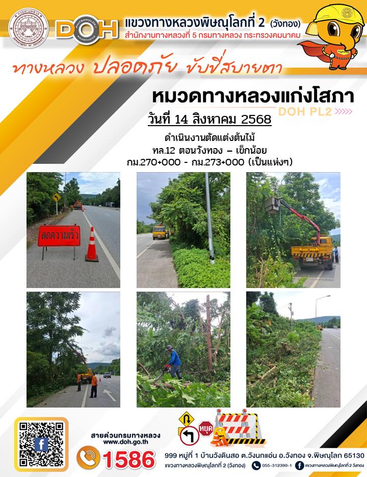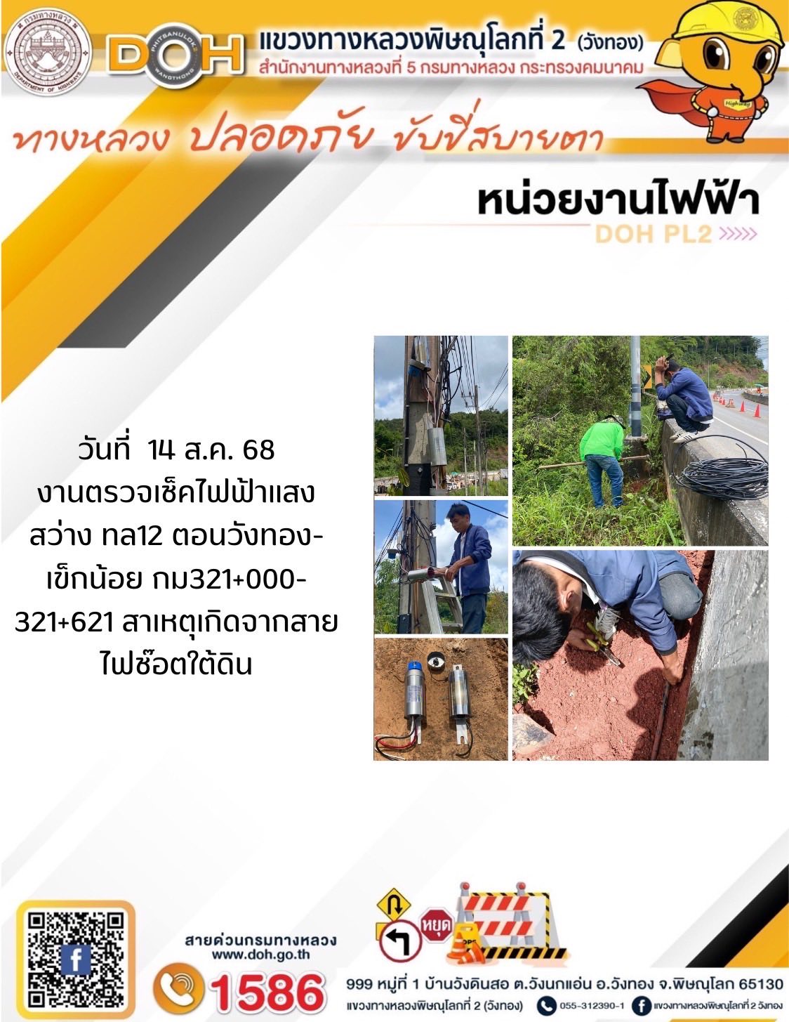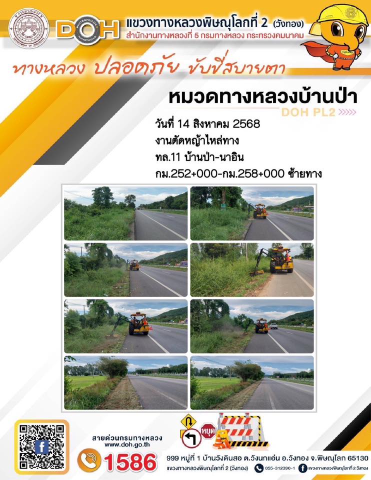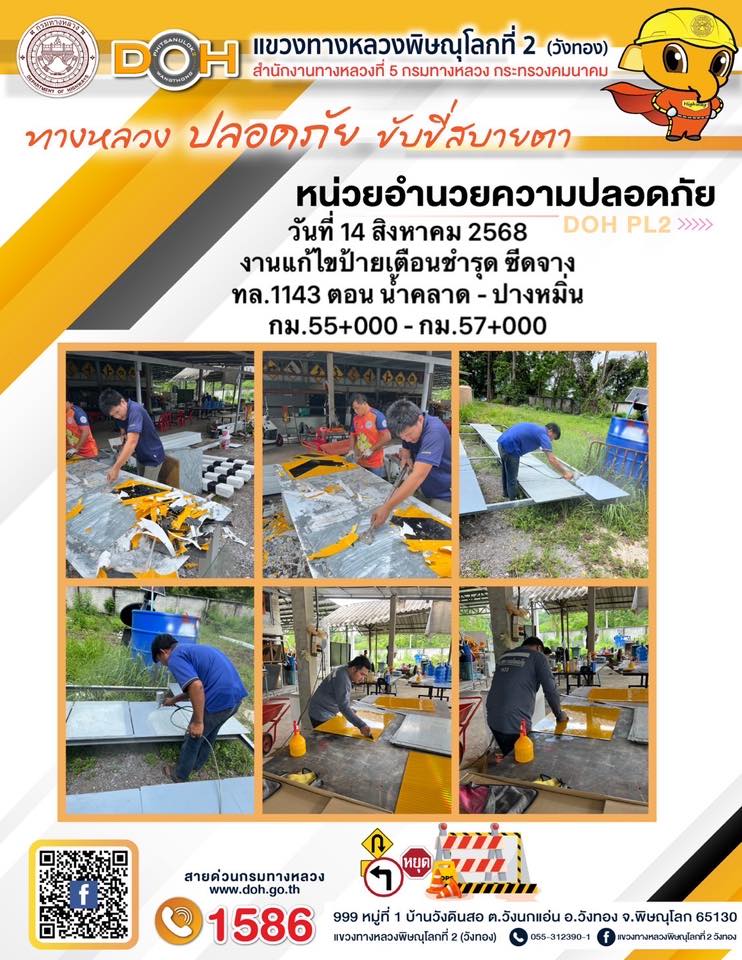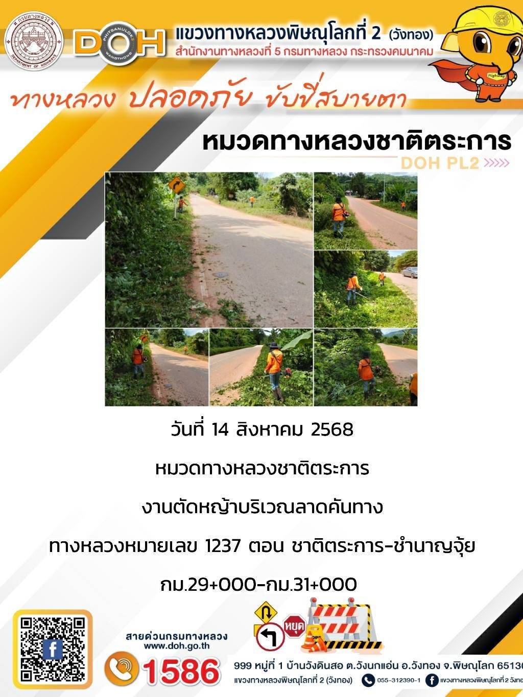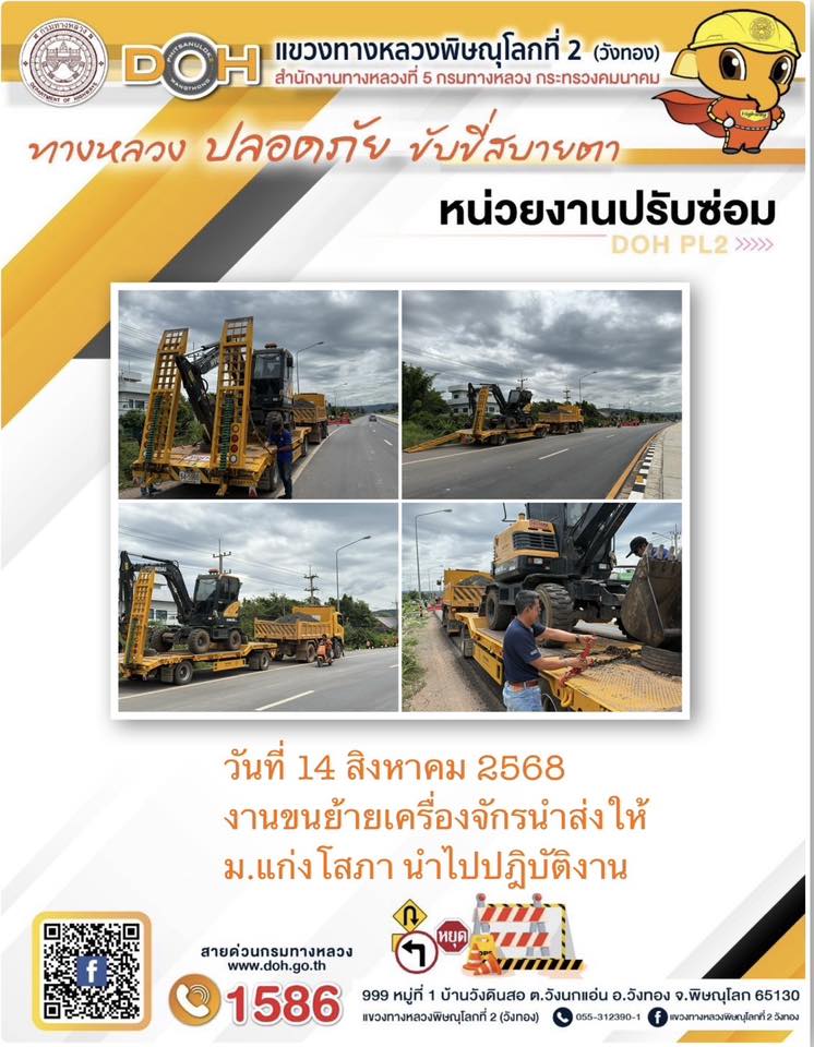 การปฏิบัติงานของ หมวดทางหลวง และ หน่วยงานในสังกัด เพื่ออำนวยความสะดวก และปลอดภัยให้กับประชาชนผู้ใช้เส้นทาง ประจำวันพฤหัสบดี ที่ 14 สิงหาคม 2568