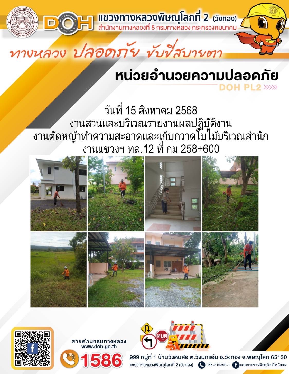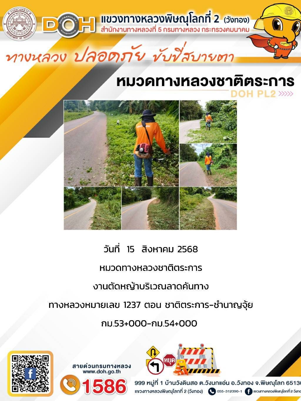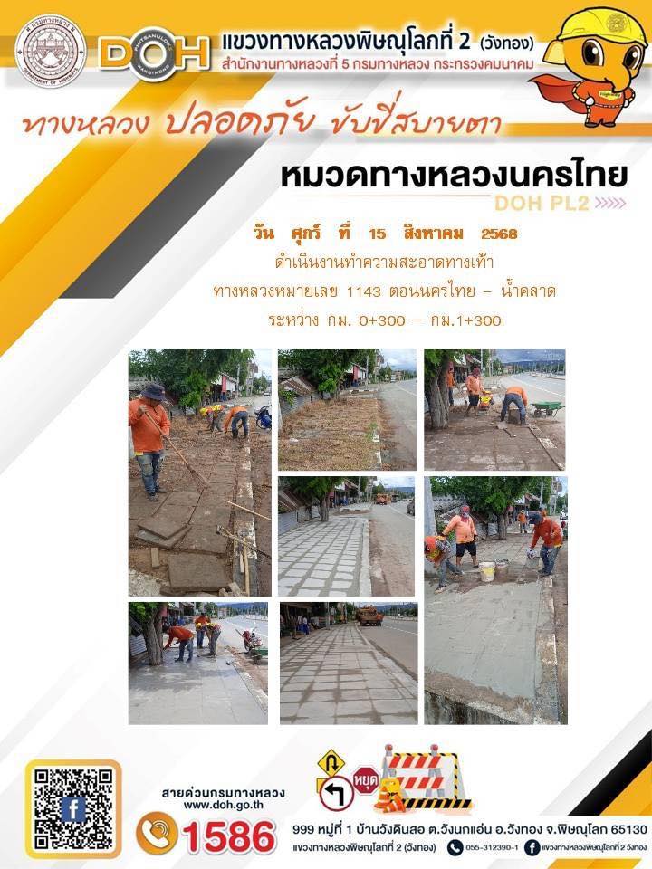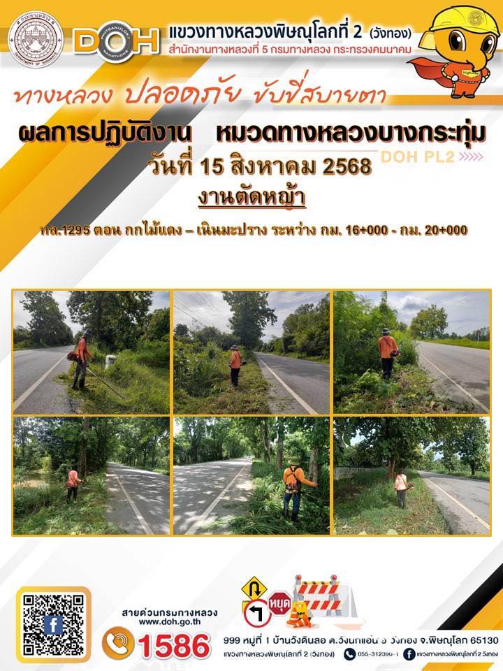 การปฏิบัติงานของ หมวดทางหลวง และ หน่วยงานในสังกัด เพื่ออำนวยความสะดวก และปลอดภัยให้กับประชาชนผู้ใช้เส้นทาง ประจำวันศุกร์ ที่ 15 สิงหาคม 2568