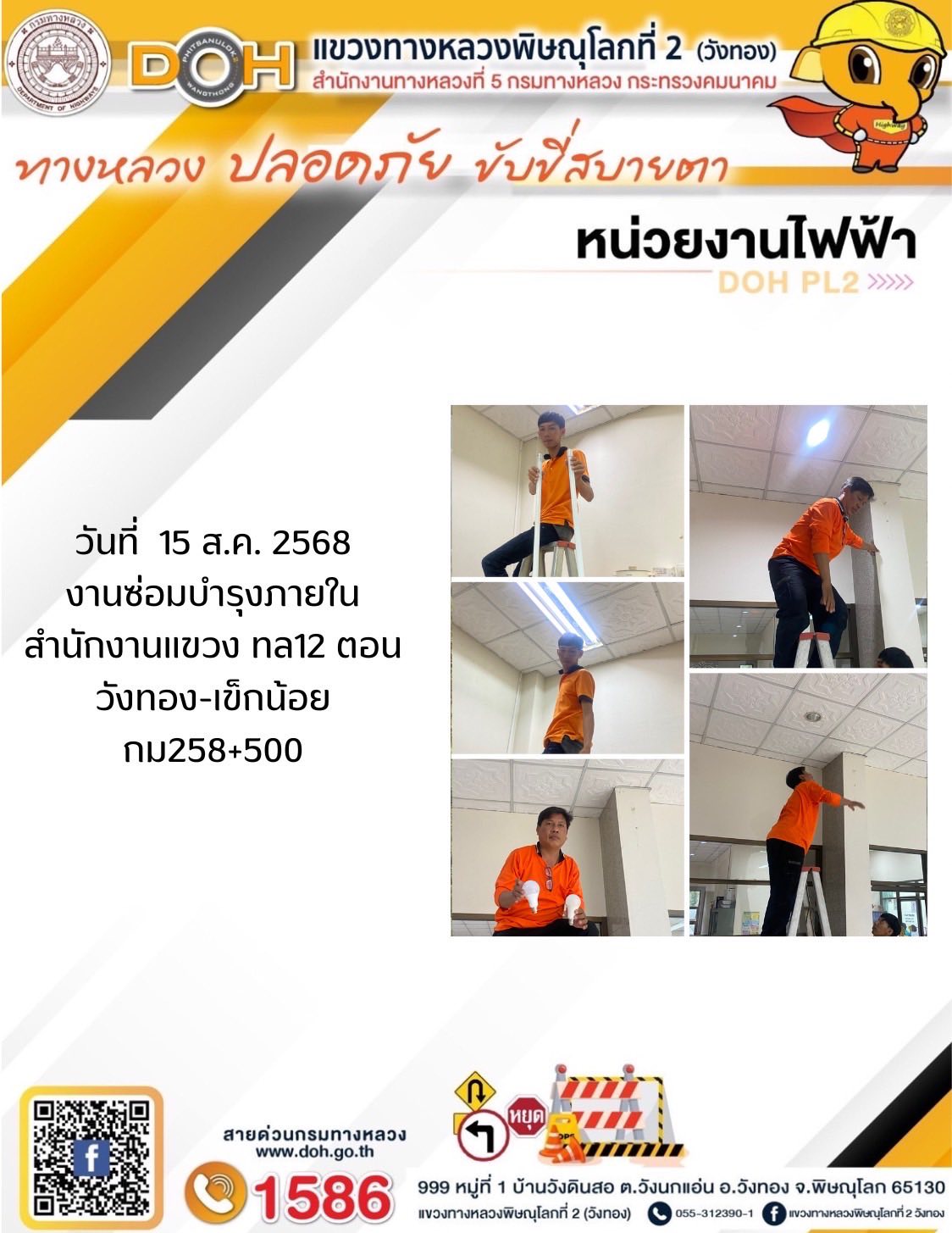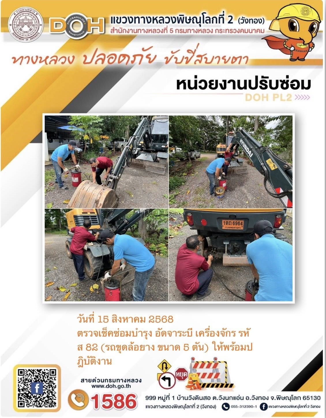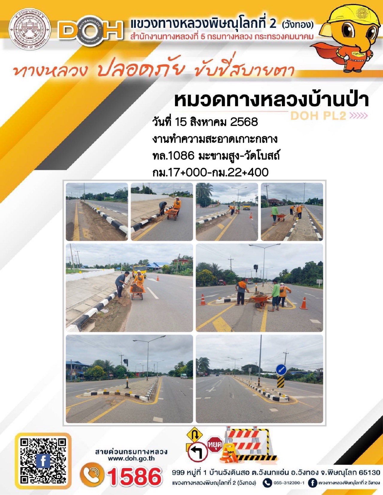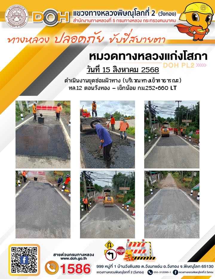 การปฏิบัติงานของ หมวดทางหลวง และ หน่วยงานในสังกัด เพื่ออำนวยความสะดวก และปลอดภัยให้กับประชาชนผู้ใช้เส้นทาง ประจำวันศุกร์ ที่ 15 สิงหาคม 2568