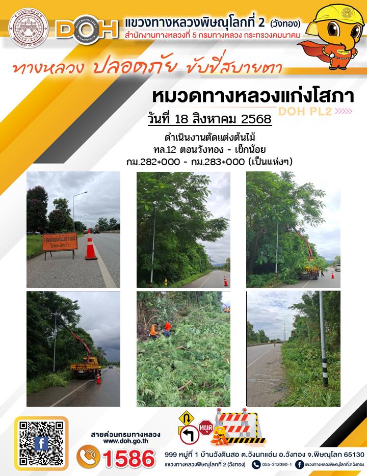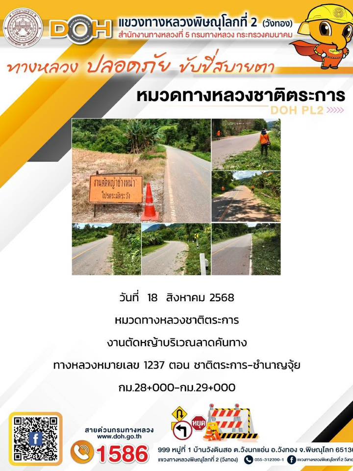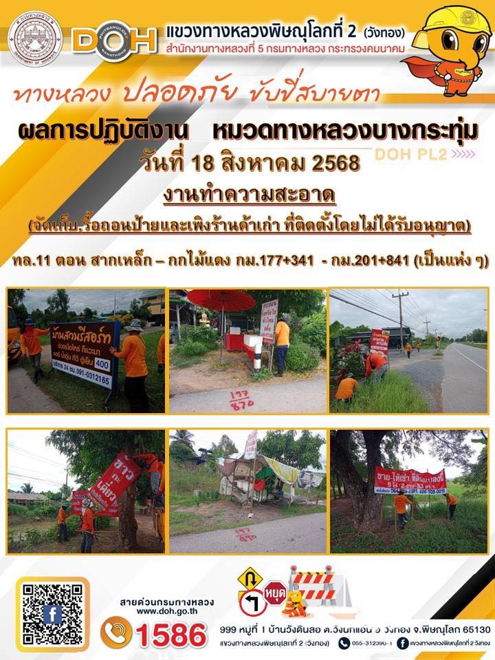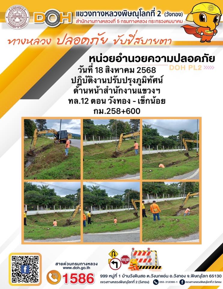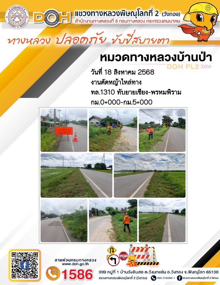 การปฏิบัติงานของ หมวดทางหลวง และ หน่วยงานในสังกัด เพื่ออำนวยความสะดวก และปลอดภัยให้กับประชาชนผู้ใช้เส้นทาง ประจำวันจันทร์ ที่ 18 สิงหาคม 2568