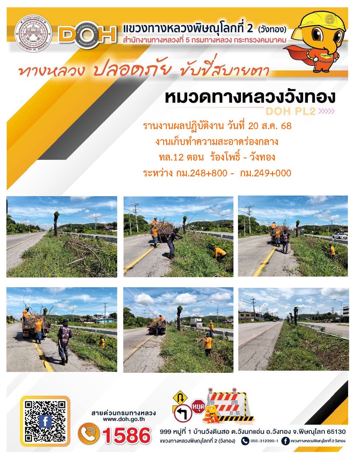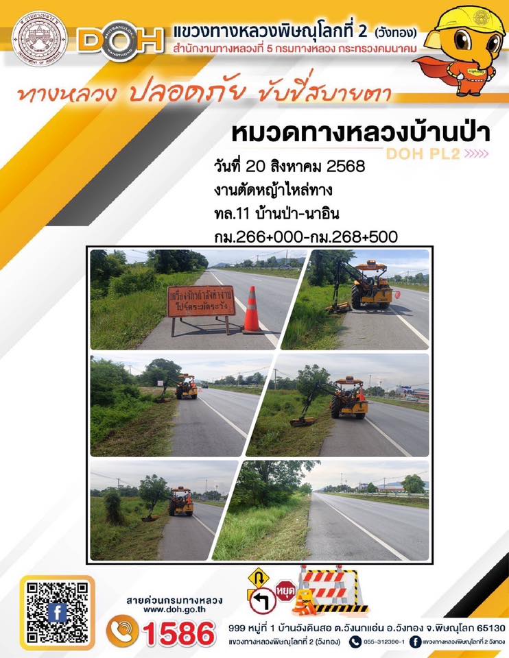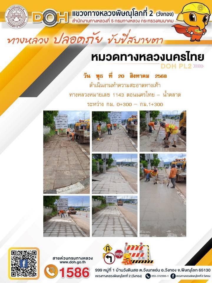 การปฏิบัติงานของ หมวดทางหลวง และ หน่วยงานในสังกัด เพื่ออำนวยความสะดวก และปลอดภัยให้กับประชาชนผู้ใช้เส้นทาง ประจำวันพุธ ที่ 20 สิงหาคม 2568