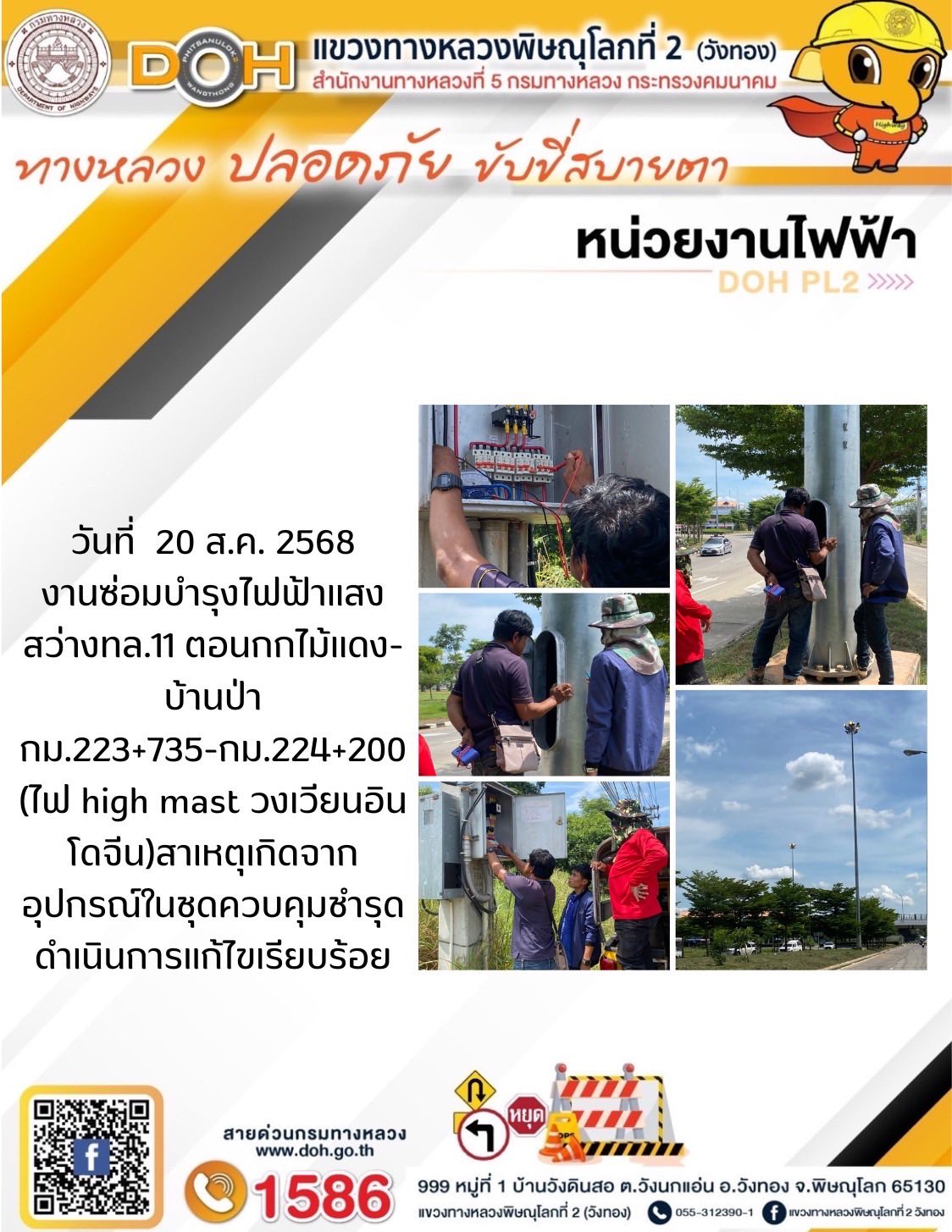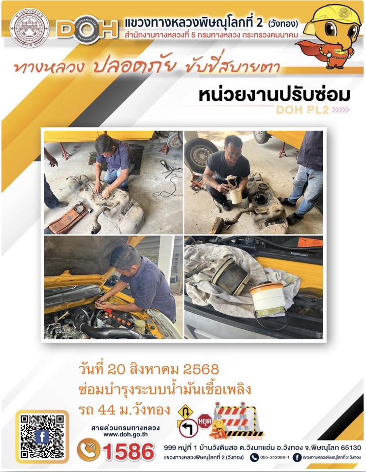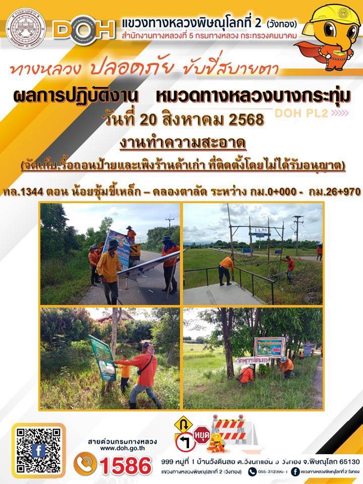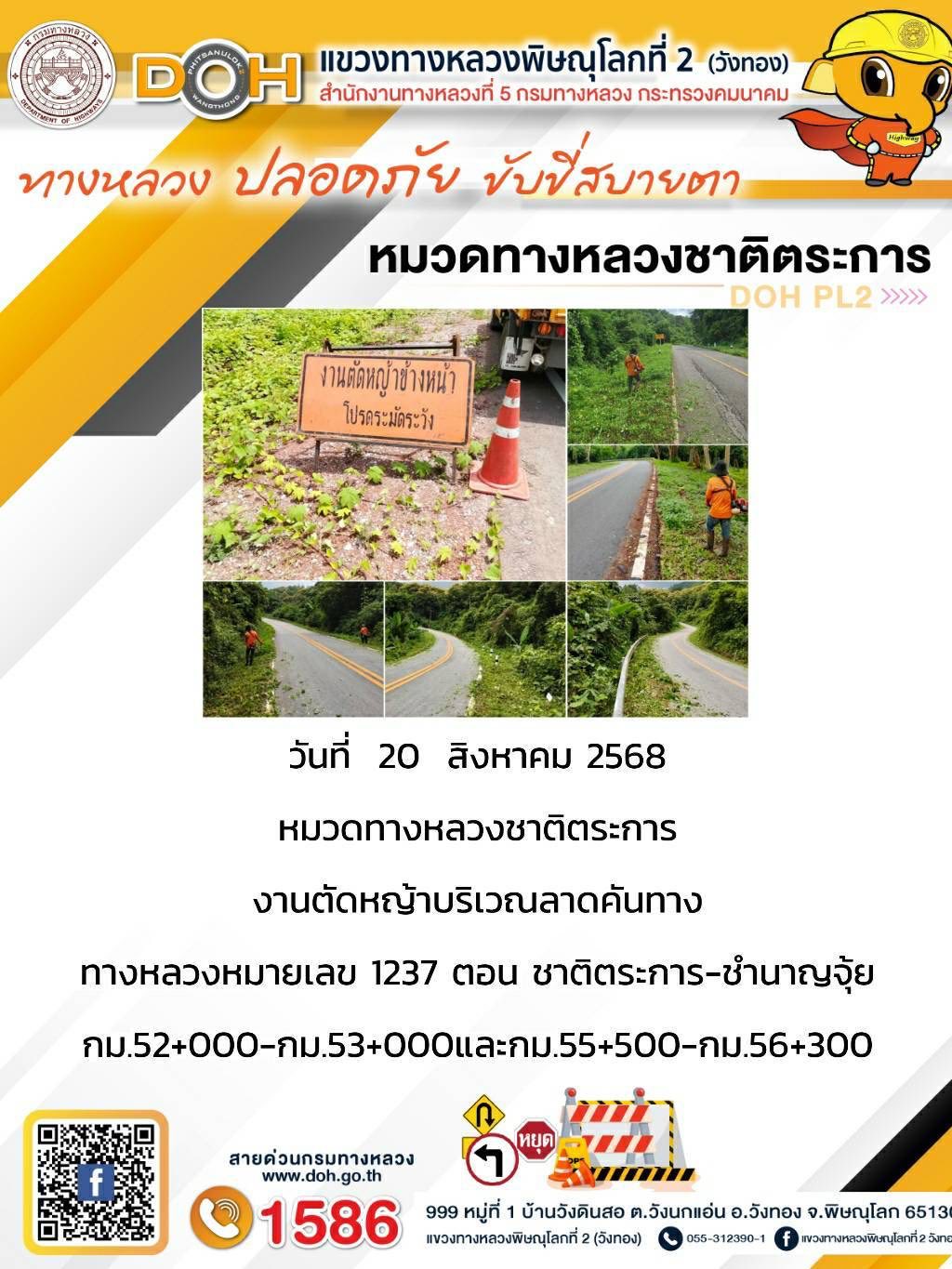การปฏิบัติงานของ หมวดทางหลวง และ หน่วยงานในสังกัด เพื่ออำนวยความสะดวก และปลอดภัยให้กับประชาชนผู้ใช้เส้นทาง ประจำวันพุธ ที่ 20 สิงหาคม 2568