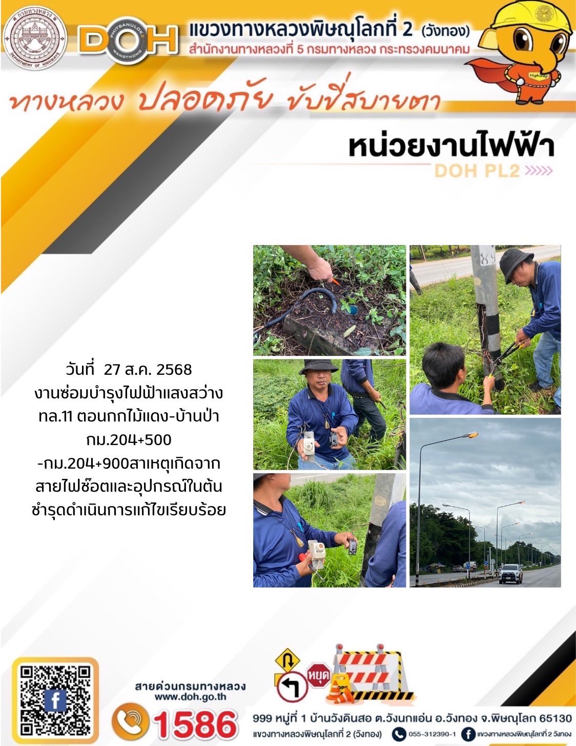 การปฏิบัติงานของ หมวดทางหลวง และ หน่วยงานในสังกัด เพื่ออำนวยความสะดวก และปลอดภัยให้กับประชาชนผู้ใช้เส้นทาง ประจำวันพุธ ที่ 27 สิงหาคม 2568