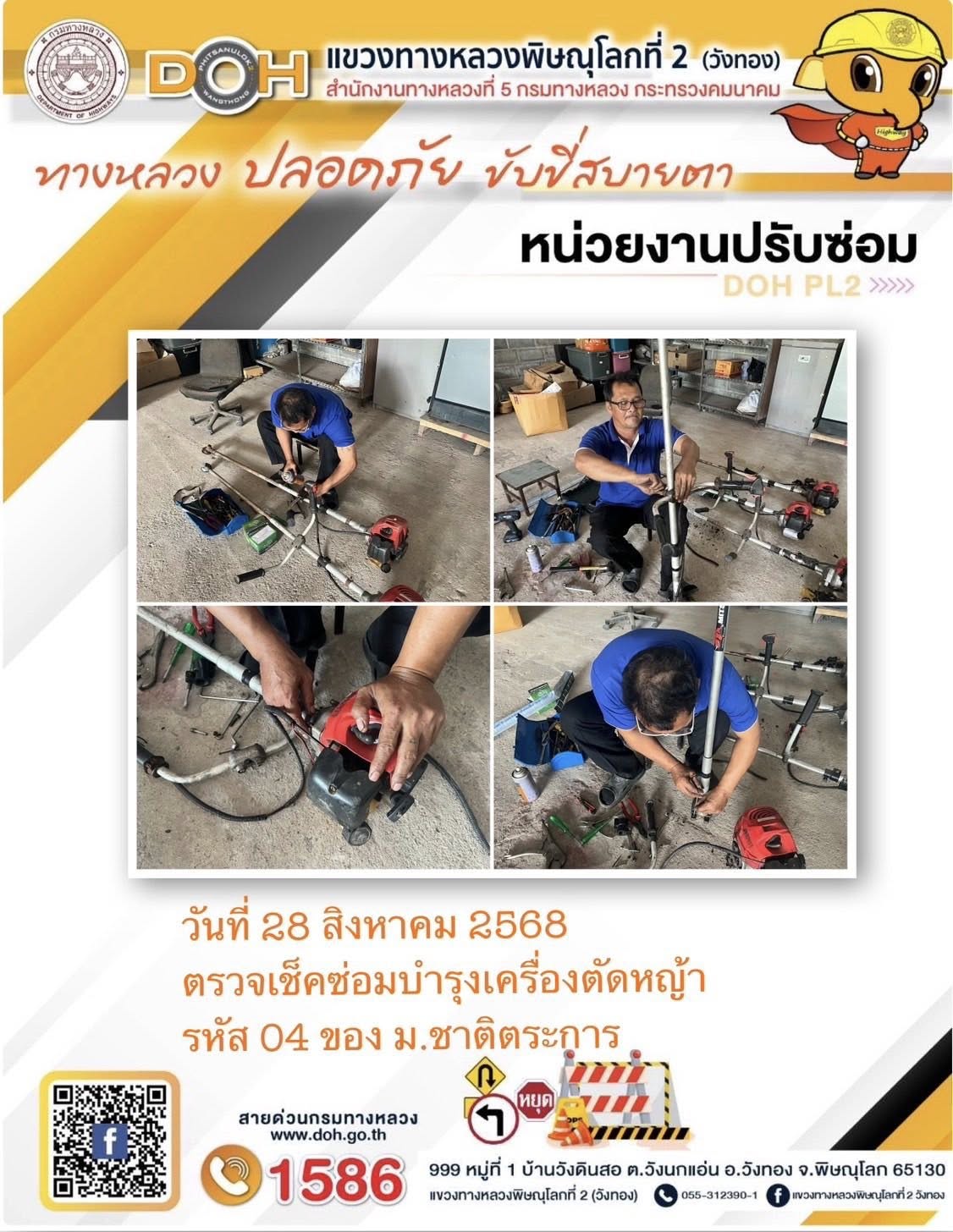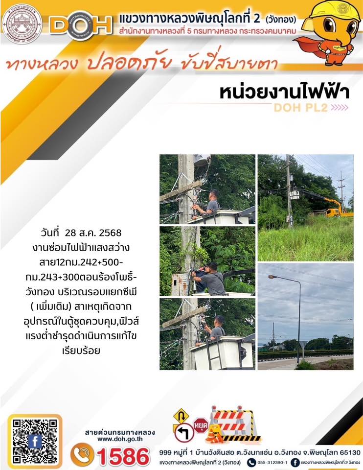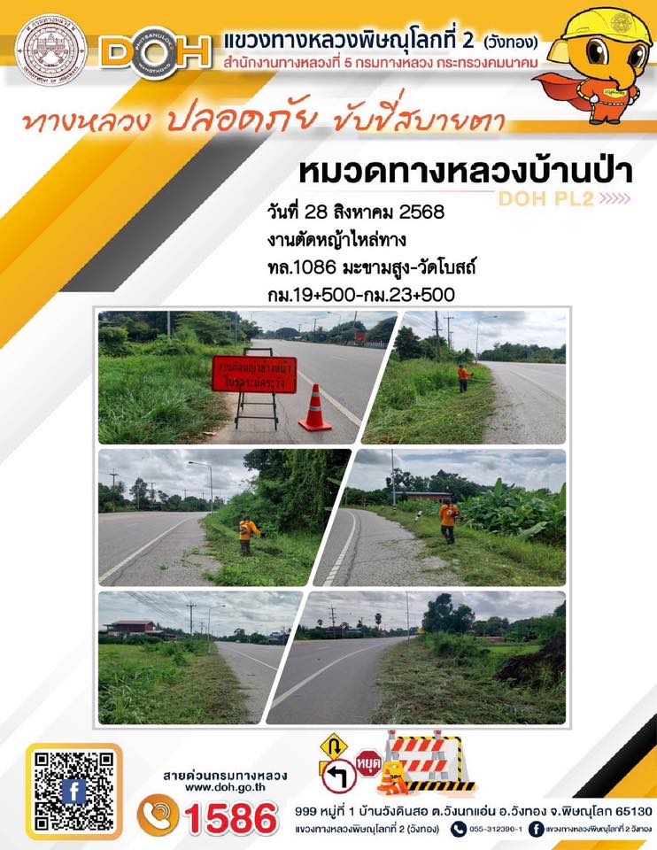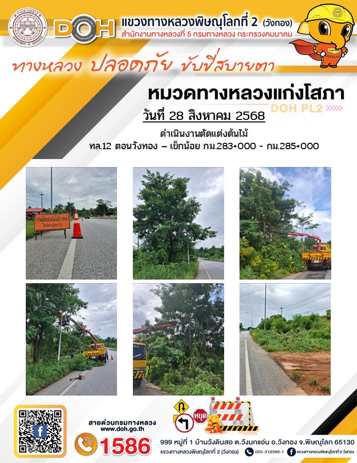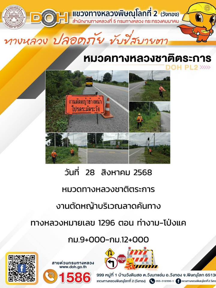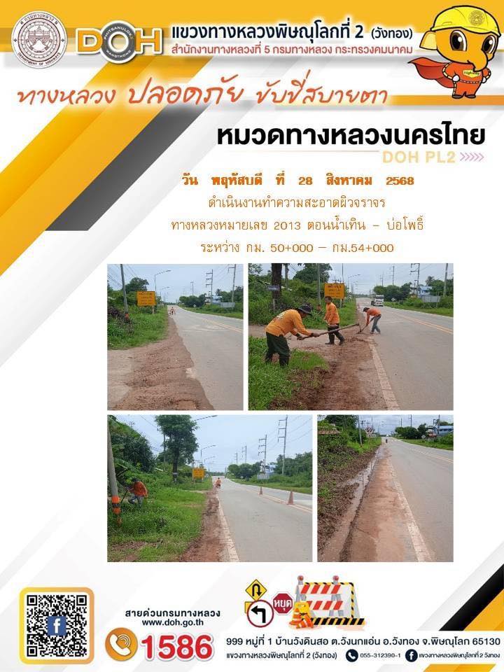การปฏิบัติงานของ หมวดทางหลวง และ หน่วยงานในสังกัด เพื่ออำนวยความสะดวก และปลอดภัยให้กับประชาชนผู้ใช้เส้นทาง ประจำวันพฤหัสบดี ที่ 28 สิงหาคม 2568