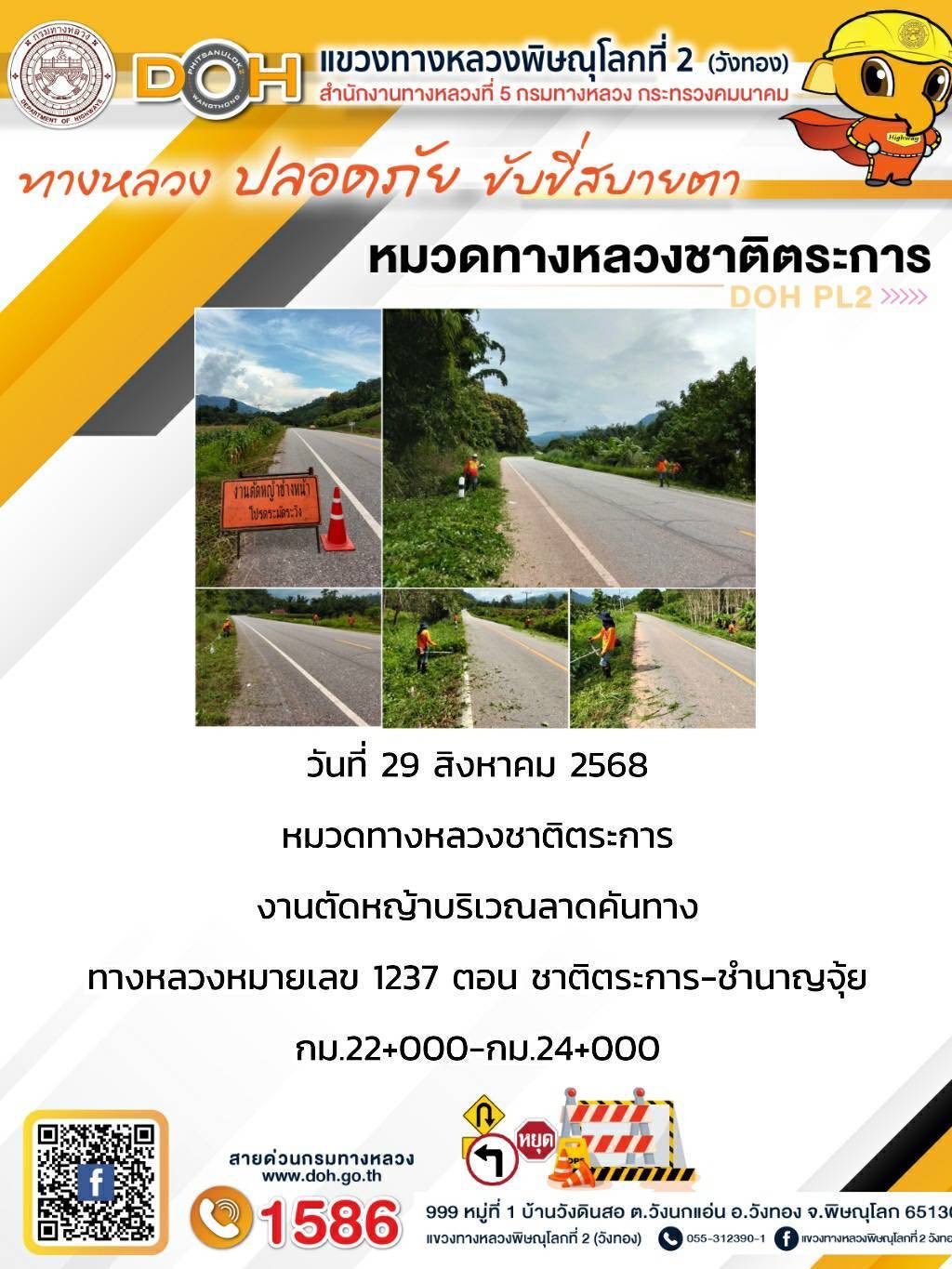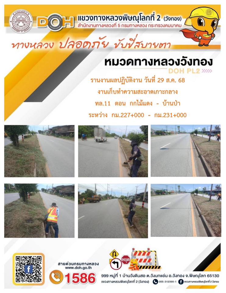 การปฏิบัติงานของ หมวดทางหลวง และ หน่วยงานในสังกัด เพื่ออำนวยความสะดวก และปลอดภัยให้กับประชาชนผู้ใช้เส้นทาง ประจำวันศุกร์ ที่ 29 สิงหาคม 2568