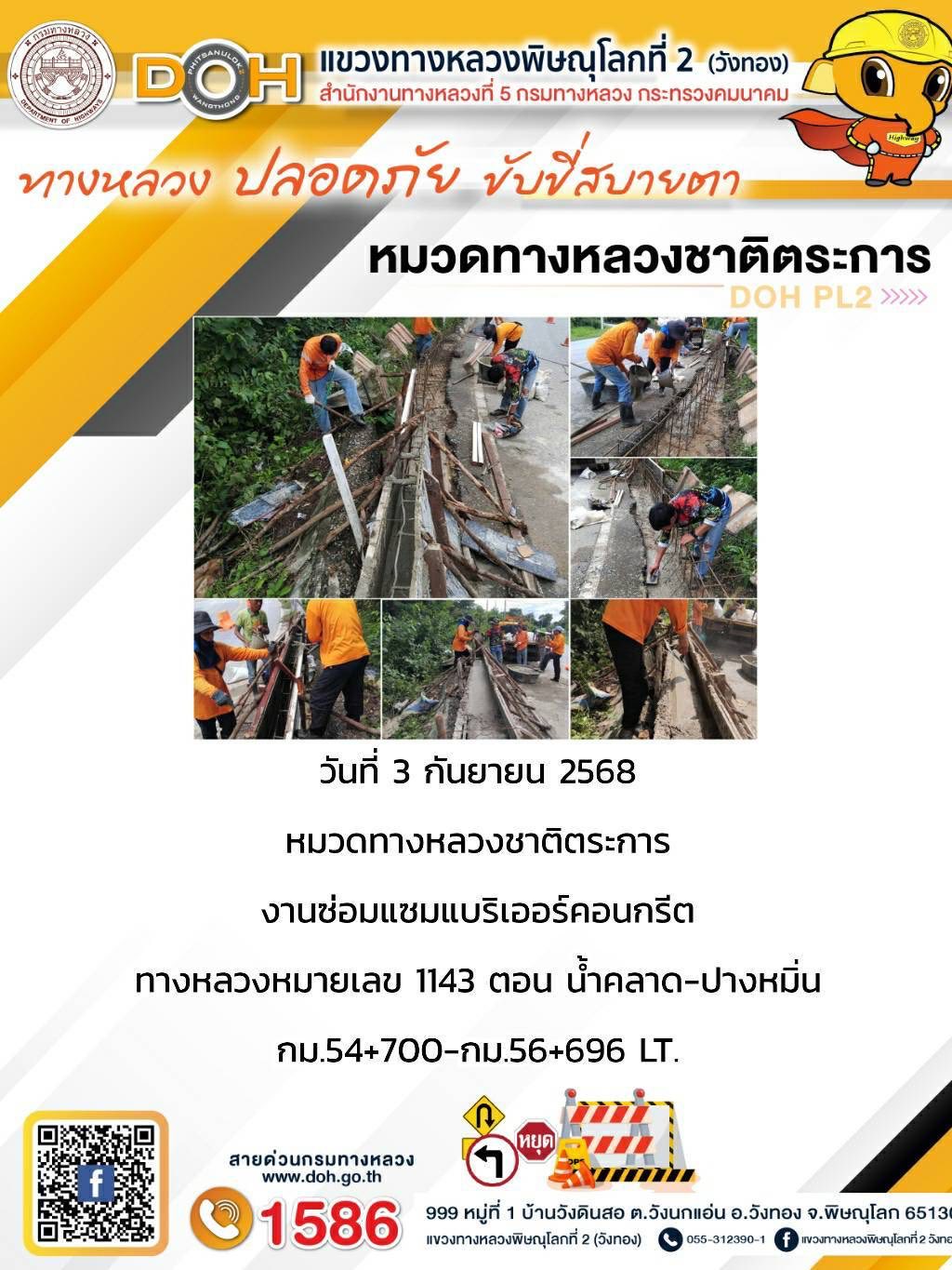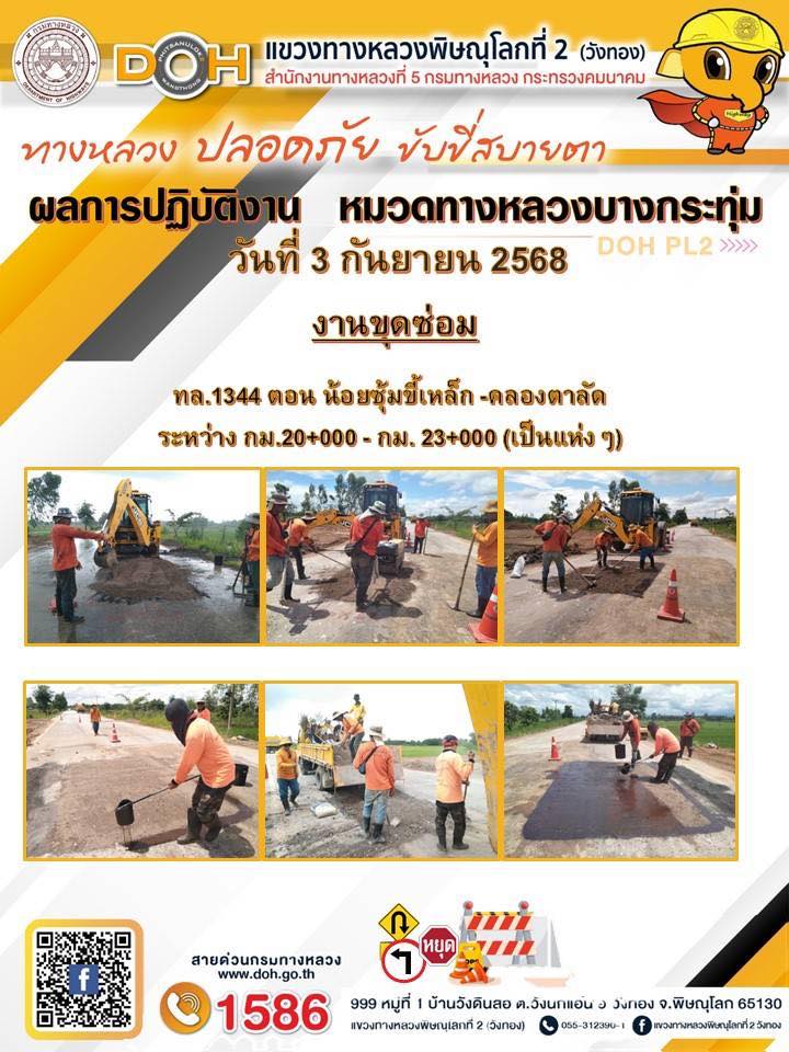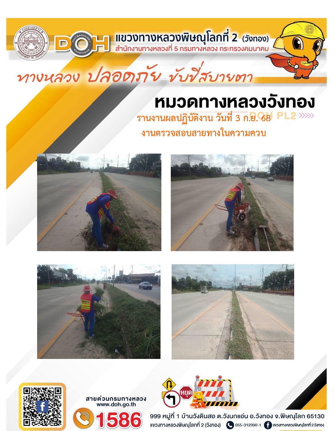 การปฏิบัติงานของ หมวดทางหลวง และ หน่วยงานในสังกัด เพื่ออำนวยความสะดวก และปลอดภัยให้กับประชาชนผู้ใช้เส้นทาง ประจำวันพุธ ที่ 3 กันยายน 2568