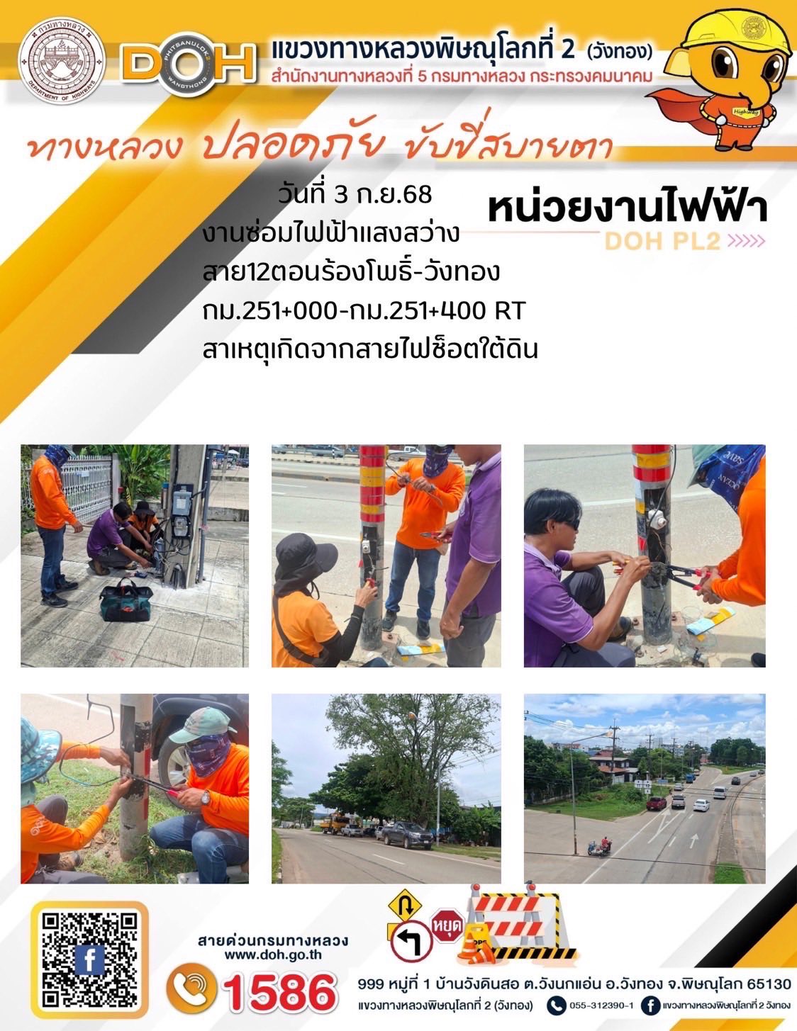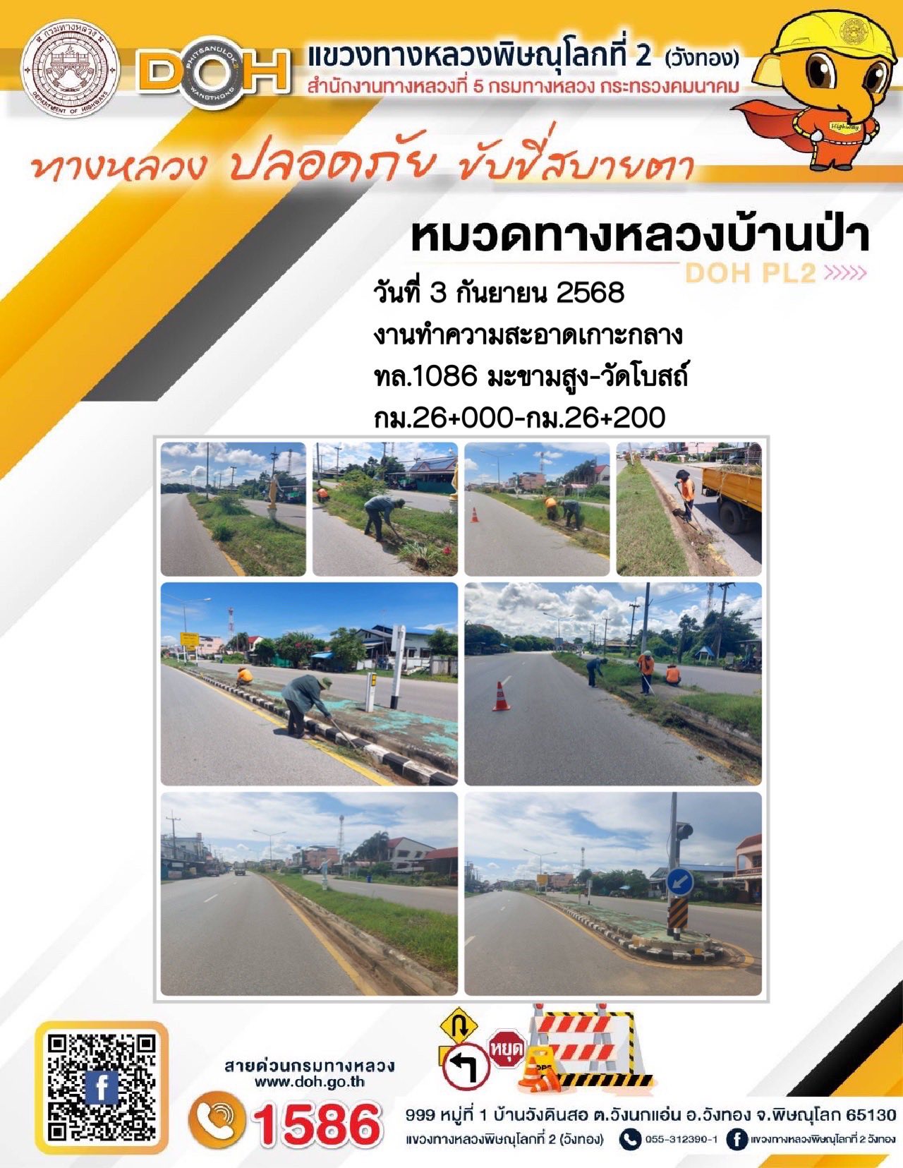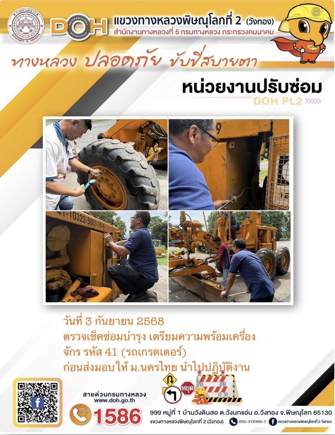 การปฏิบัติงานของ หมวดทางหลวง และ หน่วยงานในสังกัด เพื่ออำนวยความสะดวก และปลอดภัยให้กับประชาชนผู้ใช้เส้นทาง ประจำวันพุธ ที่ 3 กันยายน 2568