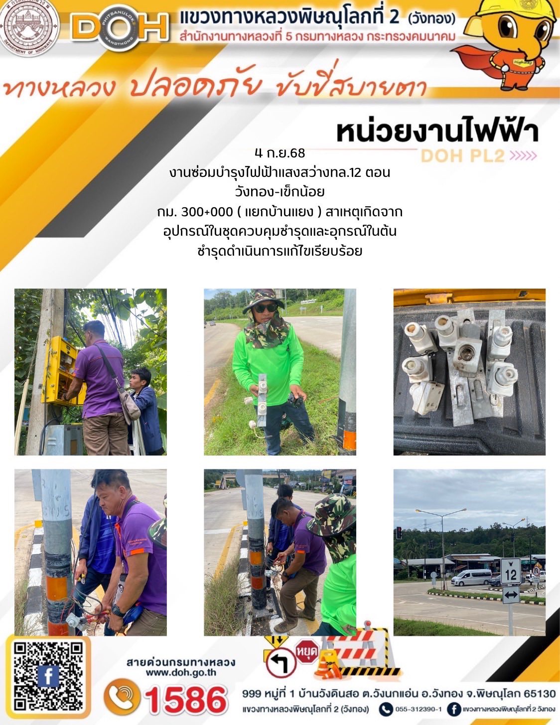 การปฏิบัติงานของ หมวดทางหลวง และ หน่วยงานในสังกัด เพื่ออำนวยความสะดวก และปลอดภัยให้กับประชาชนผู้ใช้เส้นทาง ประจำวันพฤหัสบดี ที่ 4 กันยายน 2568