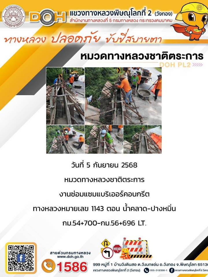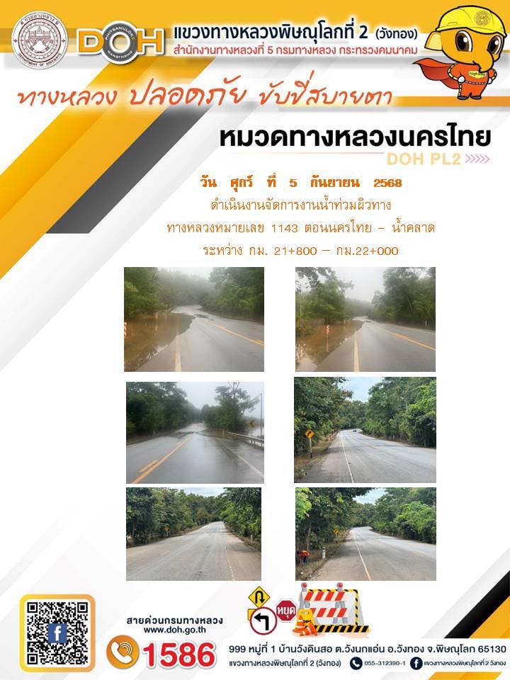 การปฏิบัติงานของ หมวดทางหลวง และ หน่วยงานในสังกัด เพื่ออำนวยความสะดวก และปลอดภัยให้กับประชาชนผู้ใช้เส้นทาง ประจำวันศุกร์ ที่ 5 กันยายน 2568