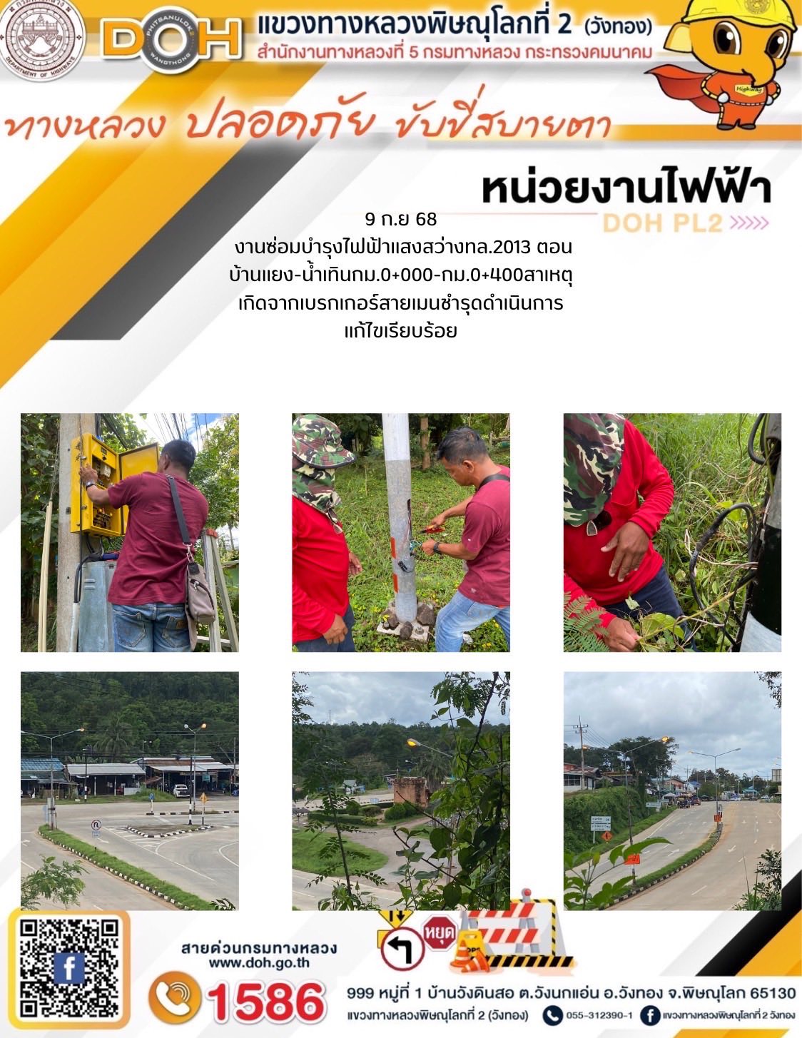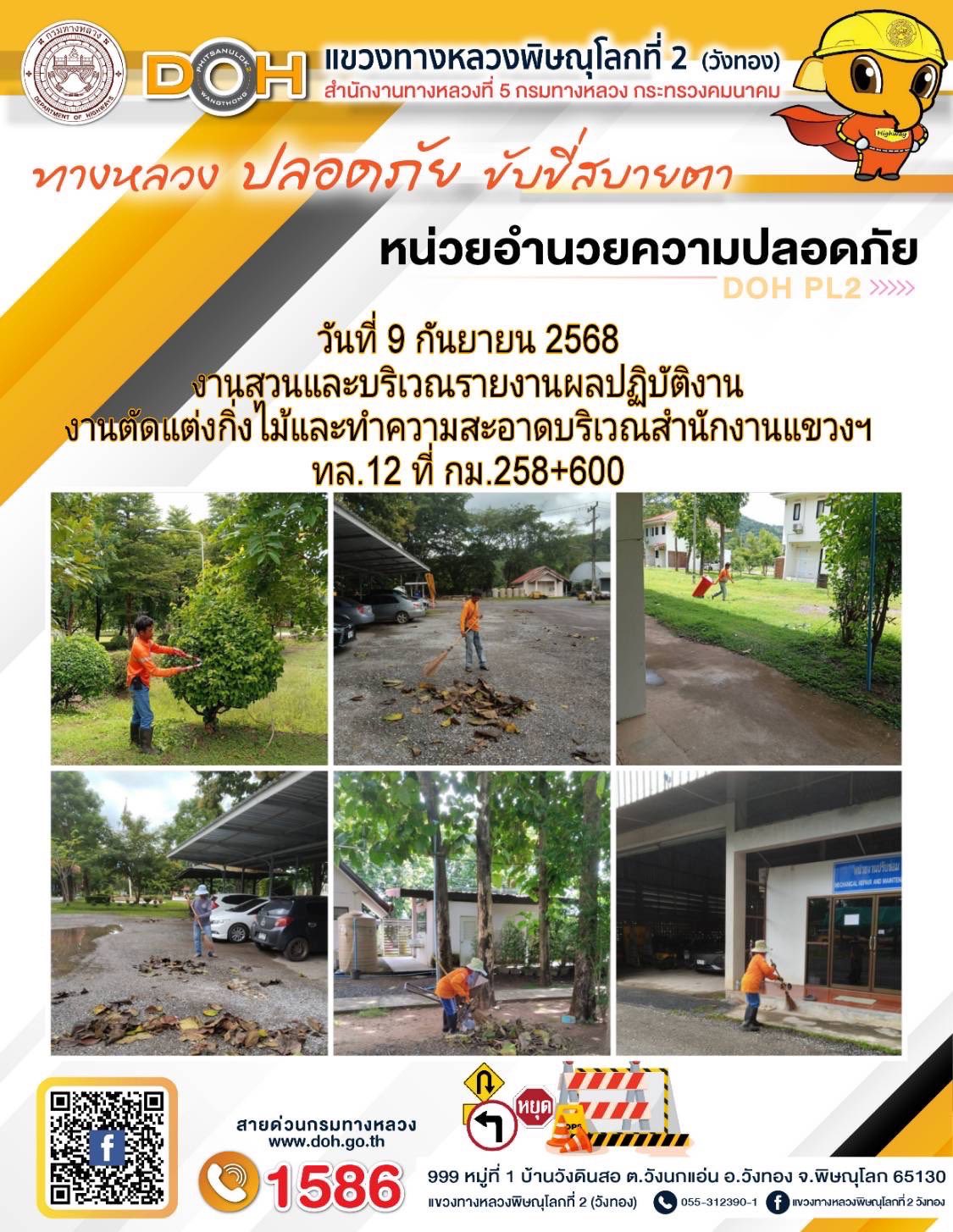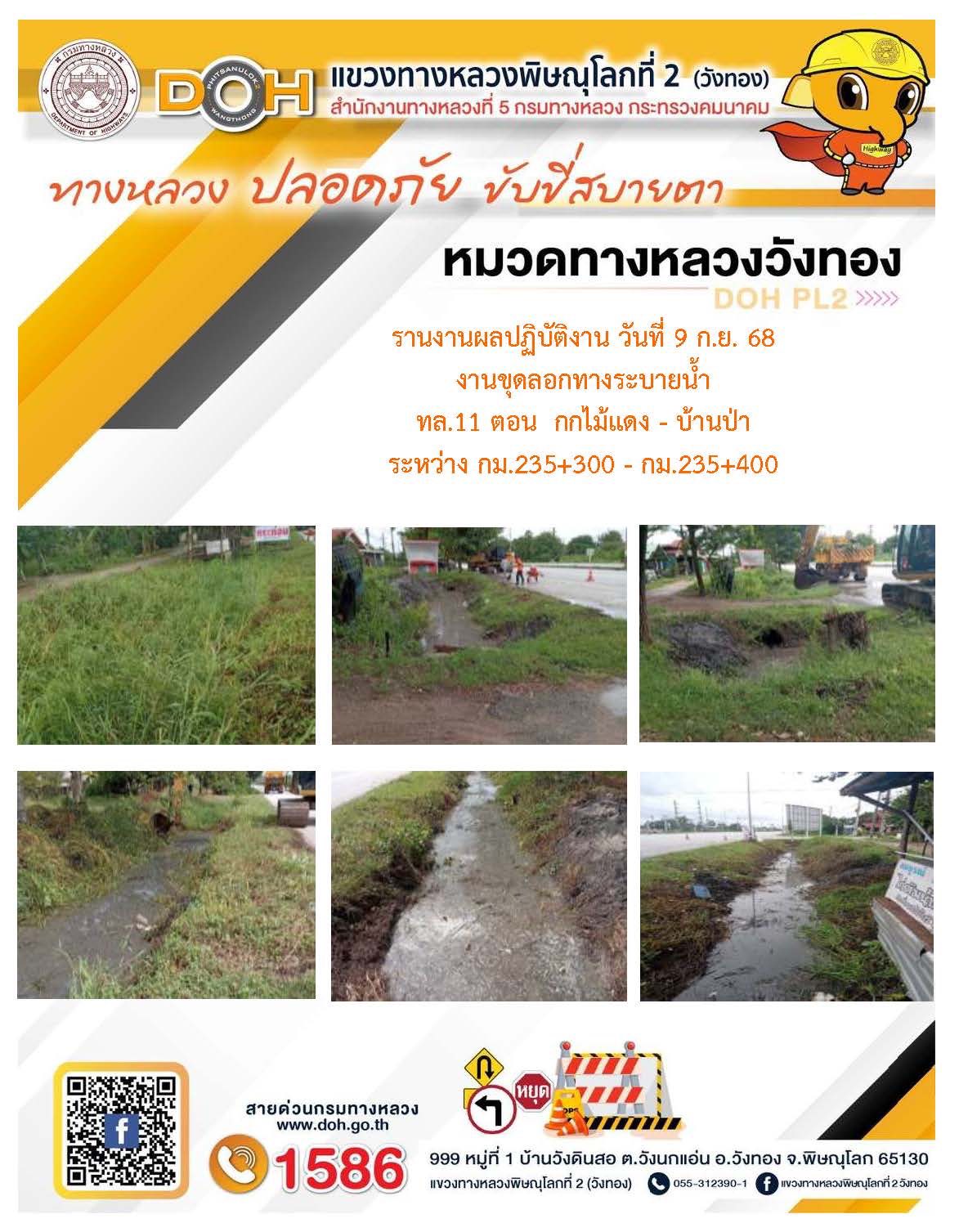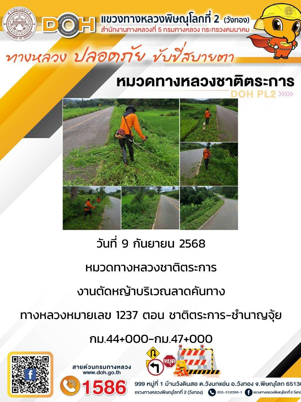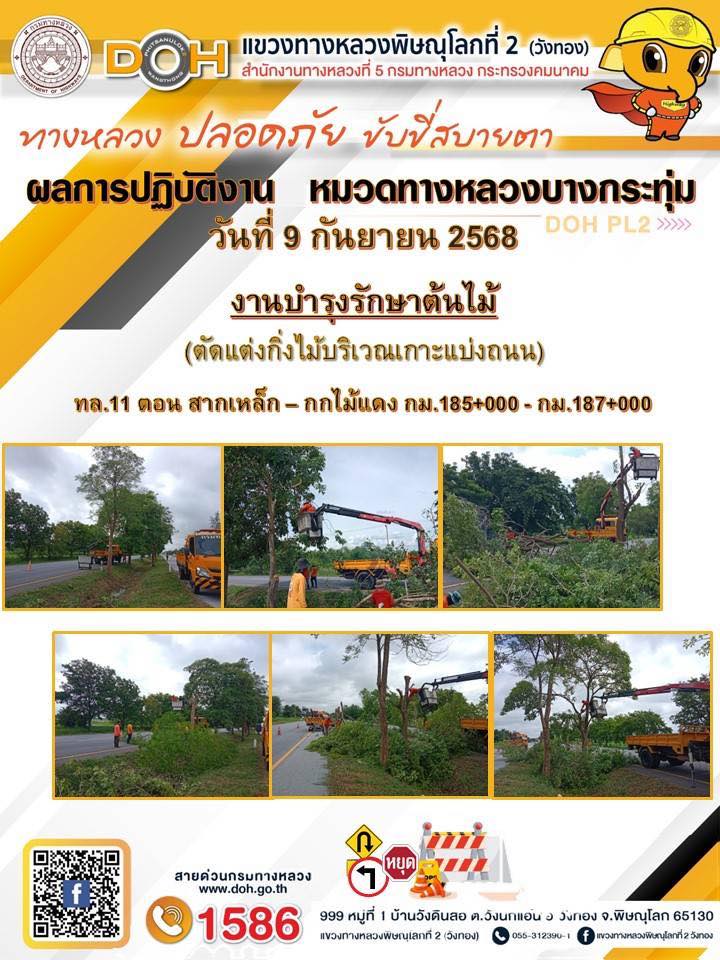 การปฏิบัติงานของ หมวดทางหลวง และ หน่วยงานในสังกัด เพื่ออำนวยความสะดวก และปลอดภัยให้กับประชาชนผู้ใช้เส้นทาง ประจำวันอังคาร ที่ 9 กันยายน 2568